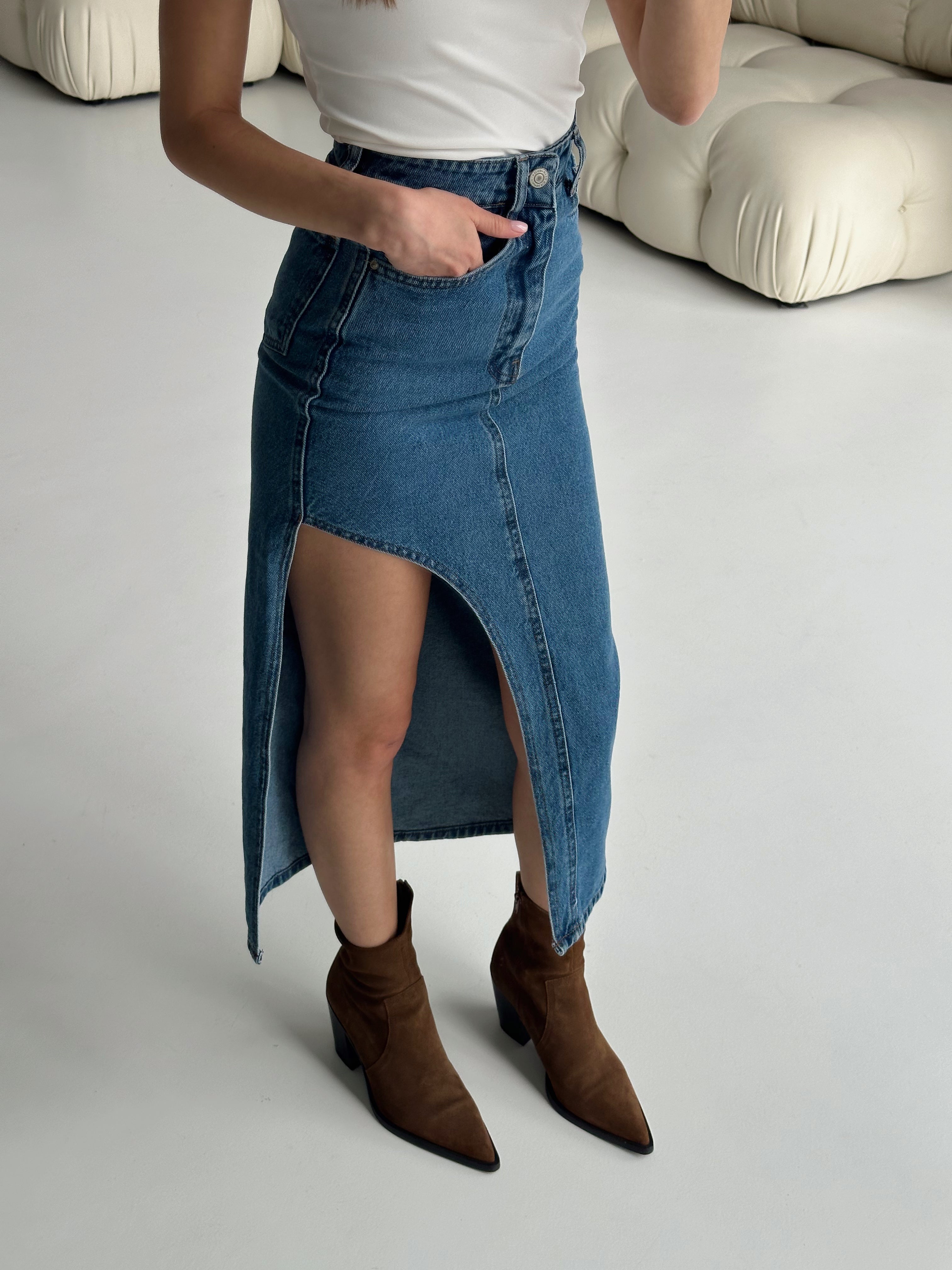 Asymmetric denim skirt – a stylish and modern wardrobe piece that adds dynamic energy and bold character to your look. Perfect for casual outfits, city strolls, or informal gatherings, this skirt highlights your individuality and sense of style.