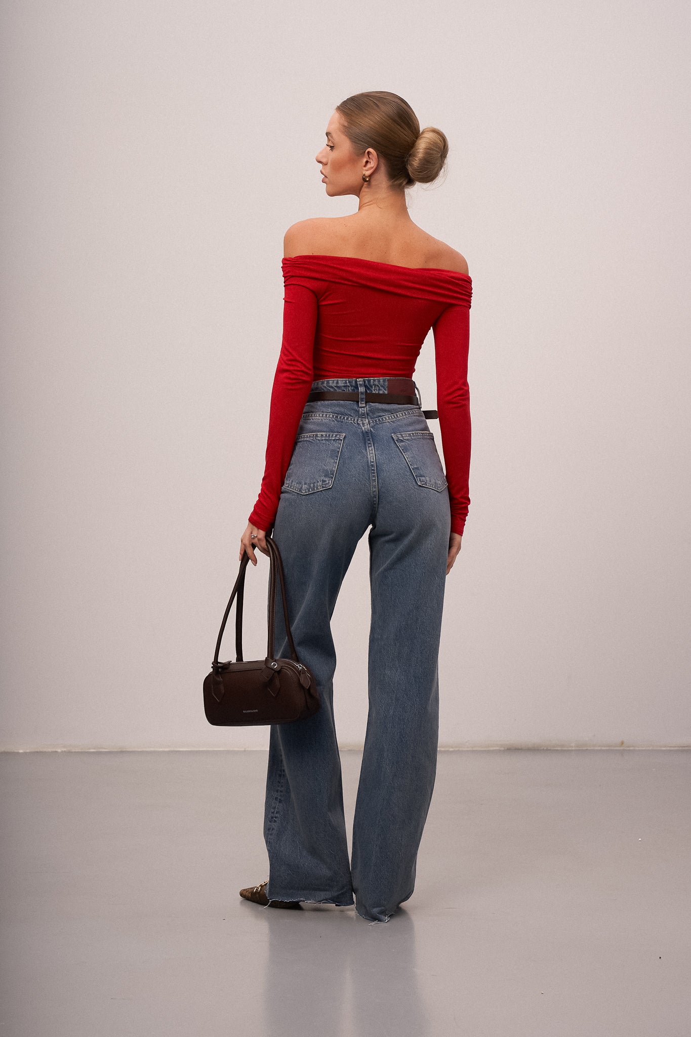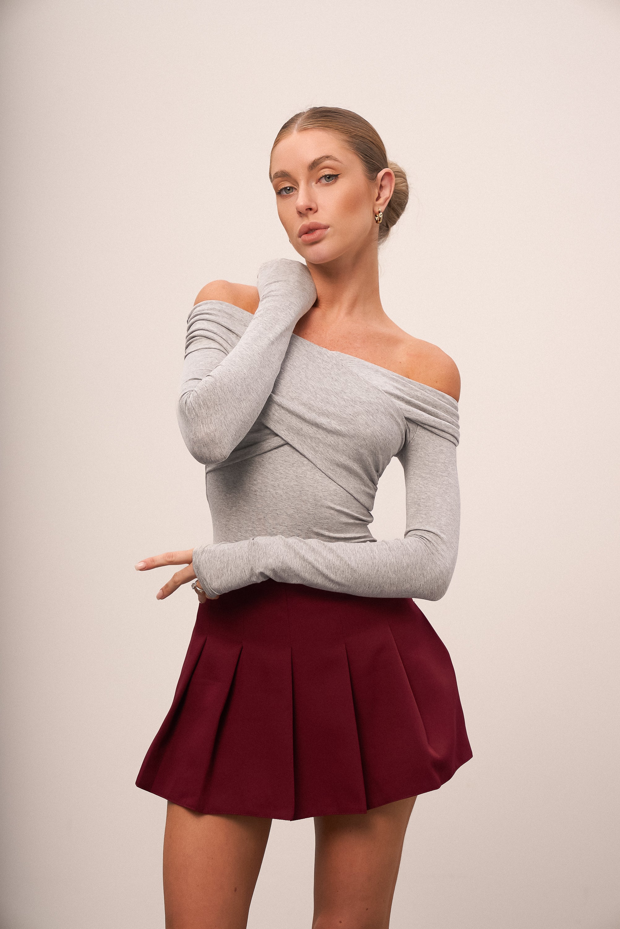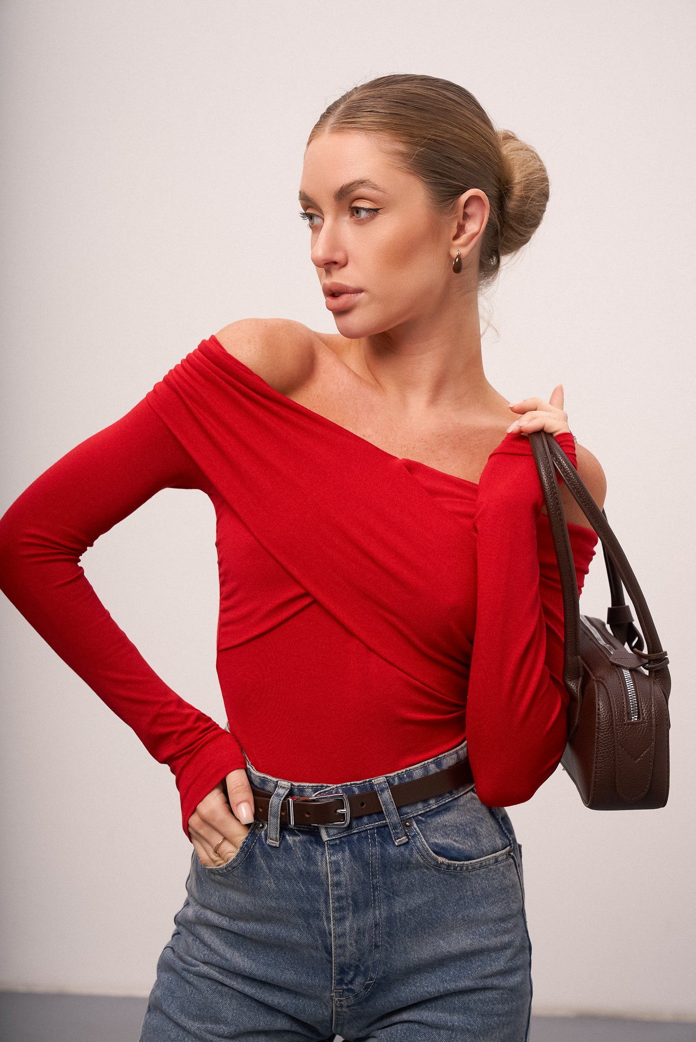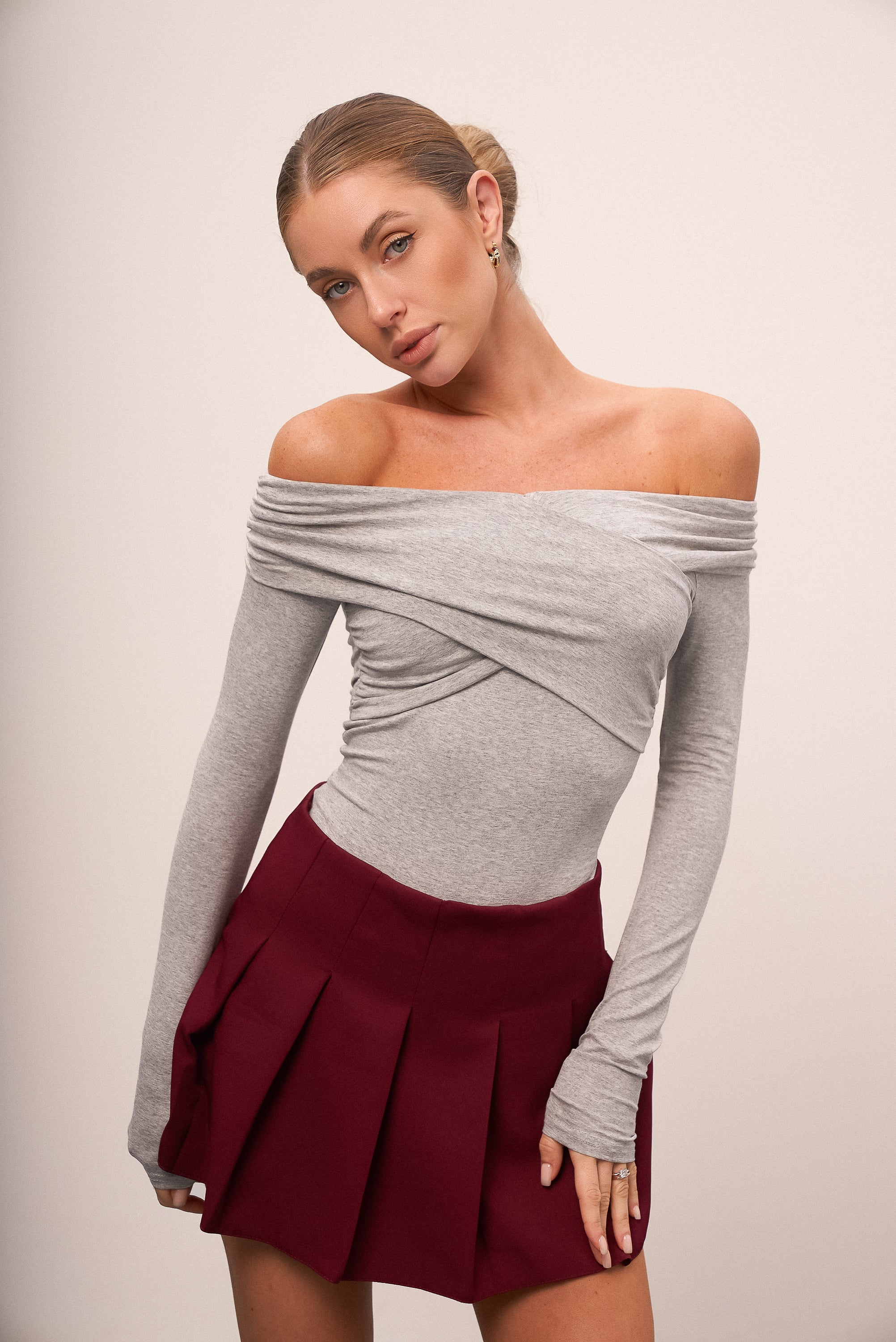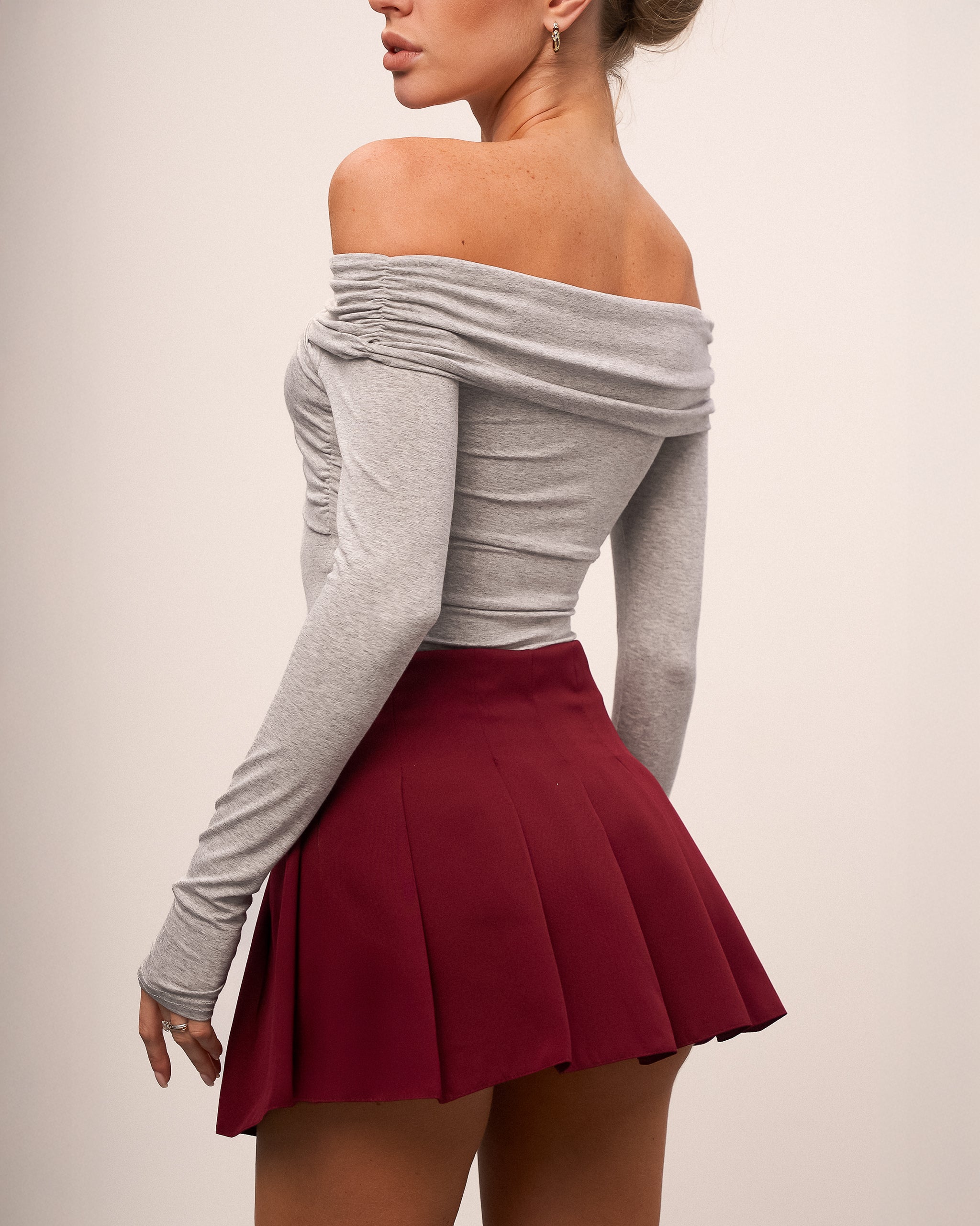Basic off-shoulder bodysuit — a versatile and feminine piece that combines comfort and style. Made from soft, pleasant-to-touch knitwear, it fits the body perfectly, highlighting the silhouette and adding elegance to any look.