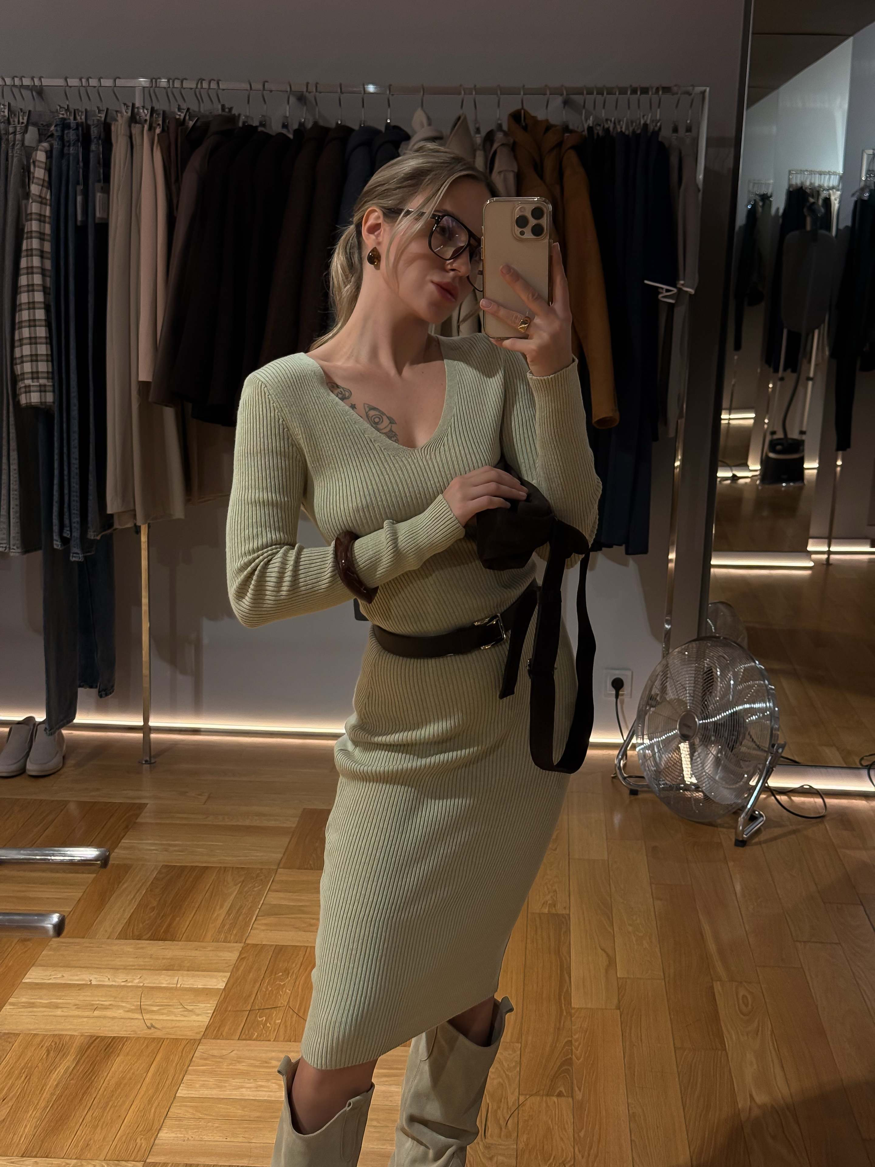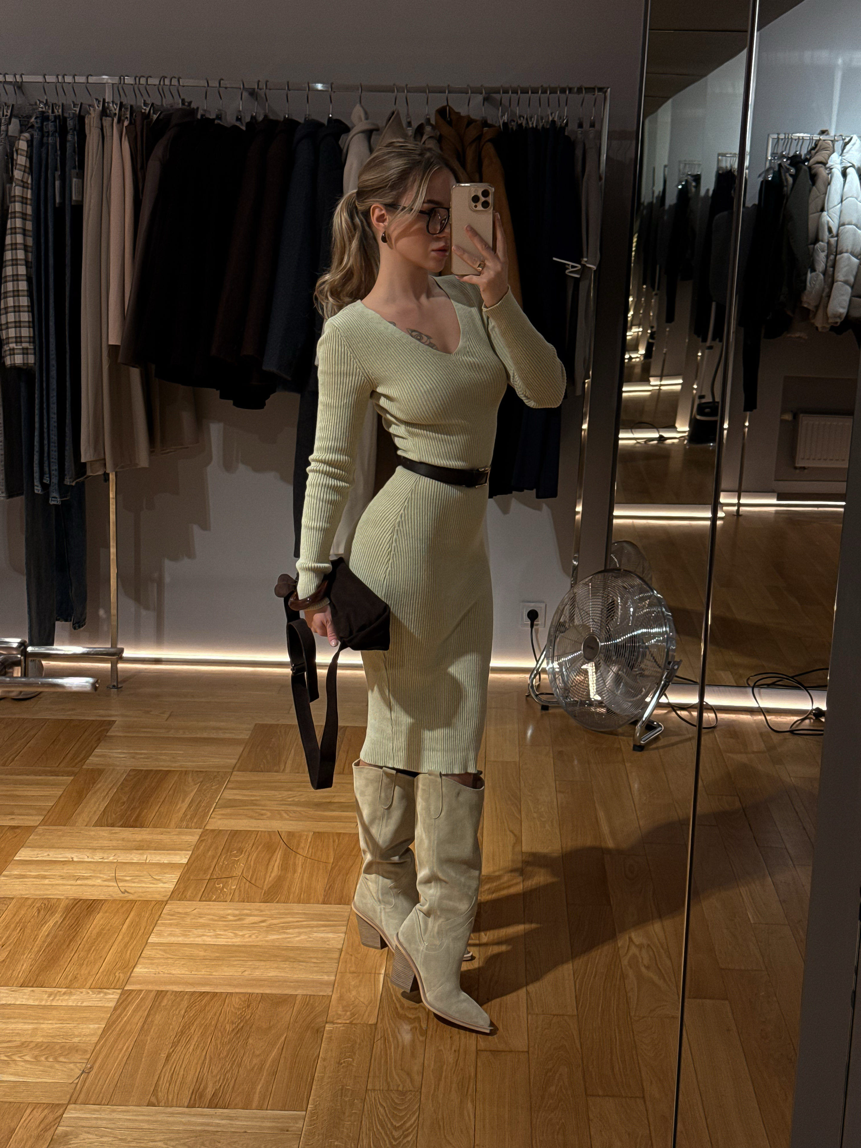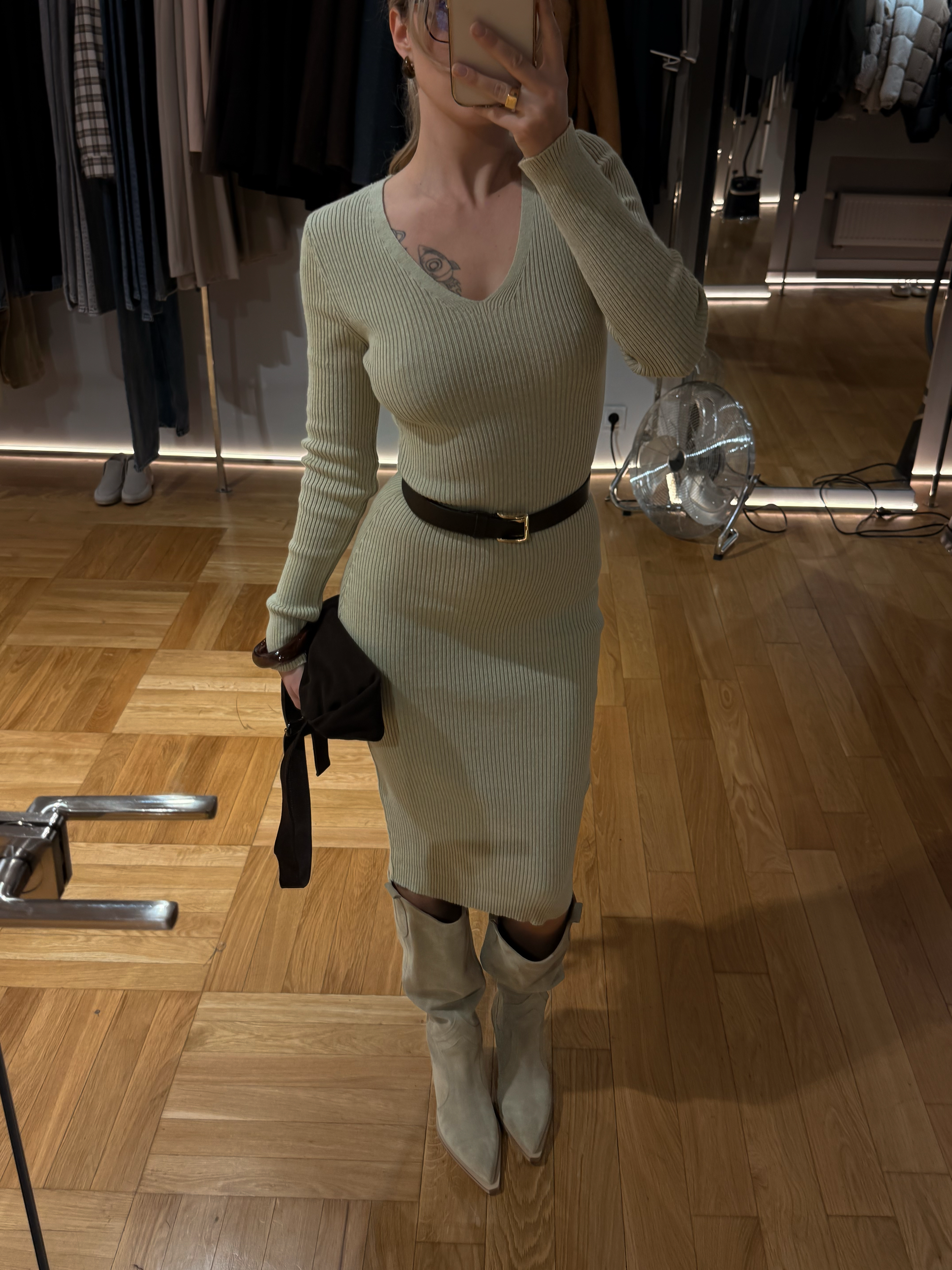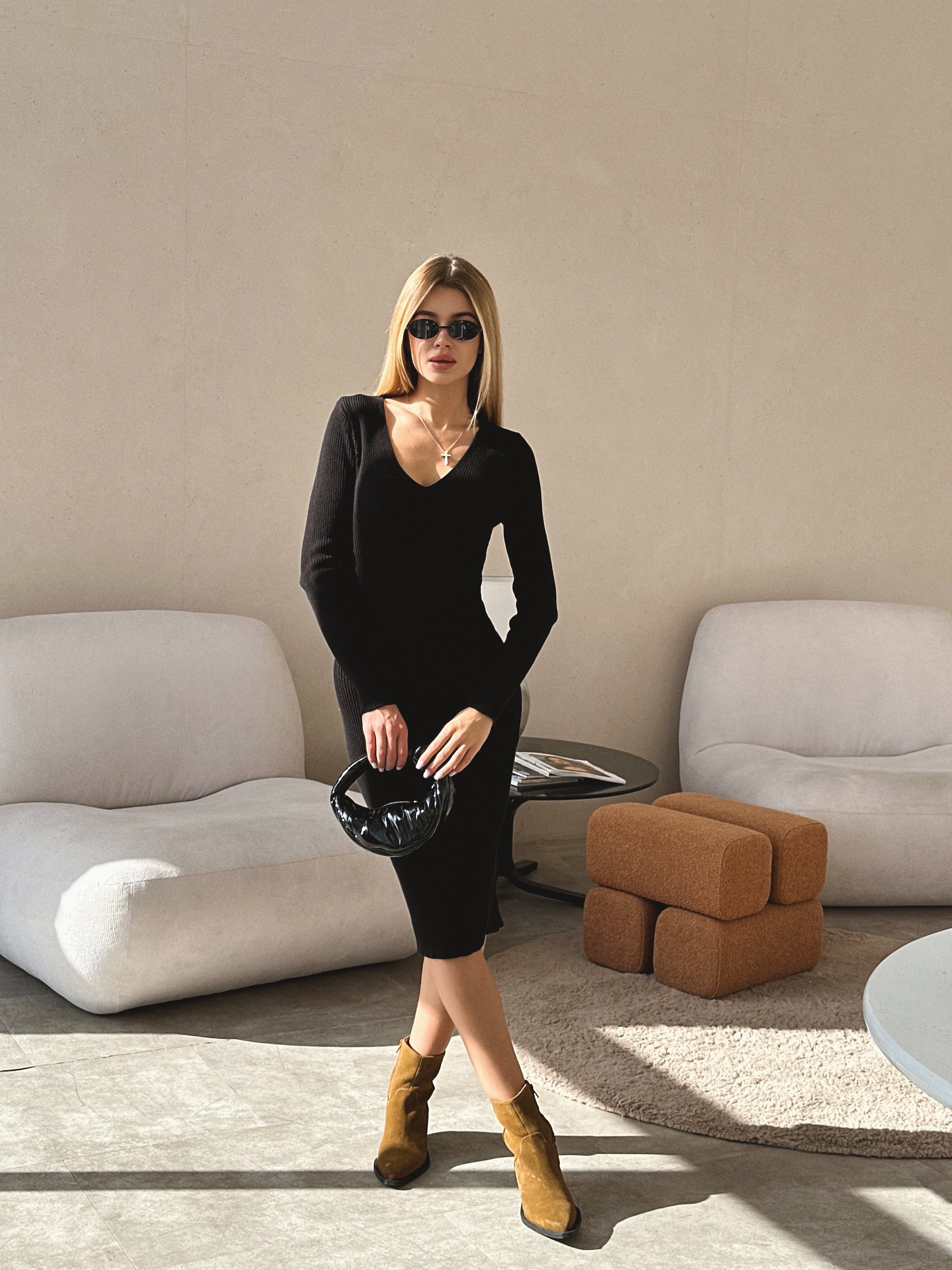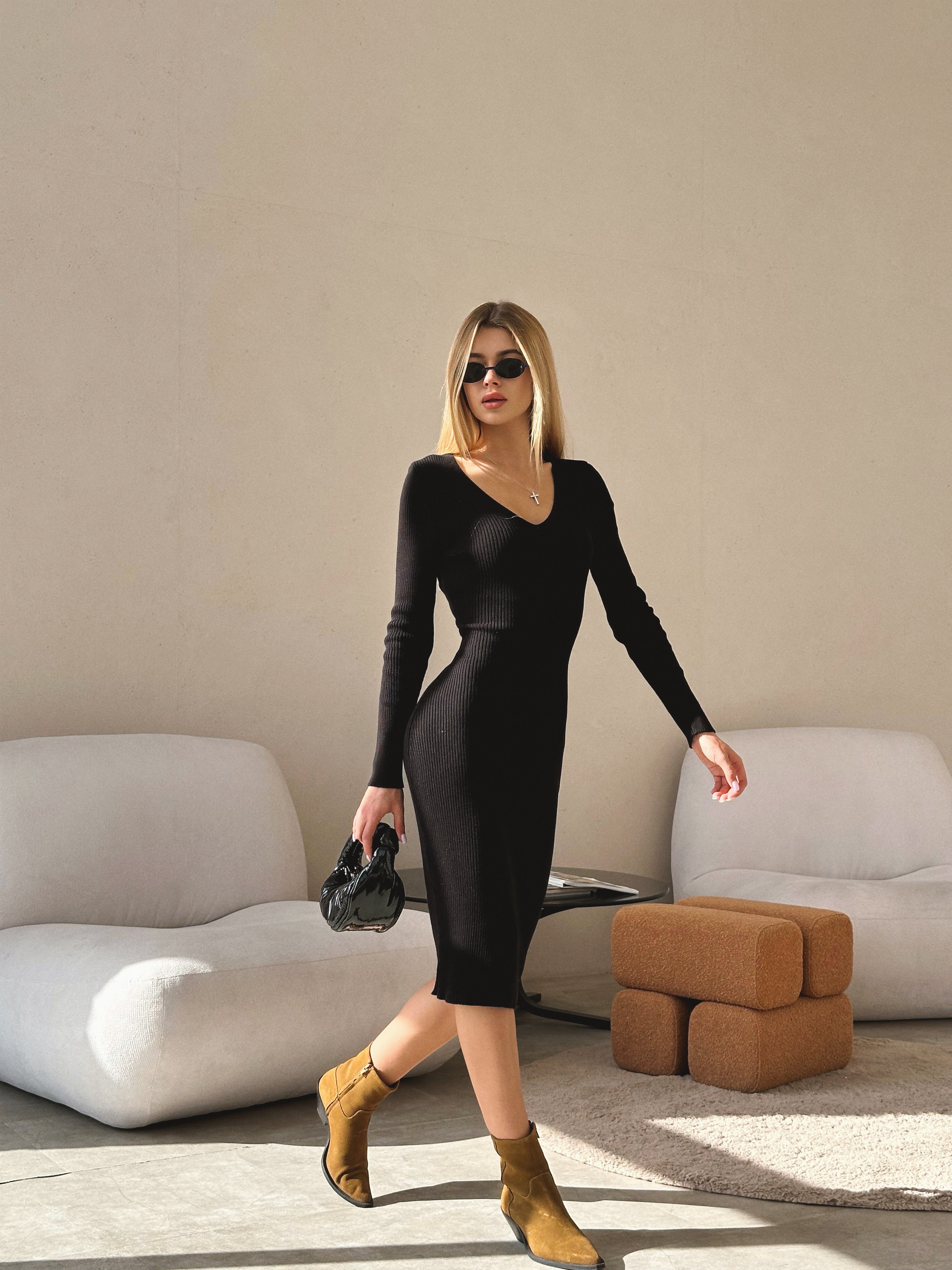 The Candy knit dress blends minimalism with understated elegance. Its clean silhouette and V-shaped neckline create a refined yet expressive look. Made from soft ribbed knit fabric, it provides both comfort and style — a perfect choice for any occasion. Whether paired with sneakers, boots, or heels, this dress always looks effortlessly chic.