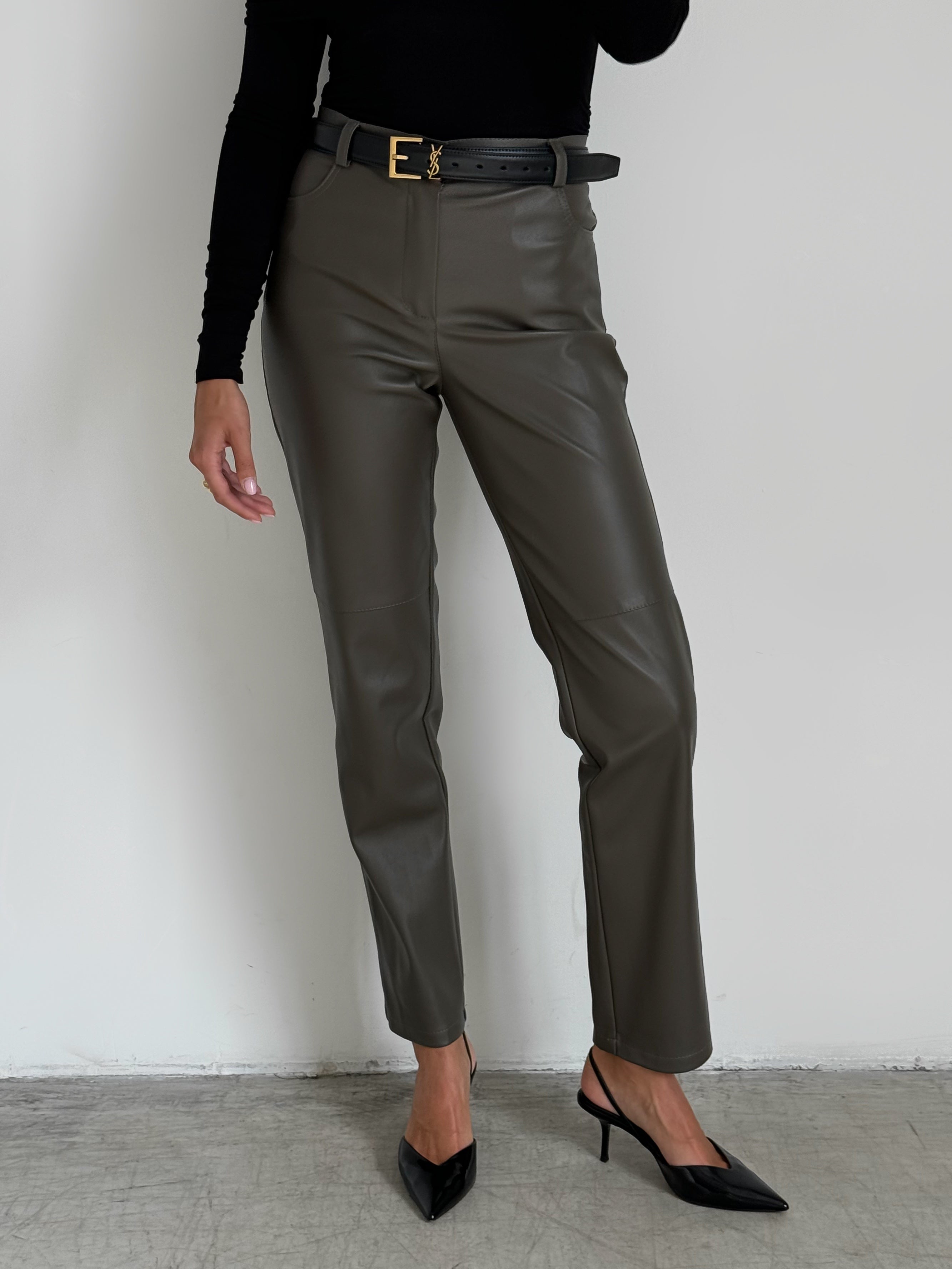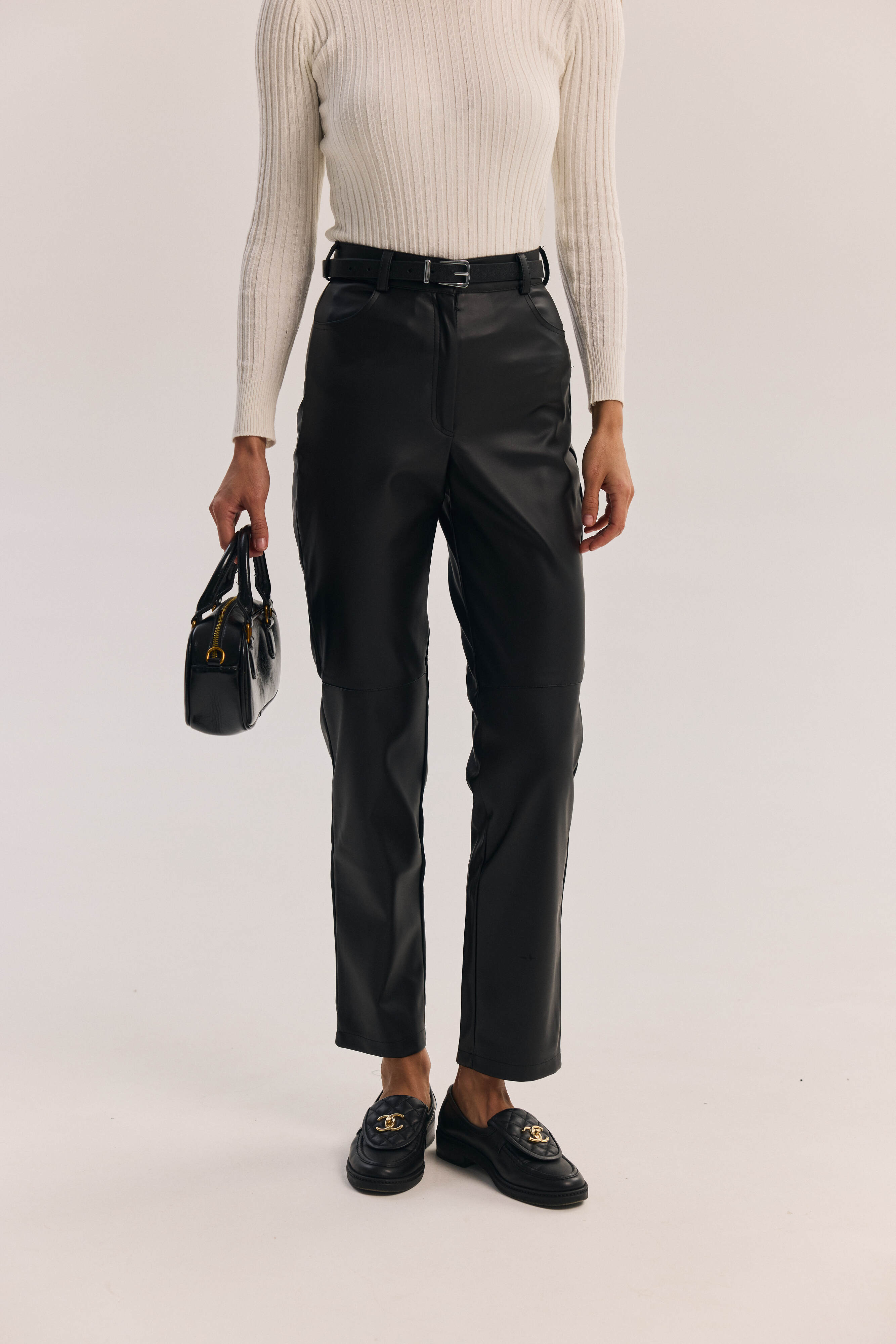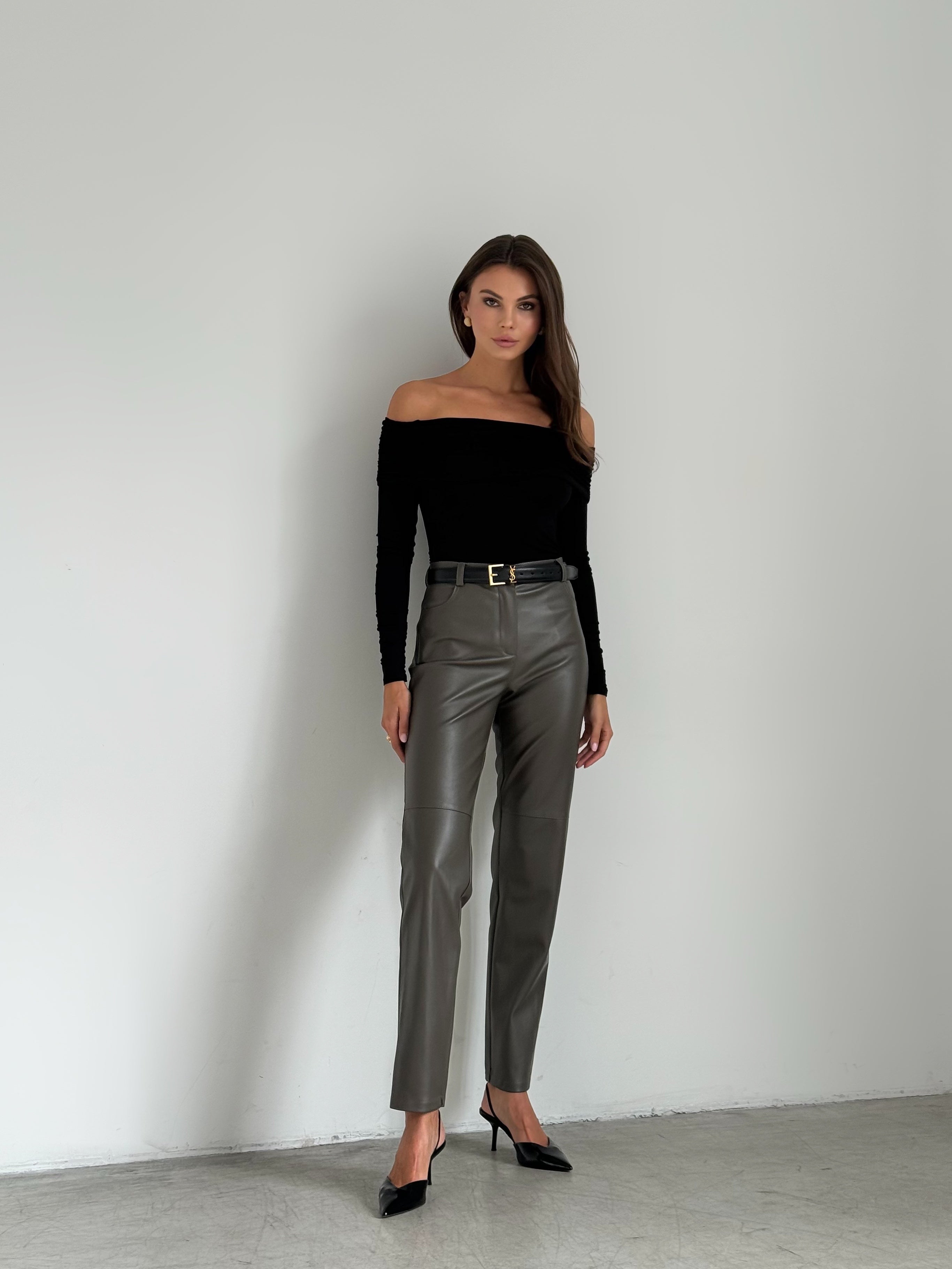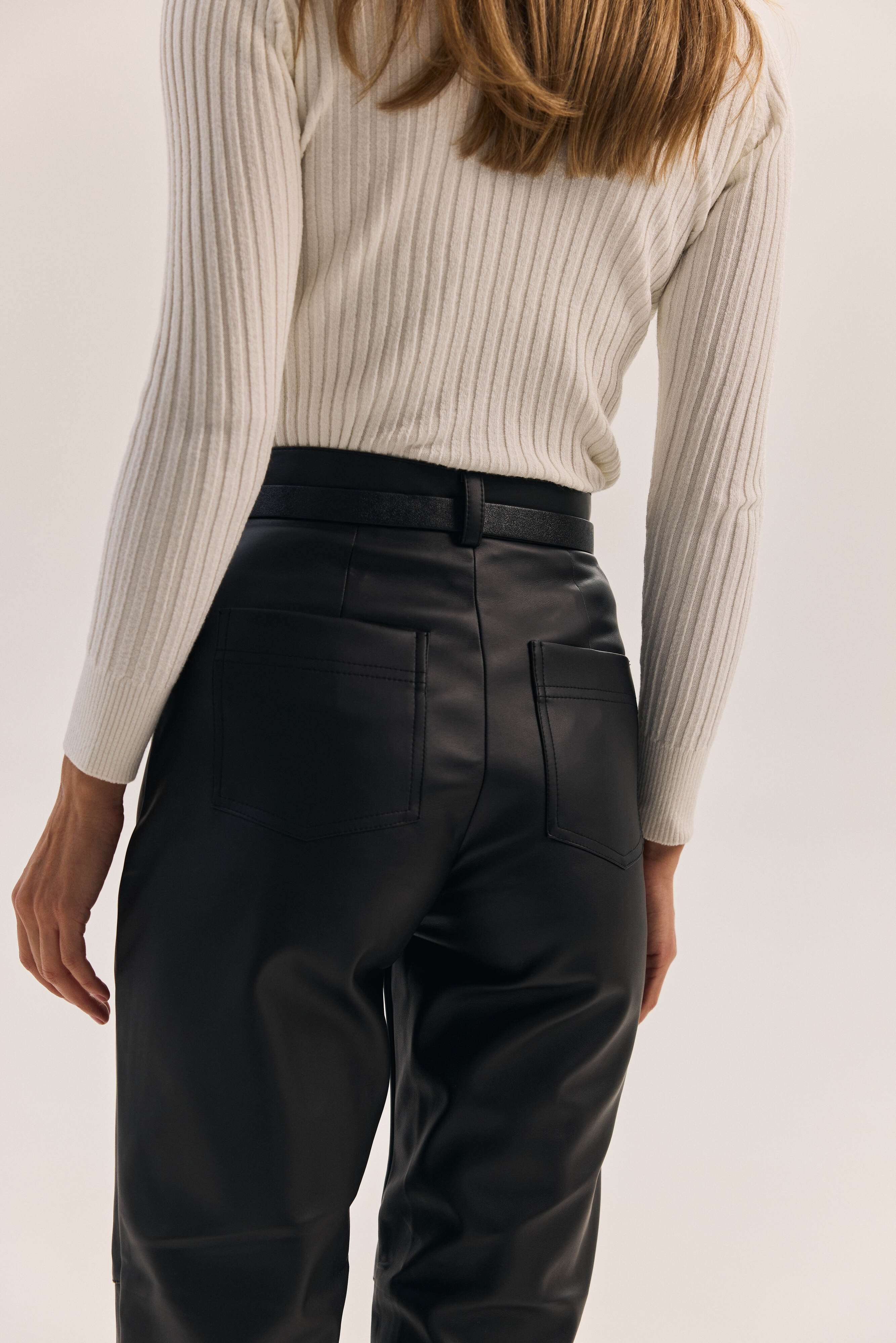 Choco faux leather pants are a stylish classic that flatters the figure and adds elegance to any outfit. Their soft texture and subtle sheen give a luxurious, modern look. High-quality faux leather ensures comfort and keeps the shape even after long-term wear.