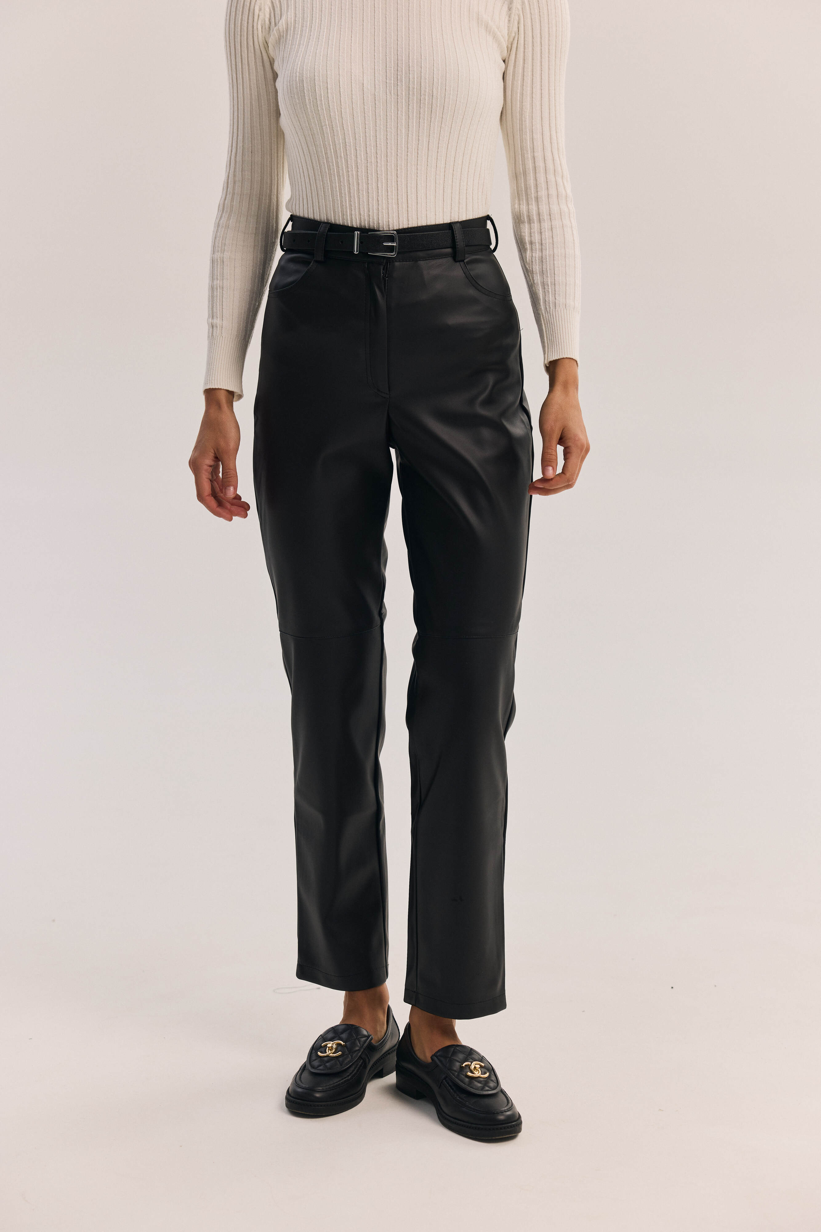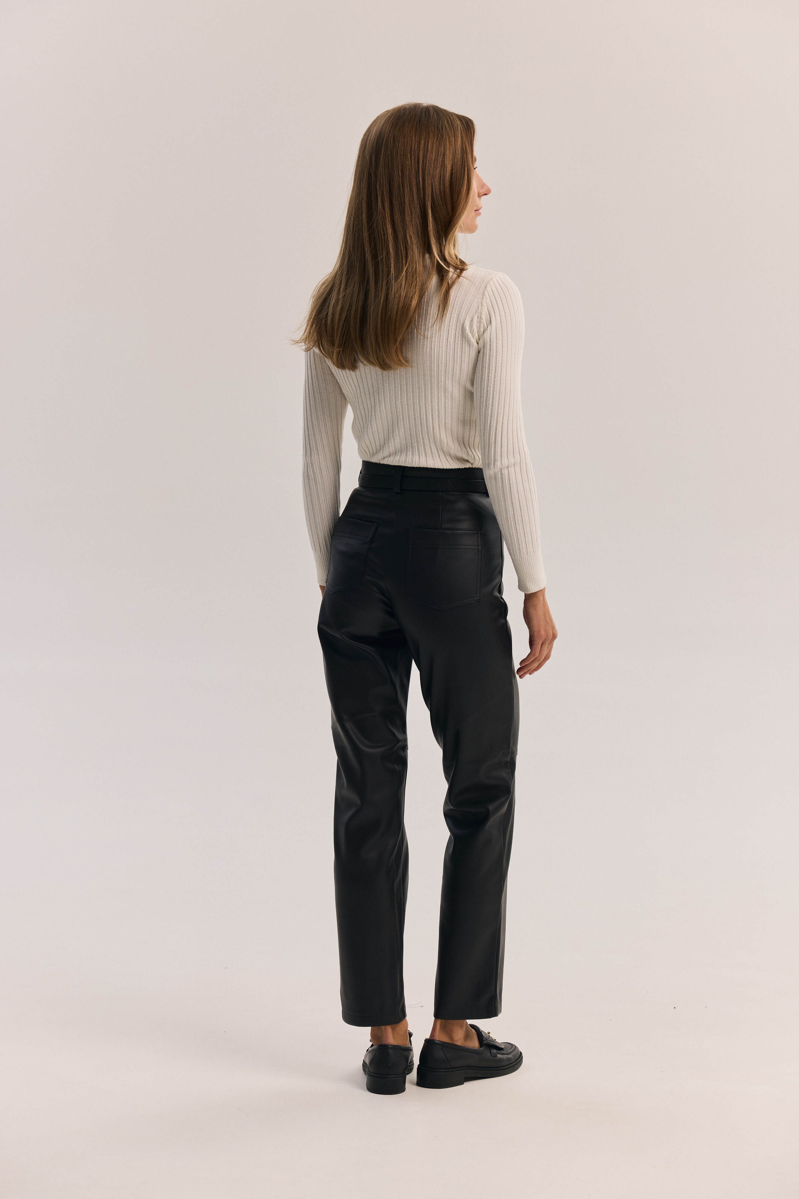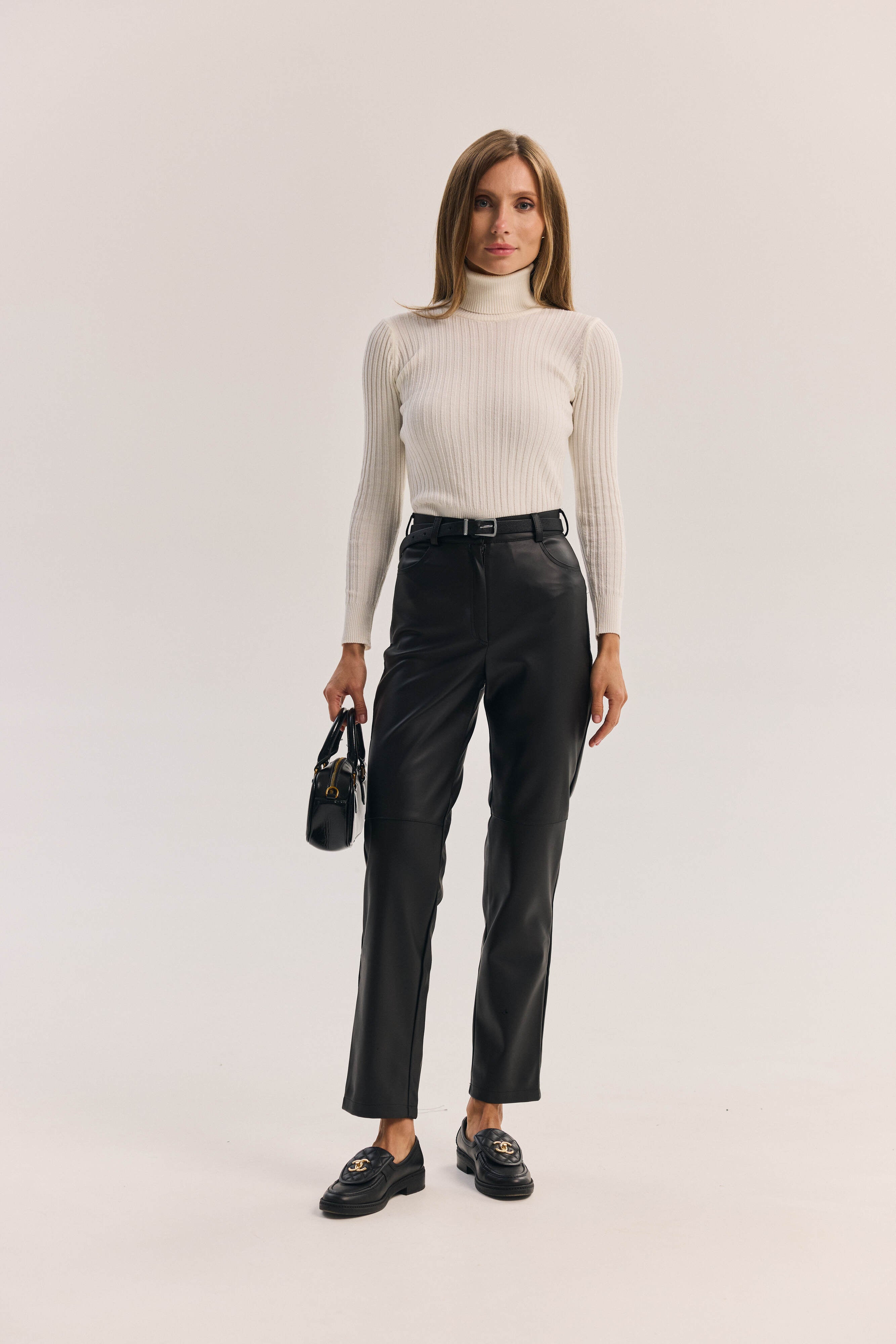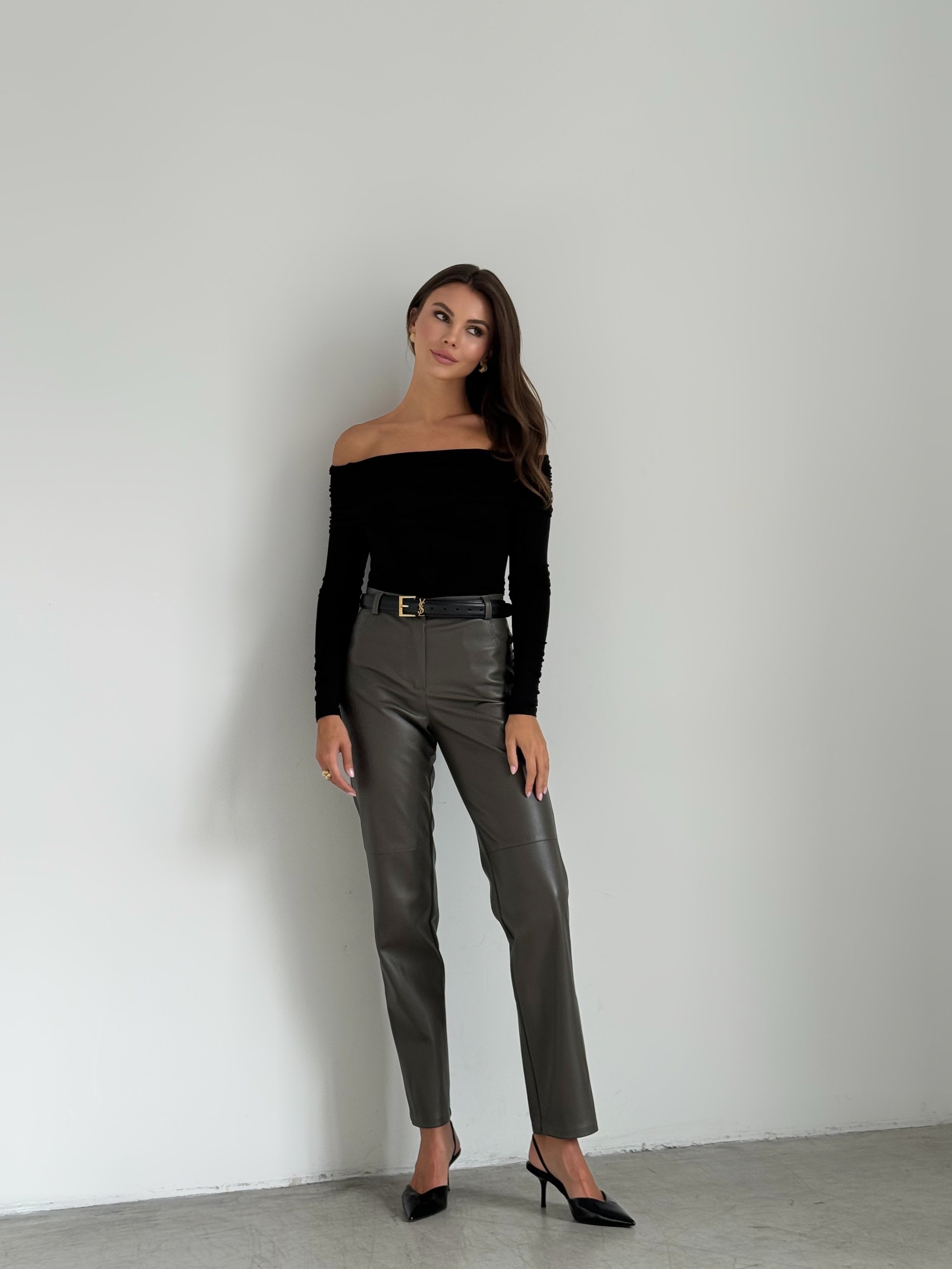 Choco faux leather pants are a stylish classic that flatters the figure and adds elegance to any outfit. Their soft texture and subtle sheen give a luxurious, modern look. High-quality faux leather ensures comfort and keeps the shape even after long-term wear.