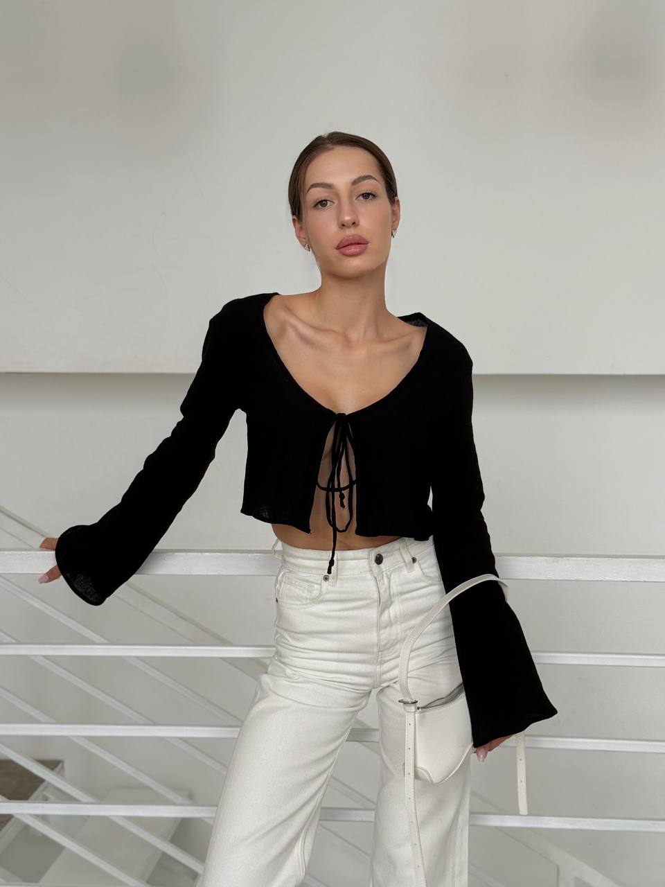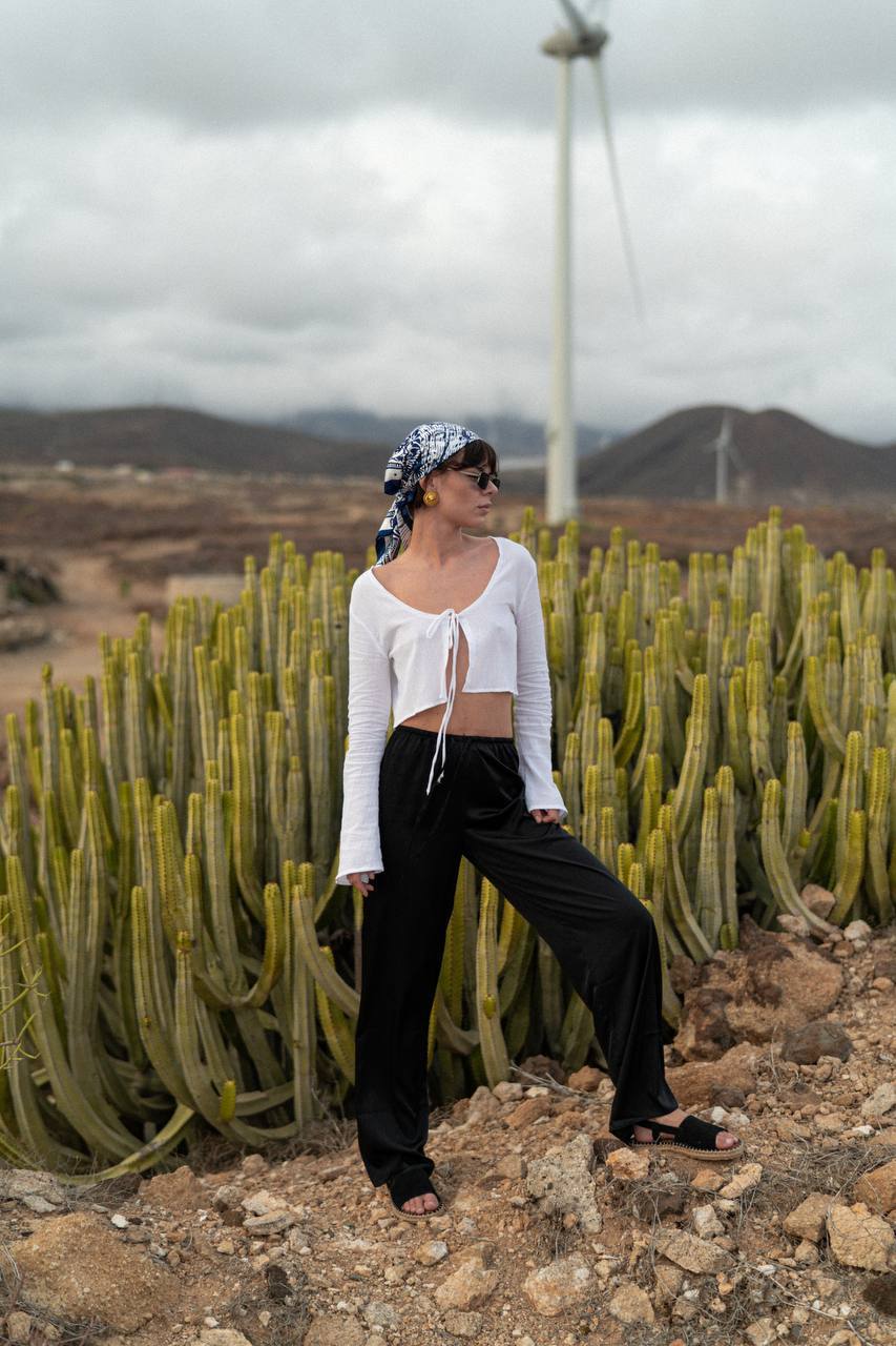 A stylish women’s tie-front shirt that combines comfort with contemporary design. It adapts easily to different looks—from casual to more elegant.