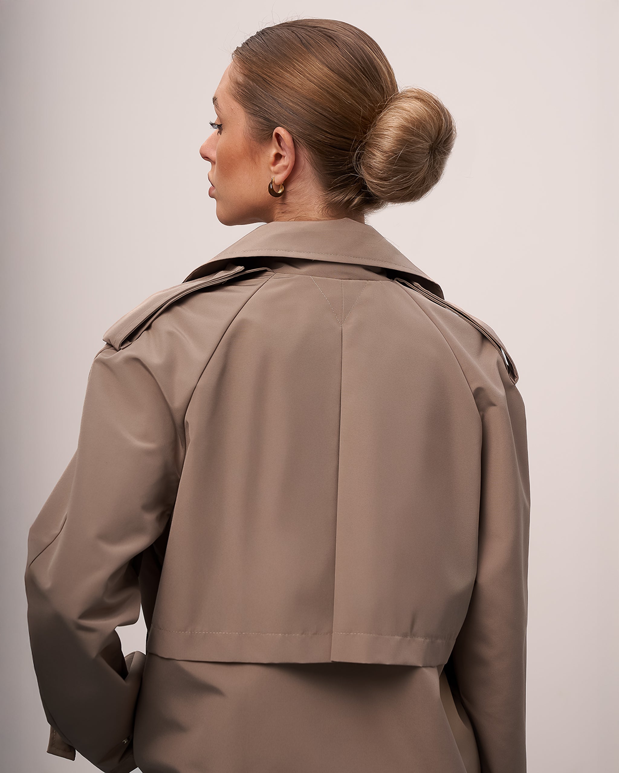 “Florence” Cropped Trench Coat — an elegant and modern piece that blends the sophistication of a classic silhouette with the energy of city style. Perfect for transitional weather, urban strolls, or stylish outings.