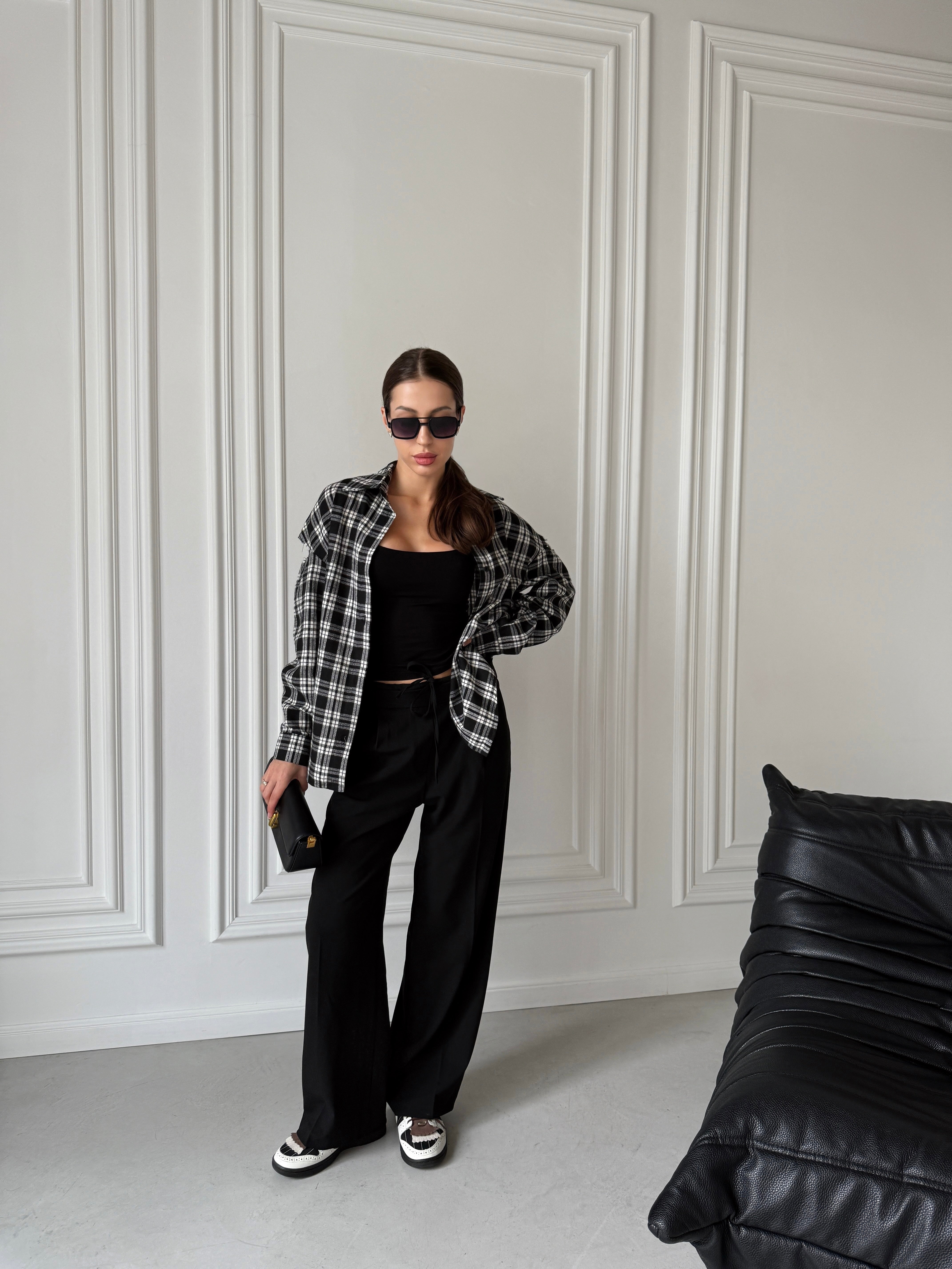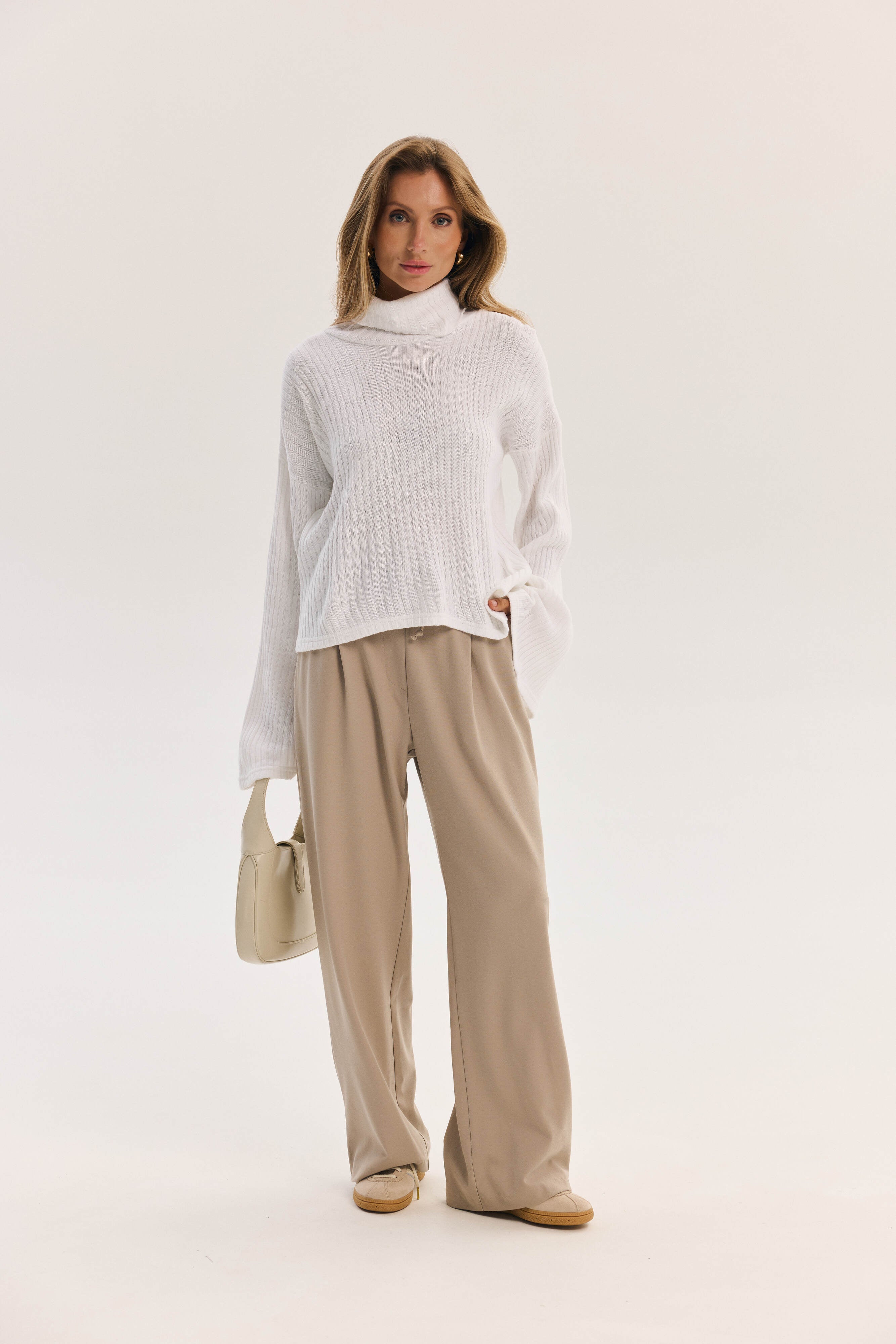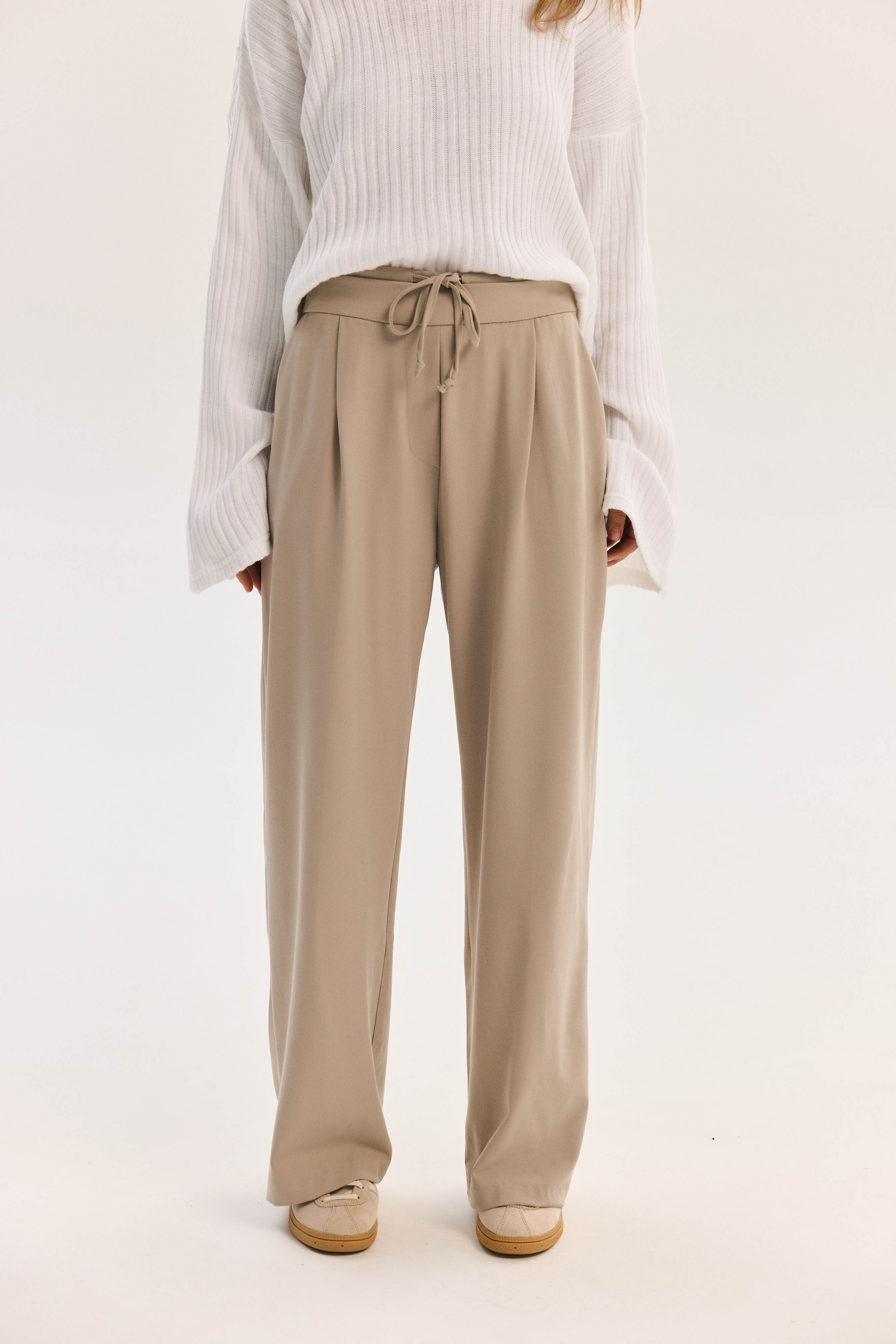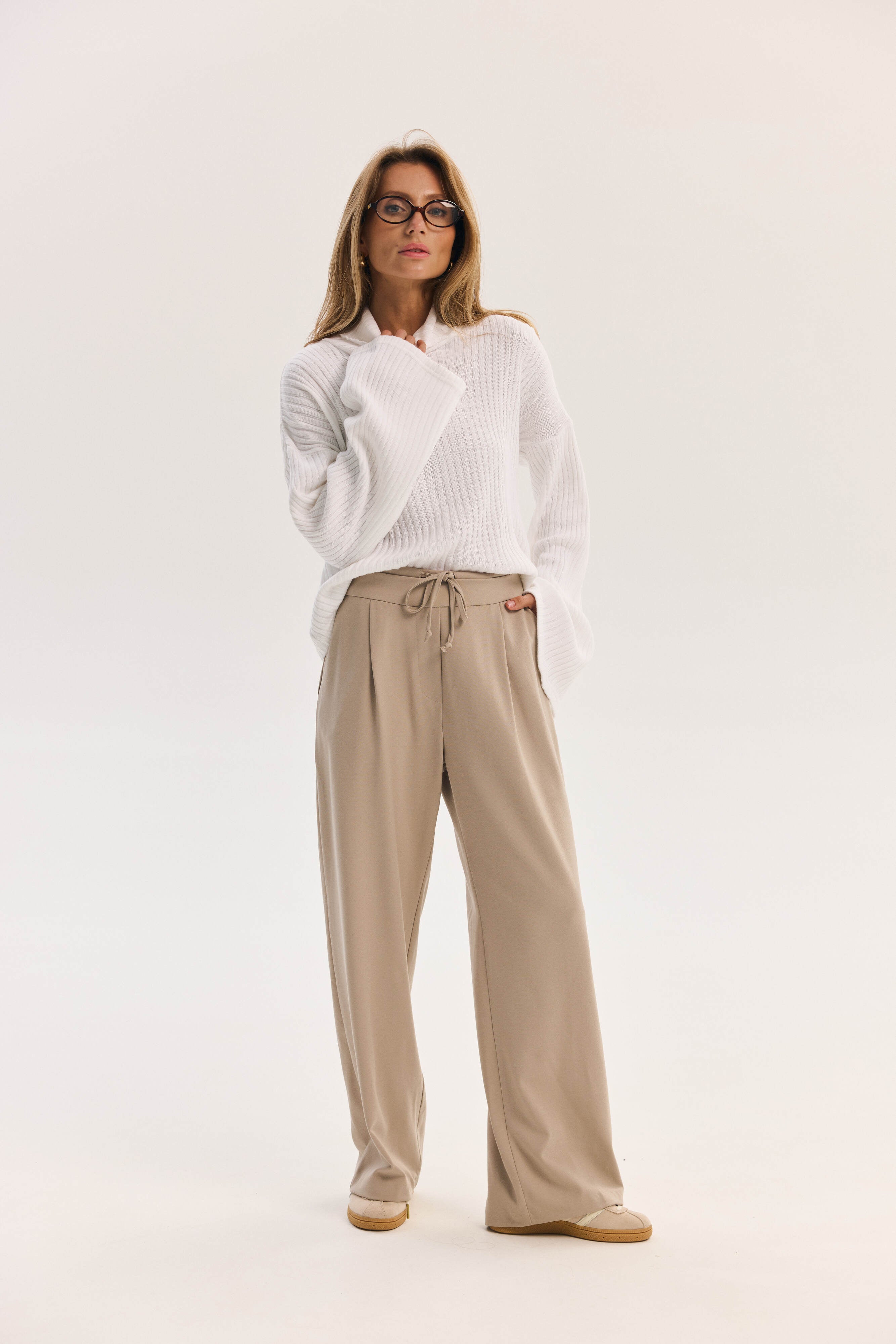 Trendy Ketti palazzo trousers combine modern elegance and sophistication in every detail. The high waist accentuates the silhouette, while premium fabric with elastane ensures comfort and a perfect fit.