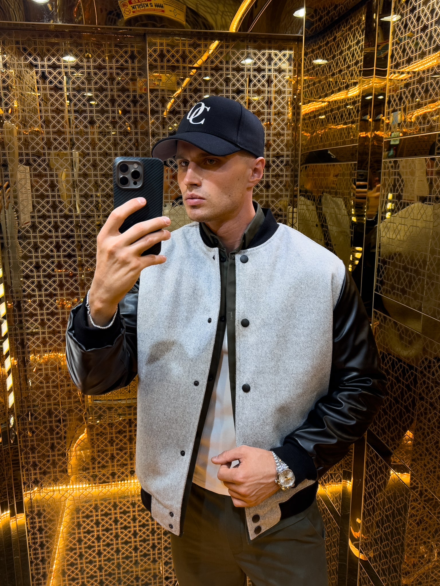 A stylish leather bomber suitable for any outfit. Easily pairs with many pieces, making it perfect for mixing and matching your entire wardrobe. This model refreshes any look thanks to its cut and design.