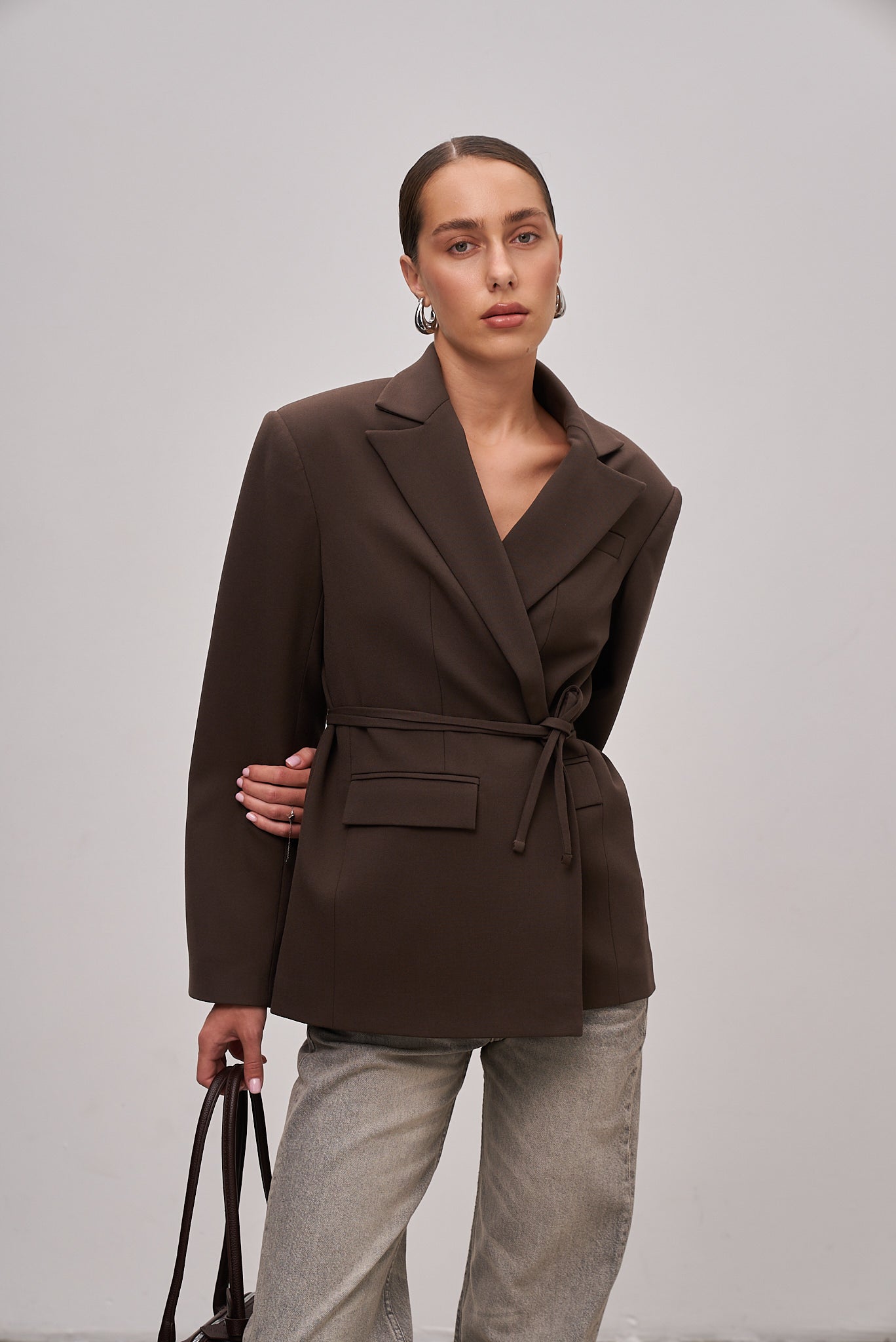 Elegant Lily belted blazer is designed to create a refined silhouette and highlight the waist. Its sleek cut and stylish details make it a versatile choice for both office and evening looks. Easily pairs with trousers or a dress for a flawless outfit.