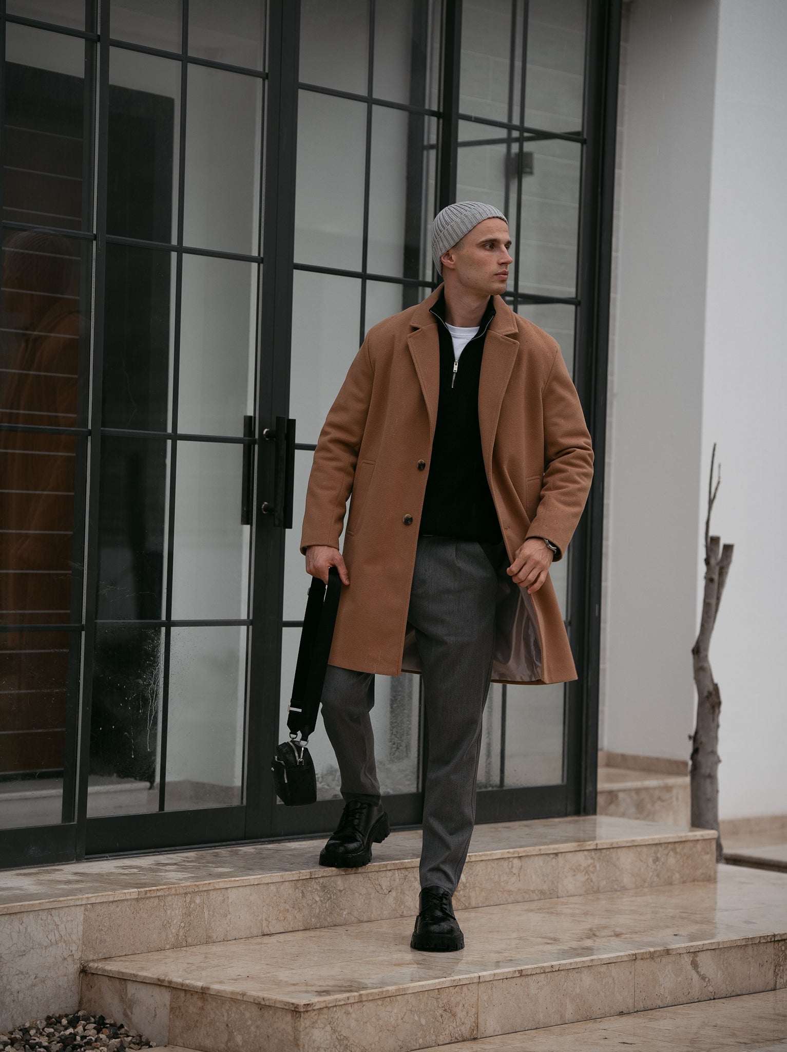 A versatile outerwear option for everyday wear: a cashmere single-breasted coat.