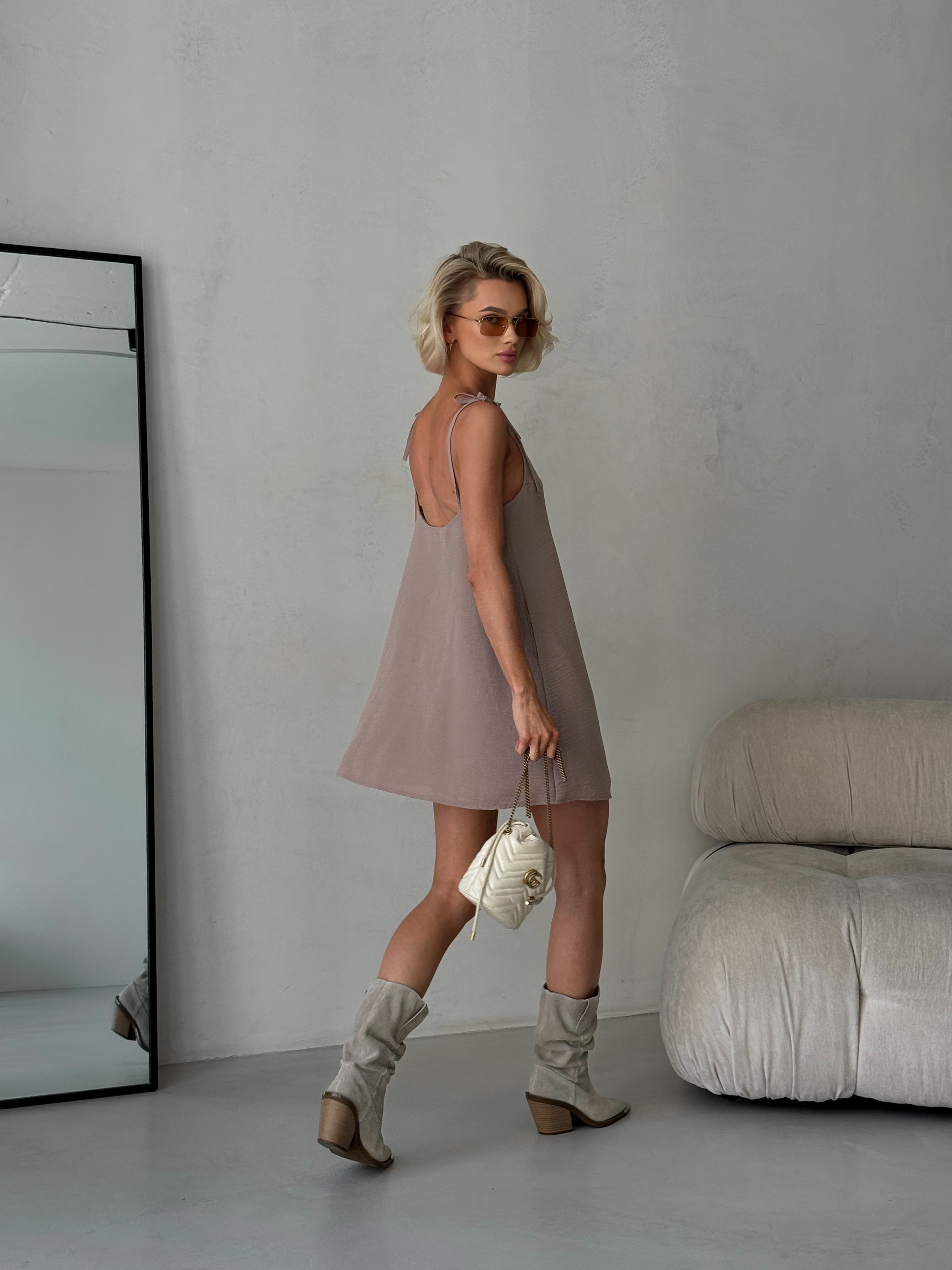 The Daphne dress, made from natural linen, combines lightness, comfort, and style. Breathable material and a thoughtful cut ensure a pleasant feel and a versatile look for summer outfits.