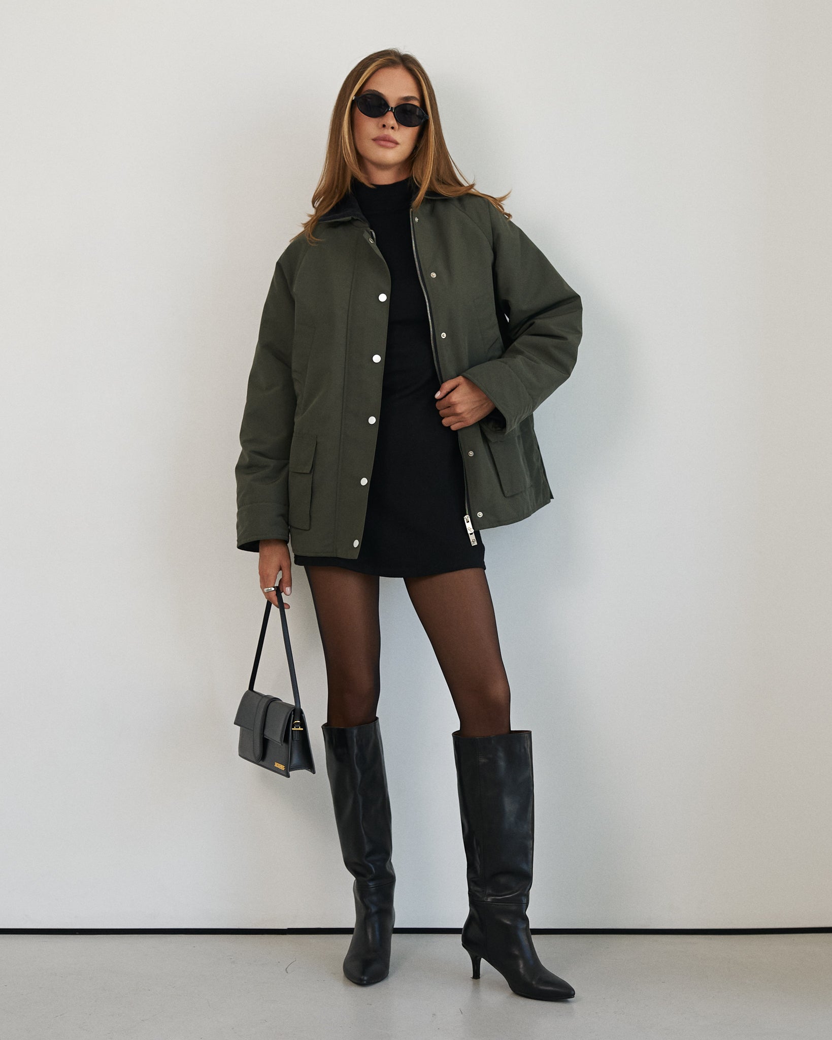 The Lorin jacket combines style, practicality, and modern design. The khaki and black contrast creates a restrained yet fashionable look, while the practical color makes it perfect for everyday wear.