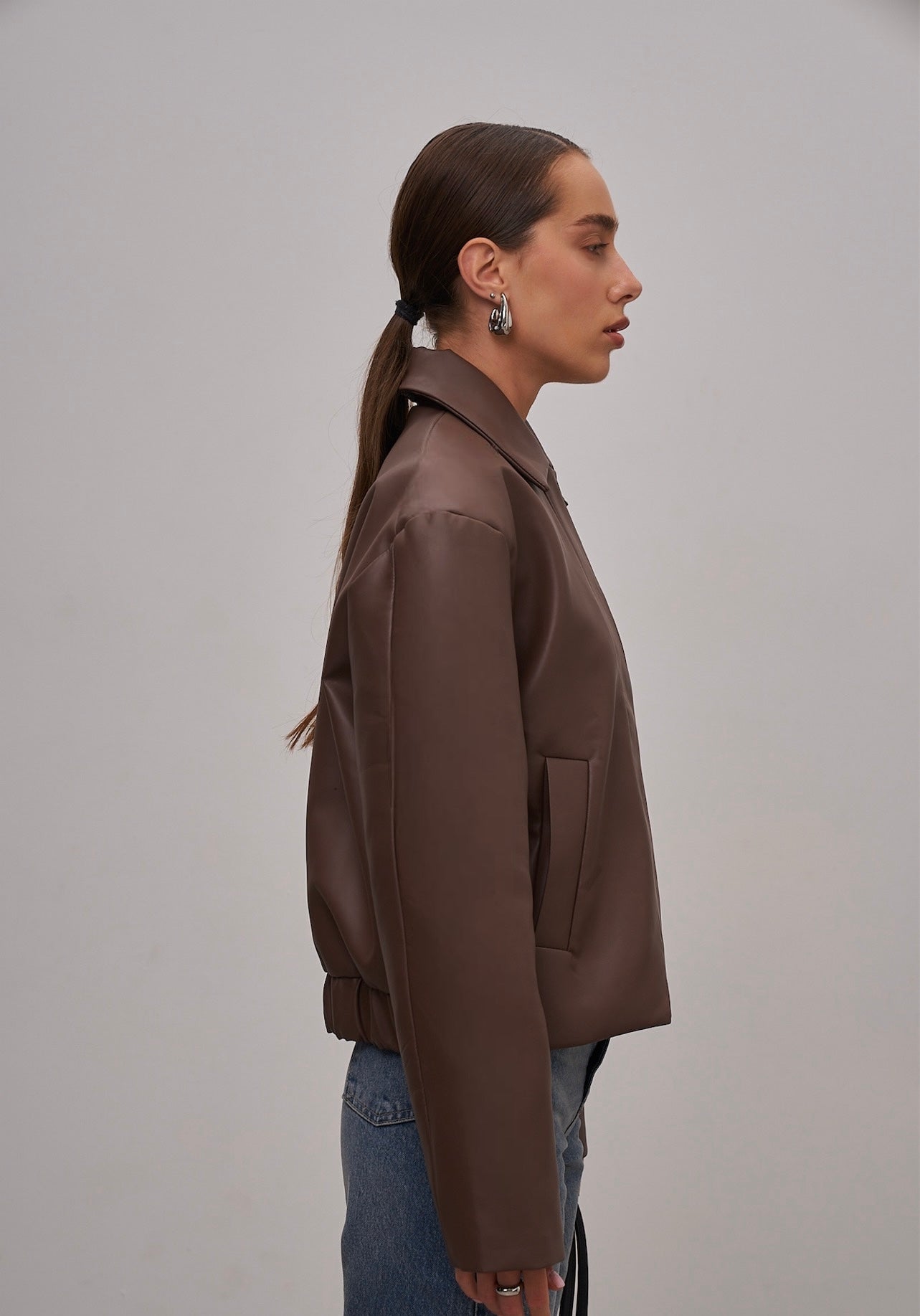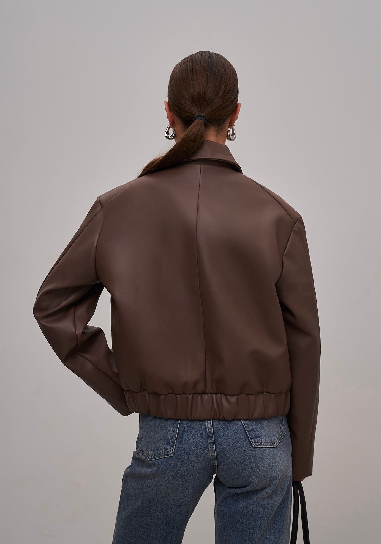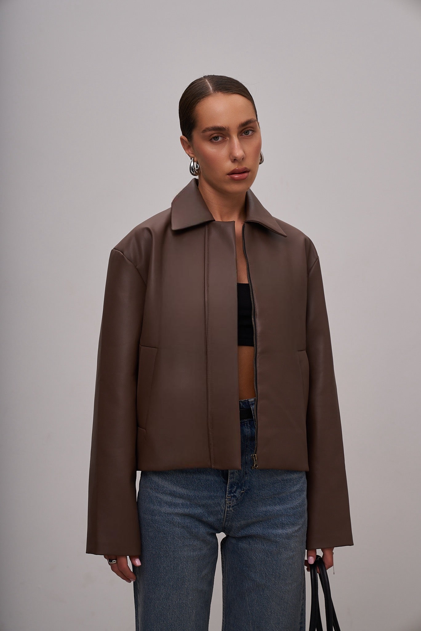 The cropped leather jacket is a stylish and versatile piece that adds a modern touch and character to any outfit. Soft leather provides comfort, while the cropped cut accentuates the waist and creates a neat silhouette. Perfectly pairs with jeans, skirts, or dresses for both everyday and evening looks.
