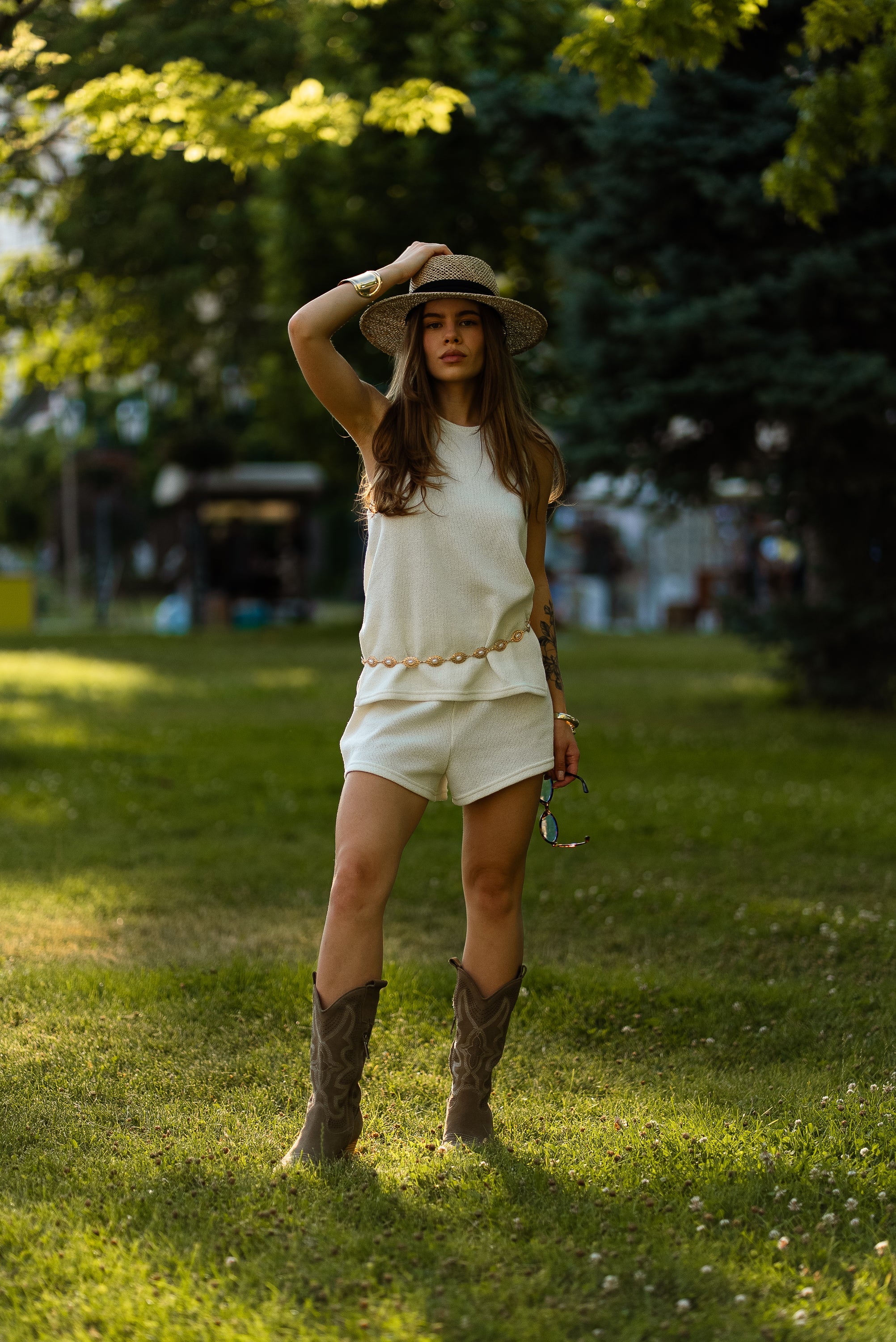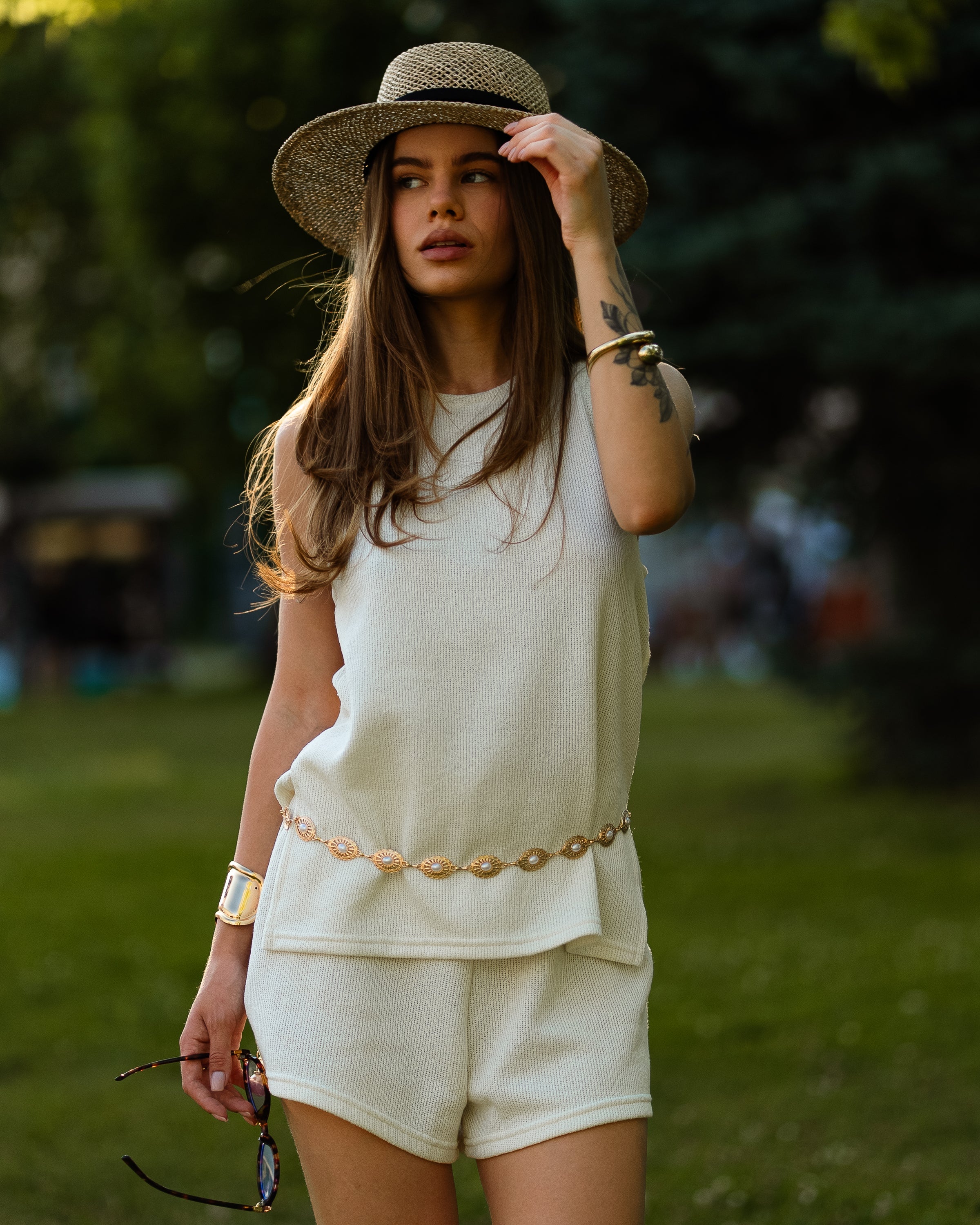 Madrid Set — the perfect women's outfit for everyday comfort. A tank top with wide straps and loose shorts create a comfortable and stylish combination for home, leisure, or summer walks.