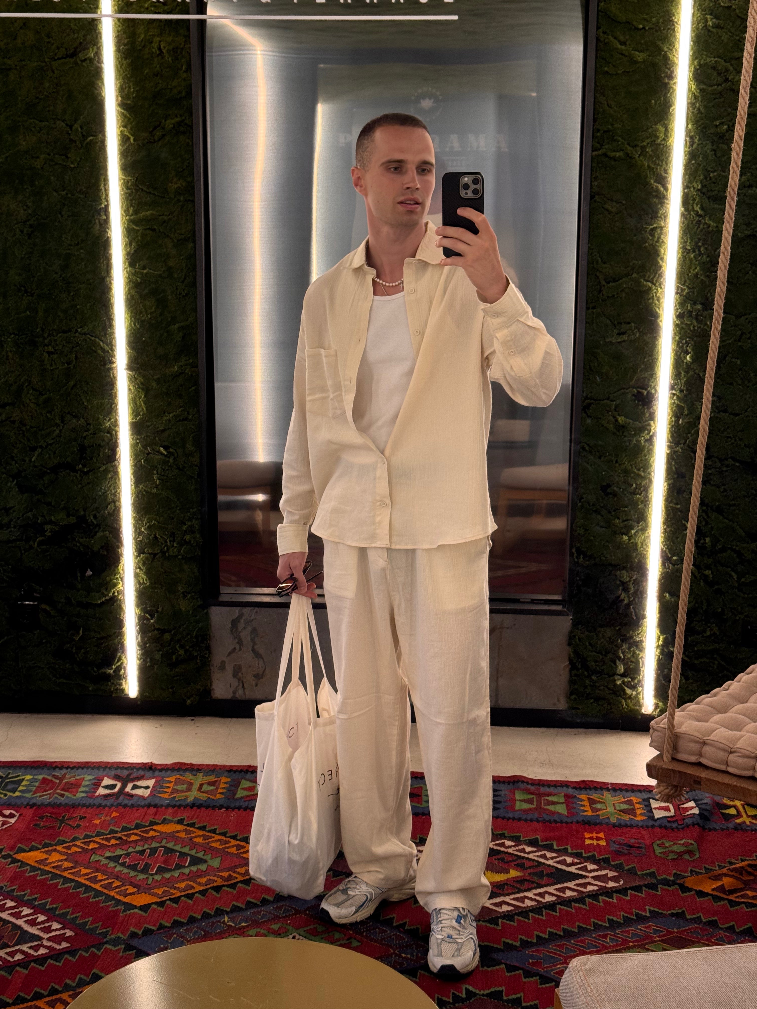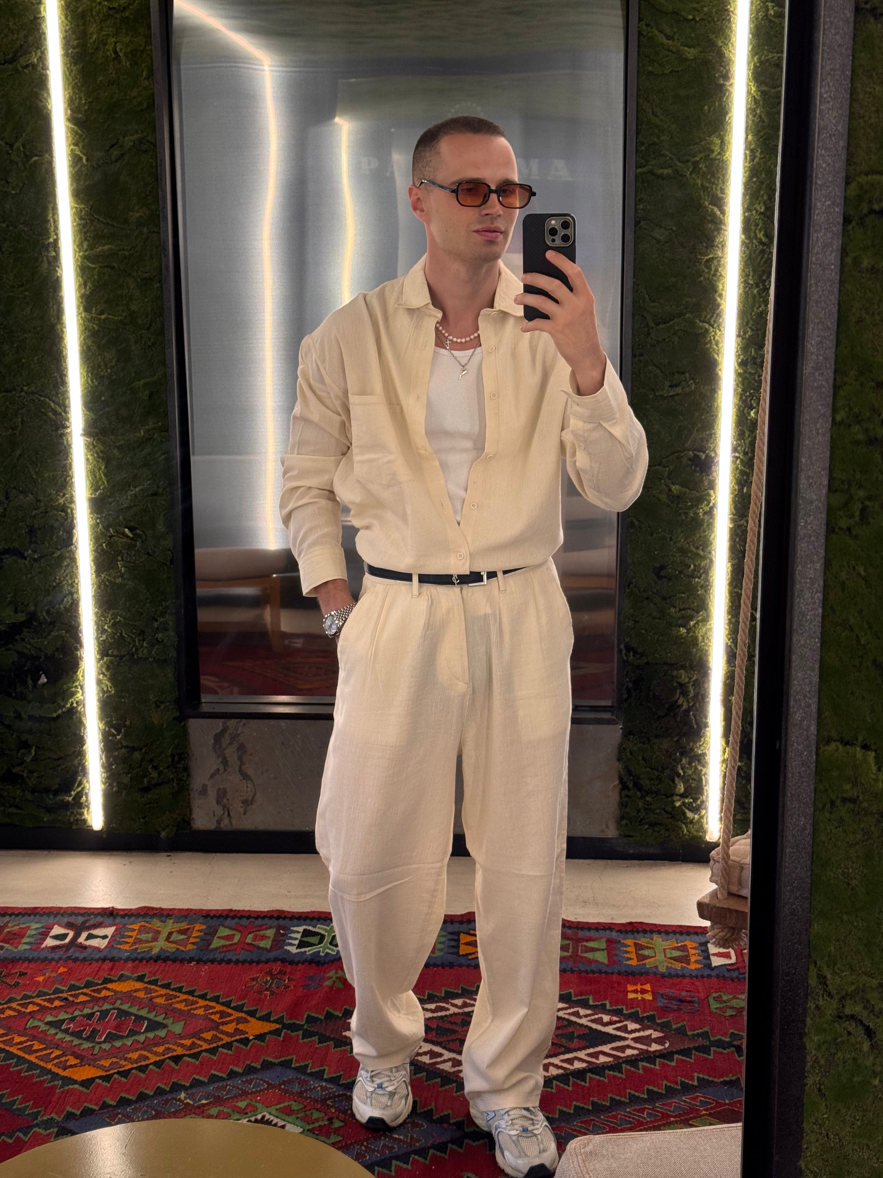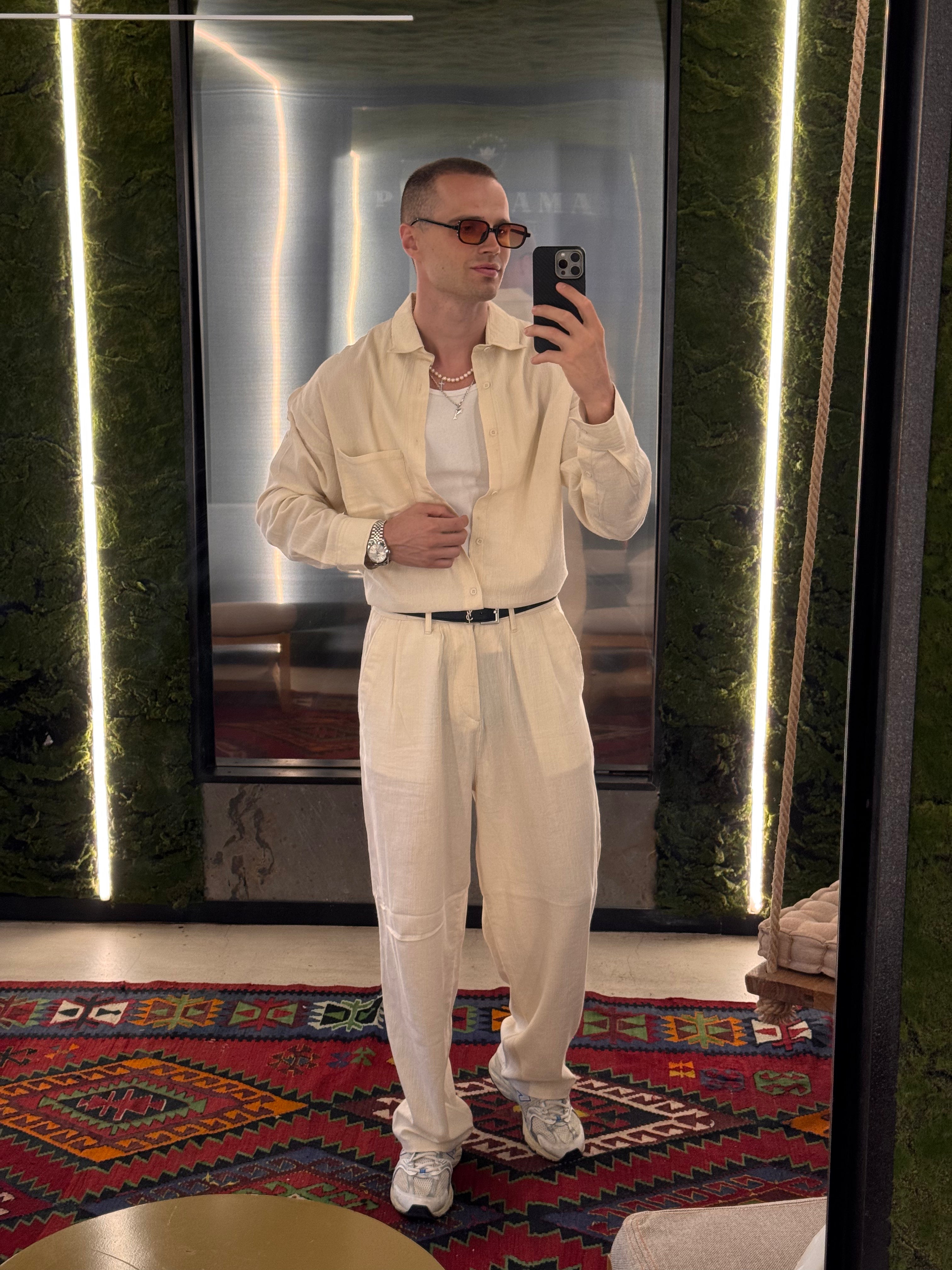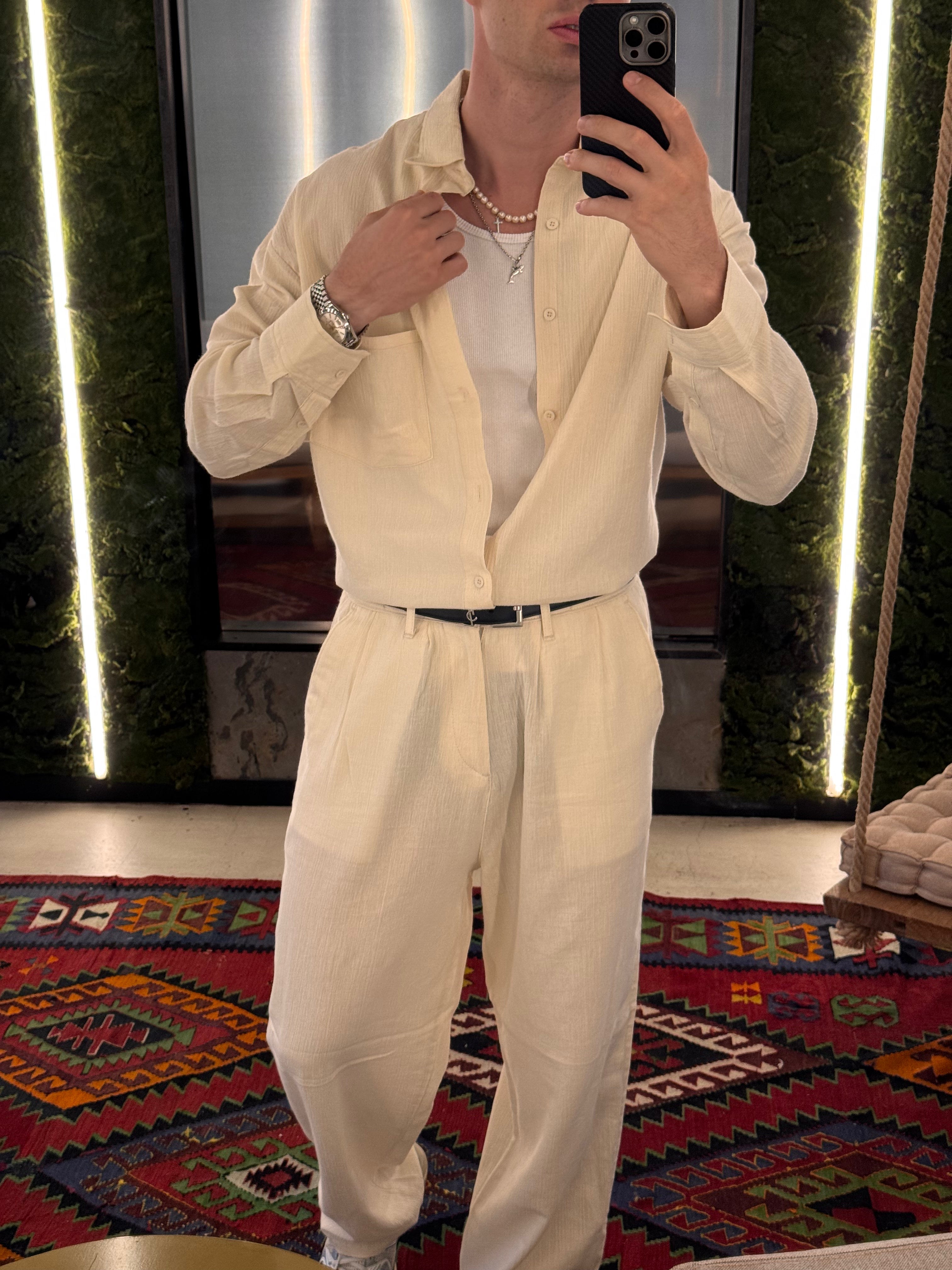 A lightweight and breathable set made from 100% natural linen. The crinkled texture adds depth and requires no ironing. Perfect for hot days — comfortable, stylish, and natural.