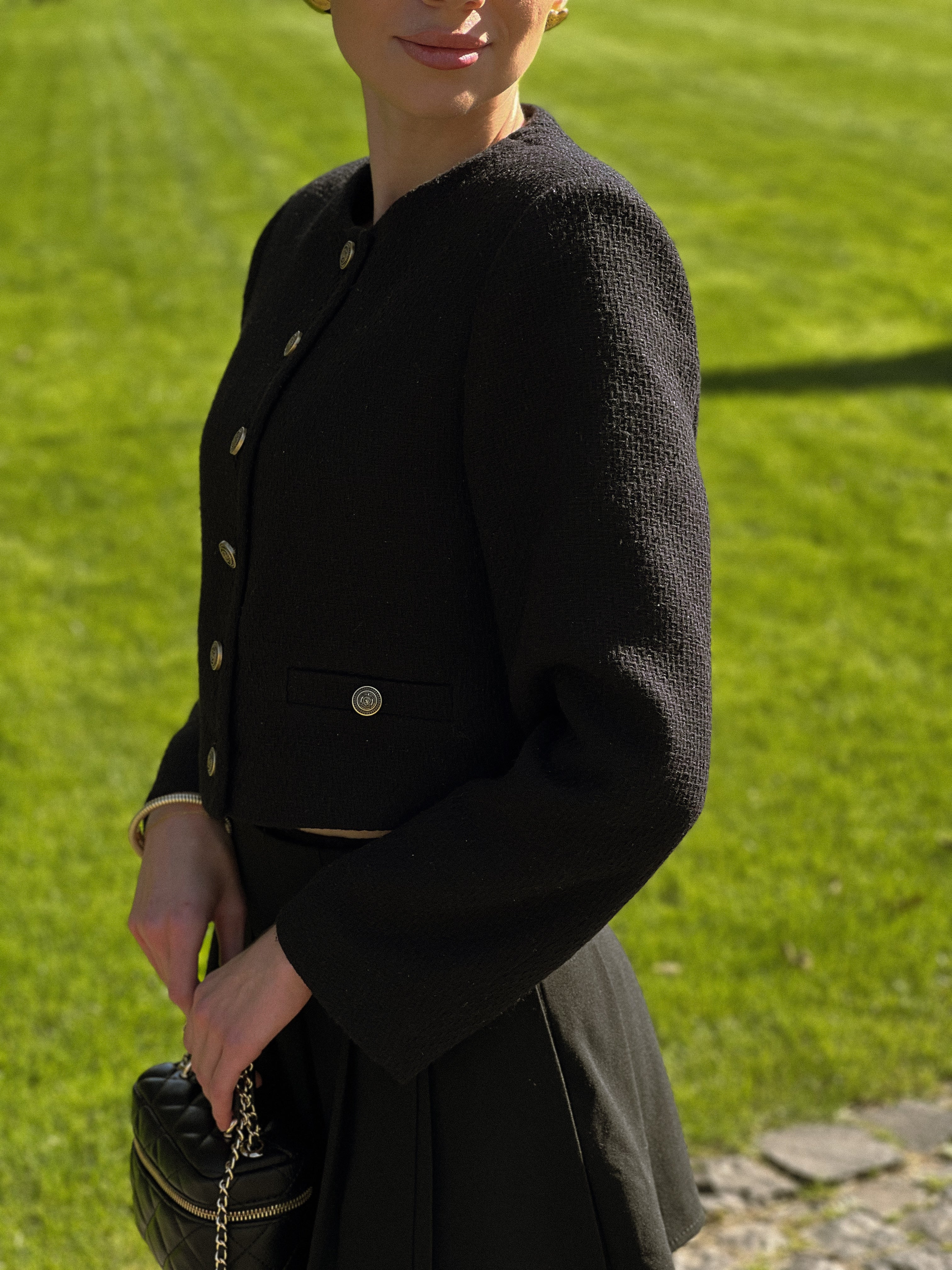 Pearl cropped jacket — a stylish and versatile wardrobe piece. The short length adds a modern and light touch, while the sleek cut makes it perfect to pair with trousers, skirts, or dresses. Creates an elegant and polished look in any situation.