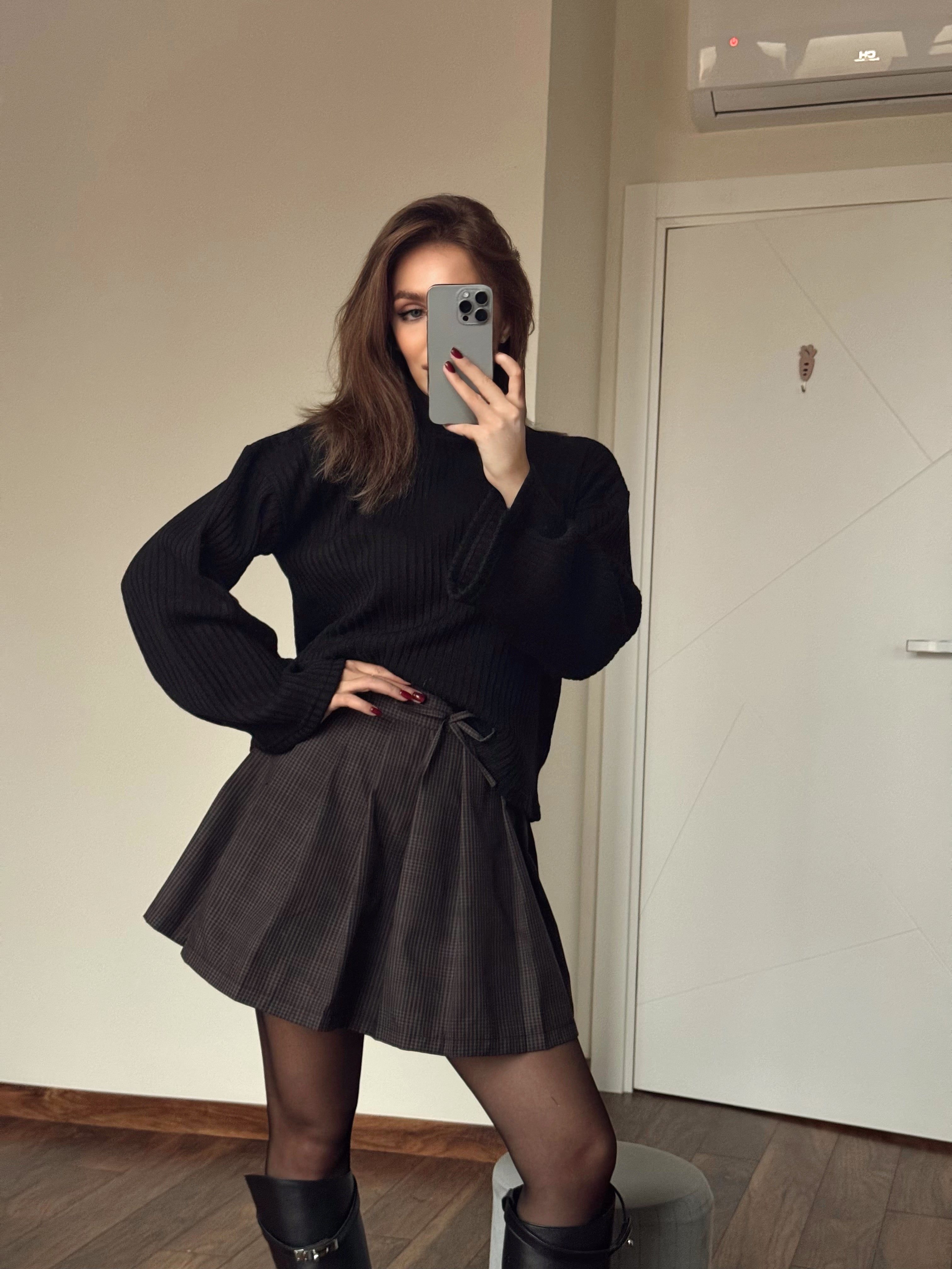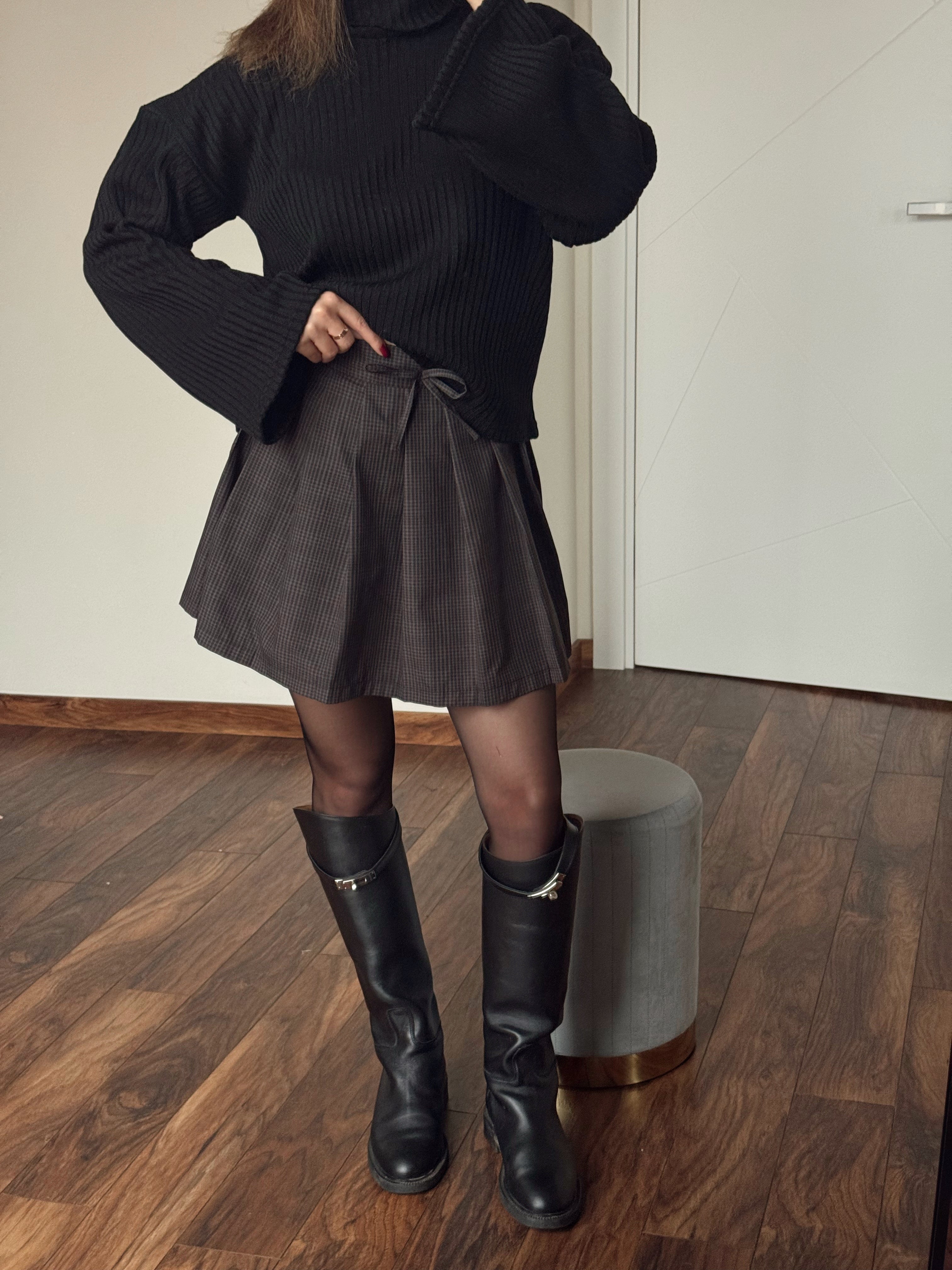 The Polli pleated skirt in gray-brown check is the perfect choice for a stylish and refined look.