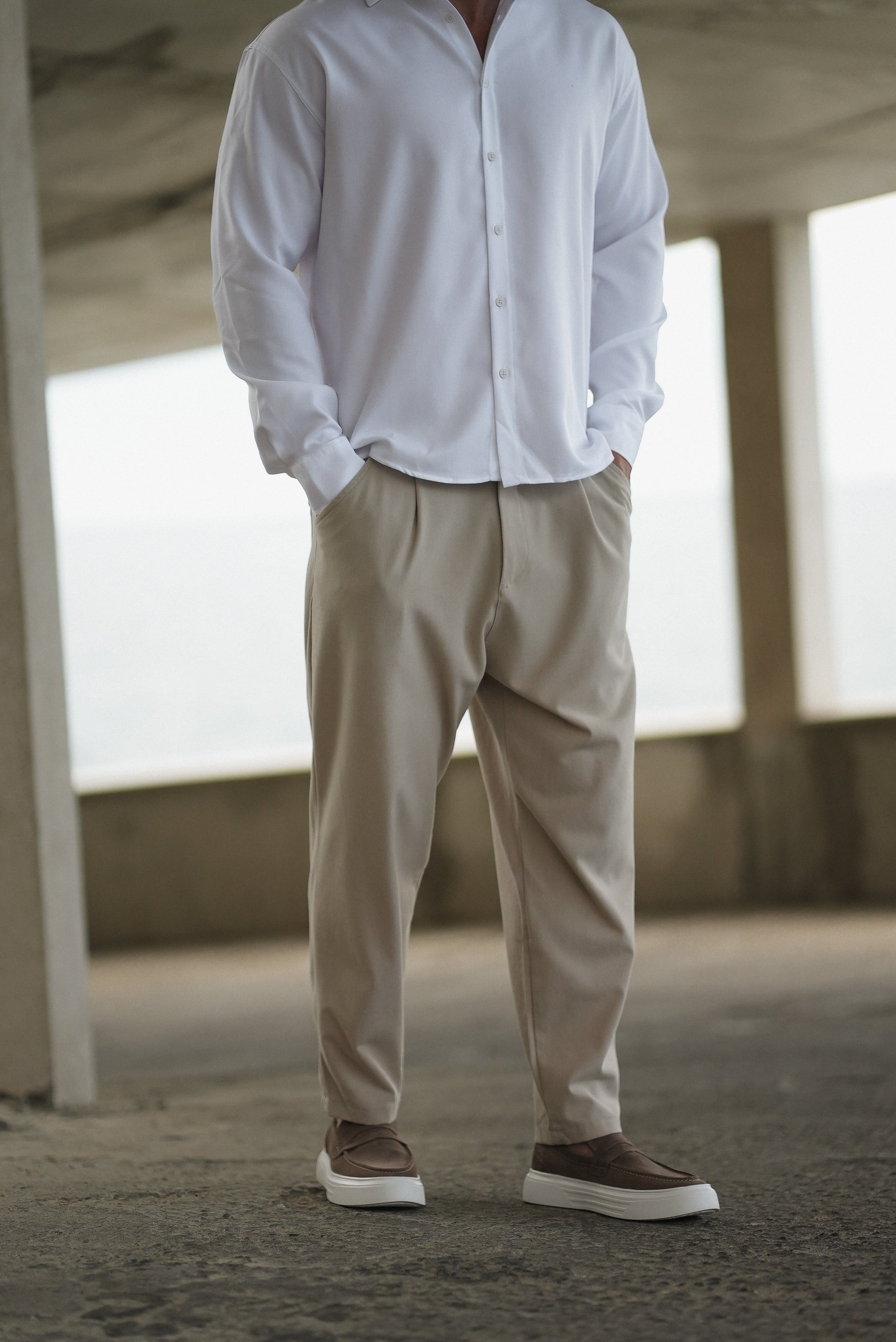 Comfortable cotton pants with a perfect fit and length. They pair effortlessly with a basic wardrobe and look stylish in any combination, allowing endless styling possibilities.
