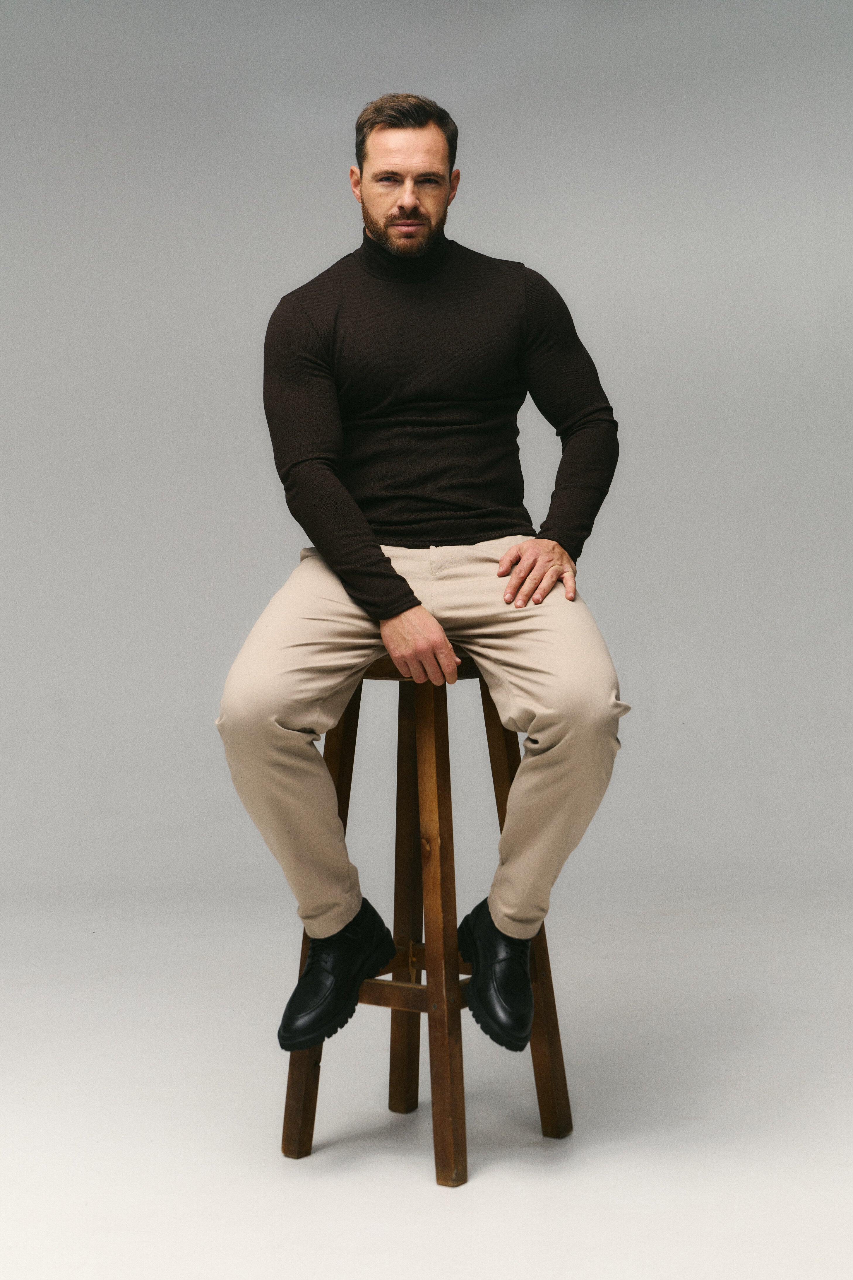 Basic smooth turtlenecks are a must-have in every man’s wardrobe. Easy to combine with anything, they always create a stylish look.