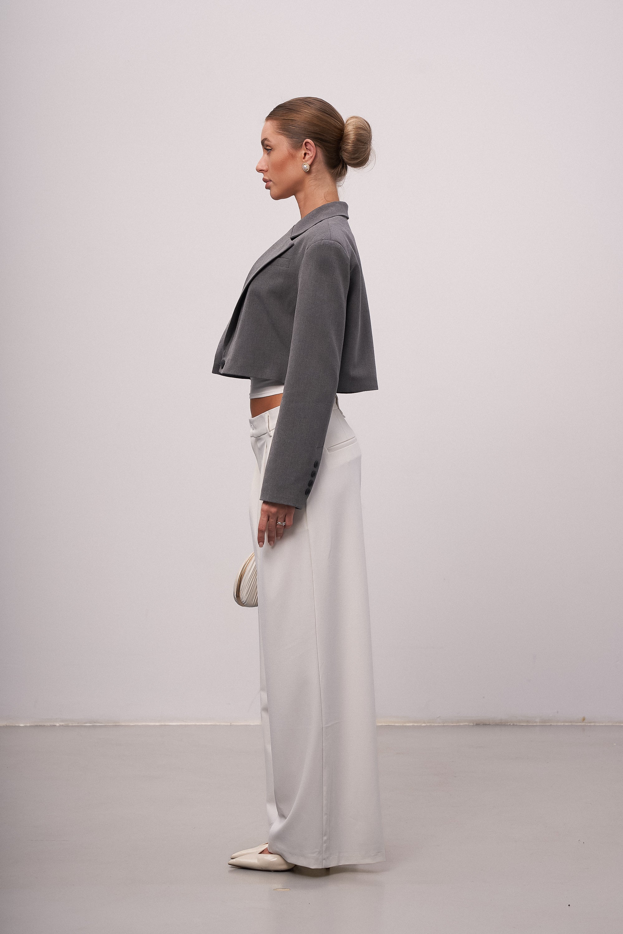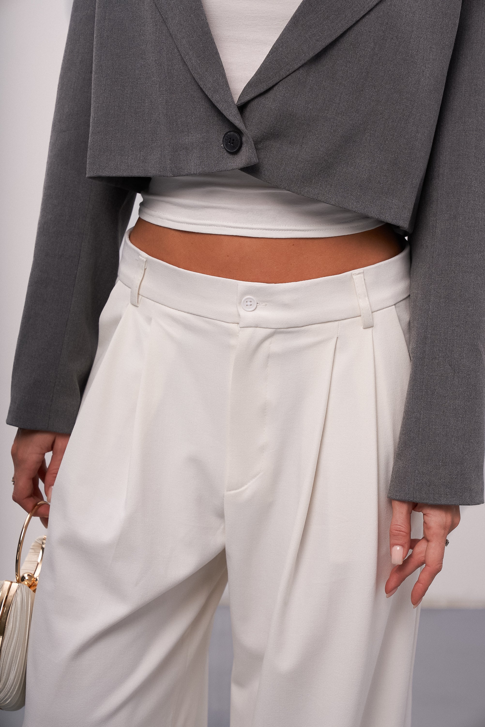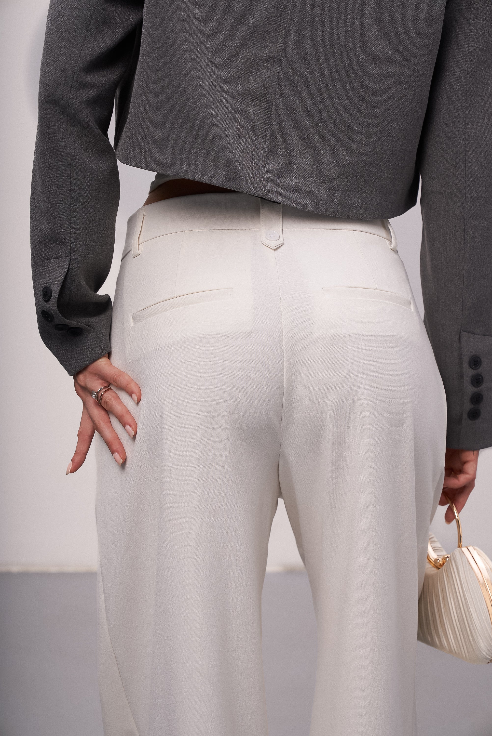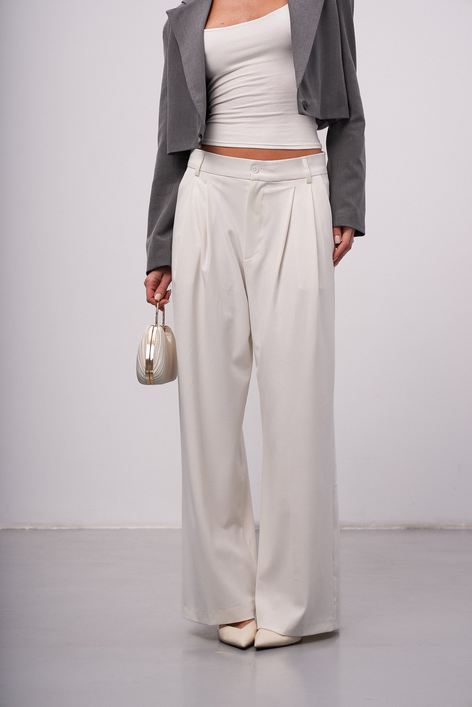 - The extremely wide cut with a high waist highlights the figure and adds elegance.