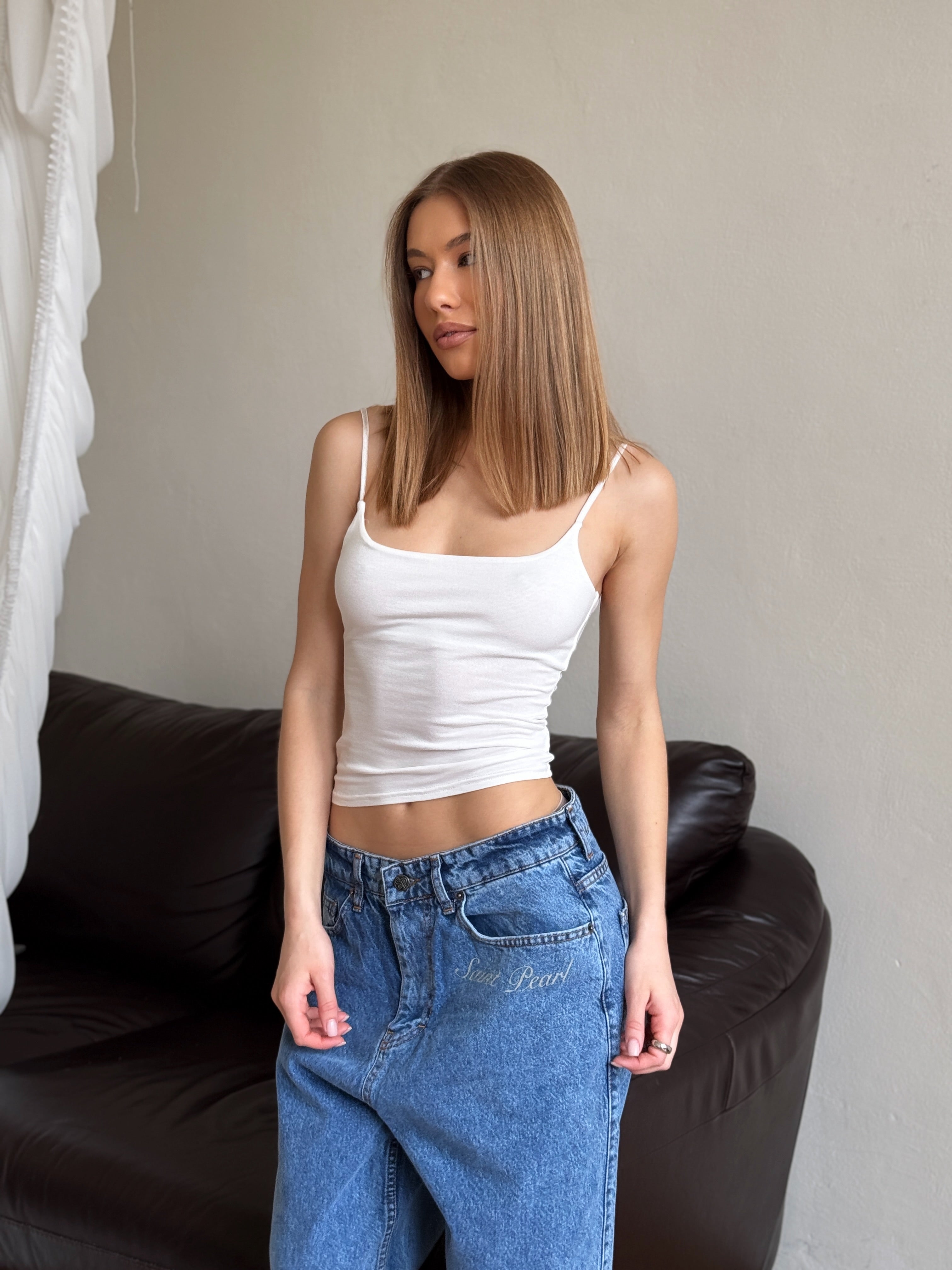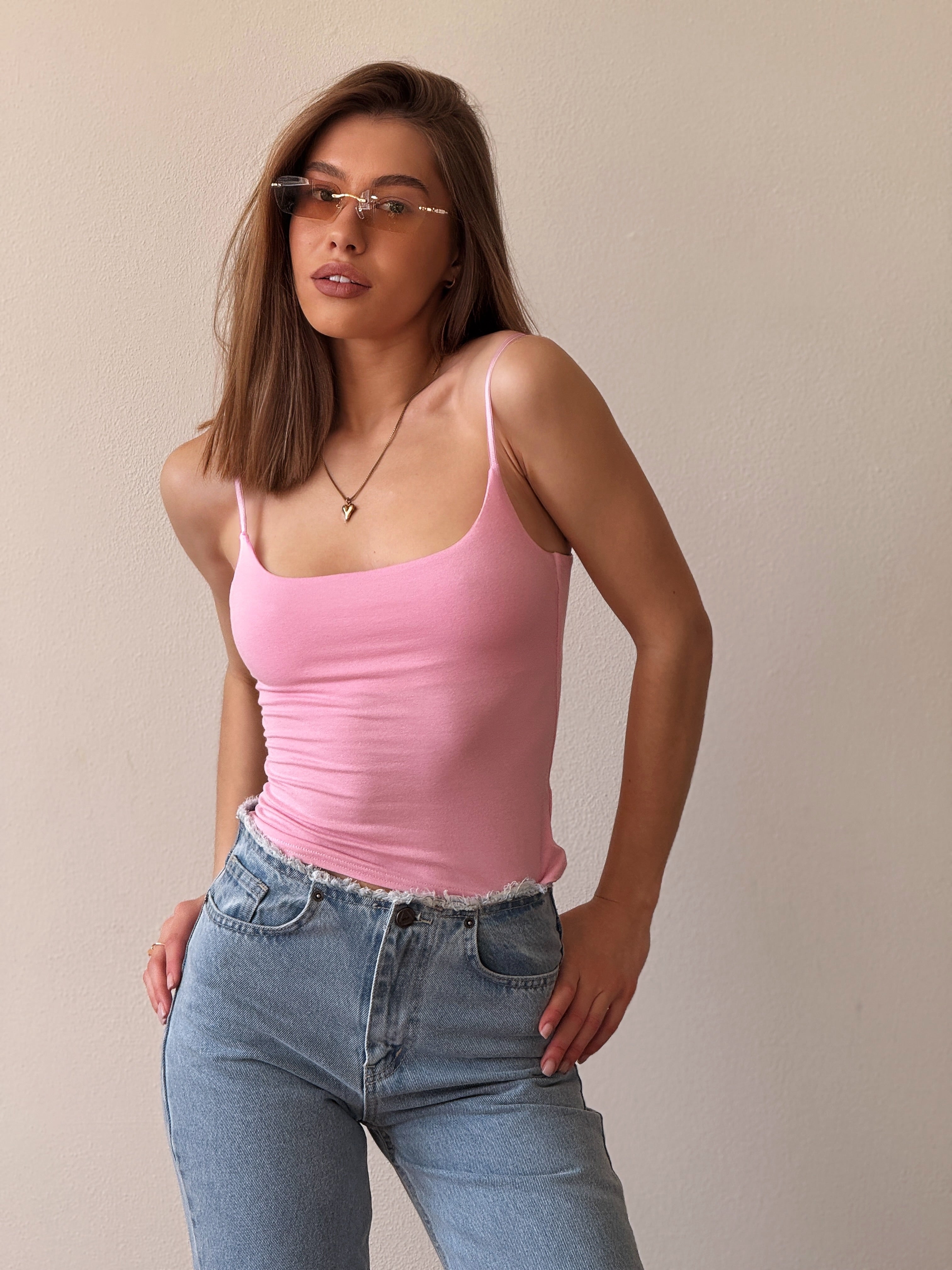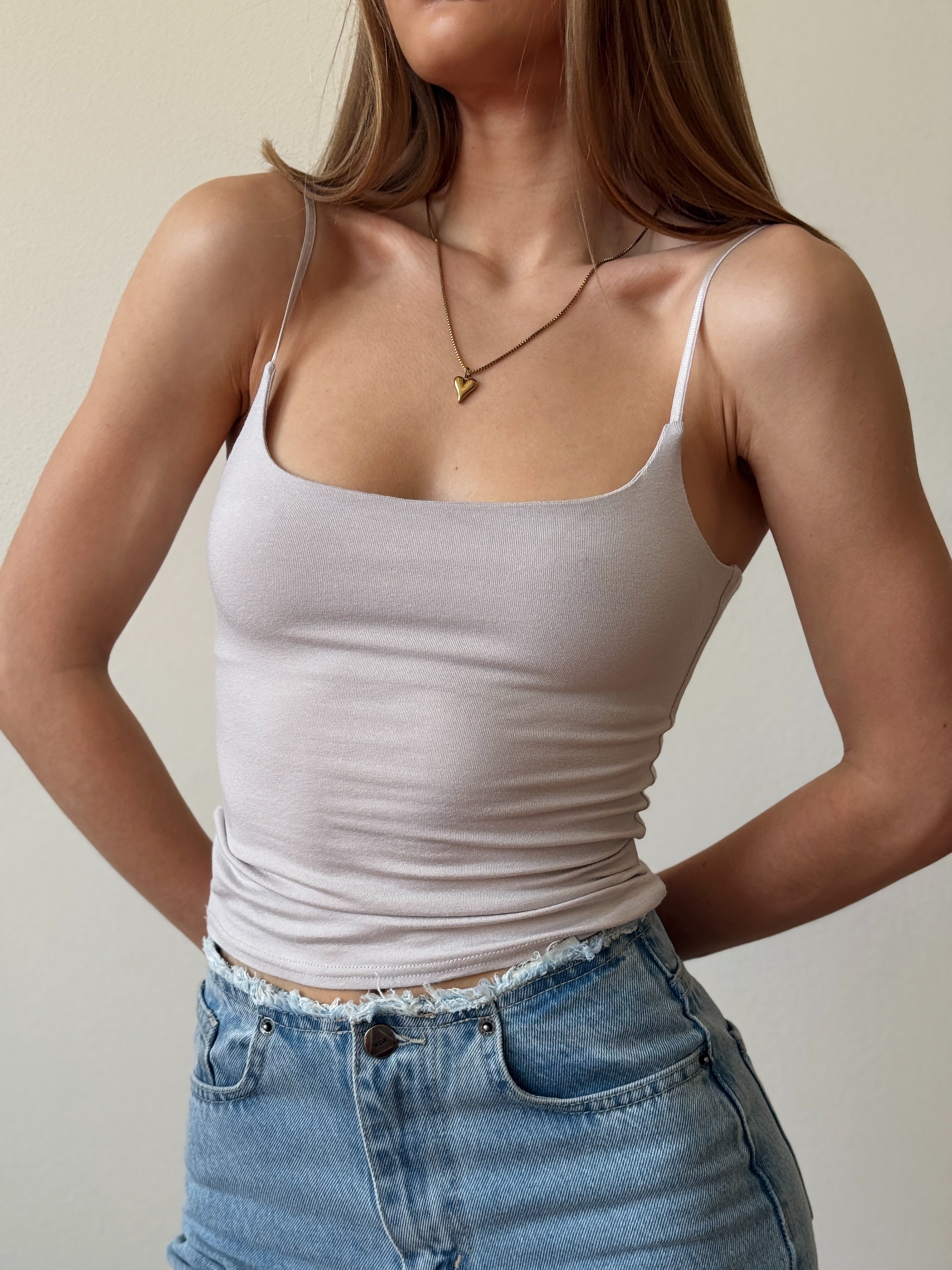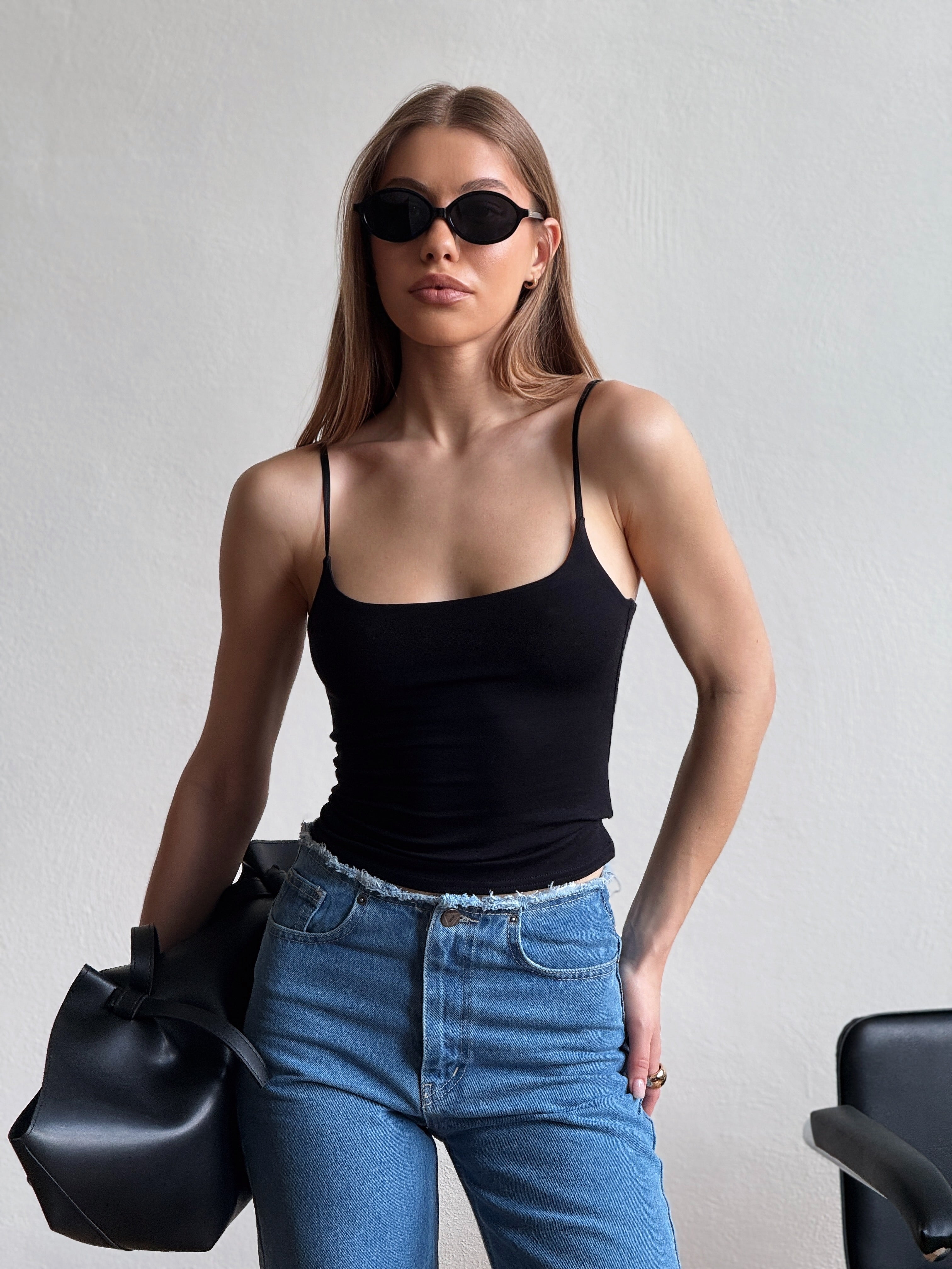The Vanessa women's camisole is a minimalist and stylish piece that highlights the silhouette and adds elegance to your look. Lightweight fabric and a neat cut make it comfortable and versatile for layering or wearing as a standalone wardrobe staple.