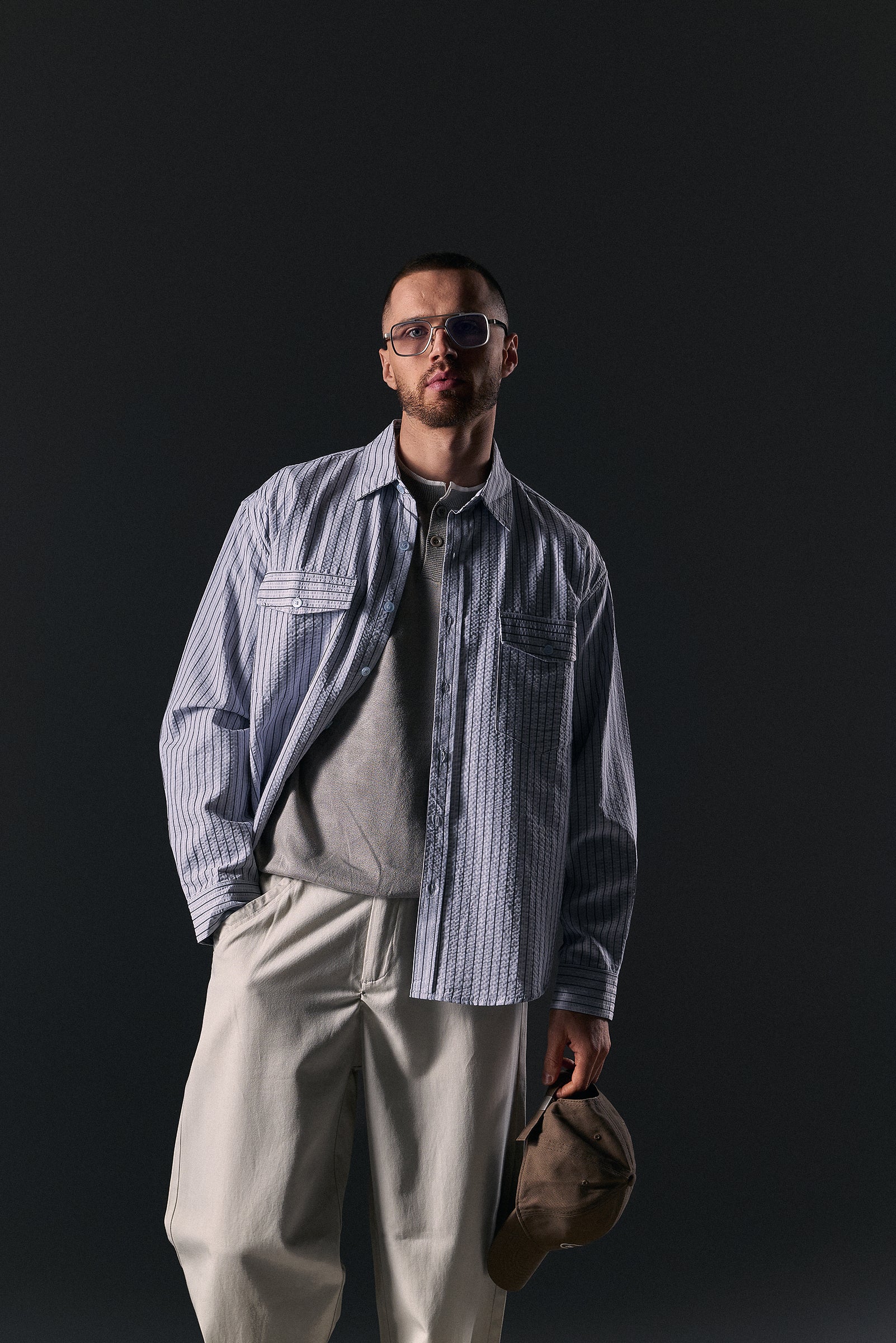 Men's Litt Striped Shirt — a perfect blend of classic style and lightness. Straight cut, restrained design, and vertical stripes add structure to the silhouette. Ideal for summer outfits, both business and casual.