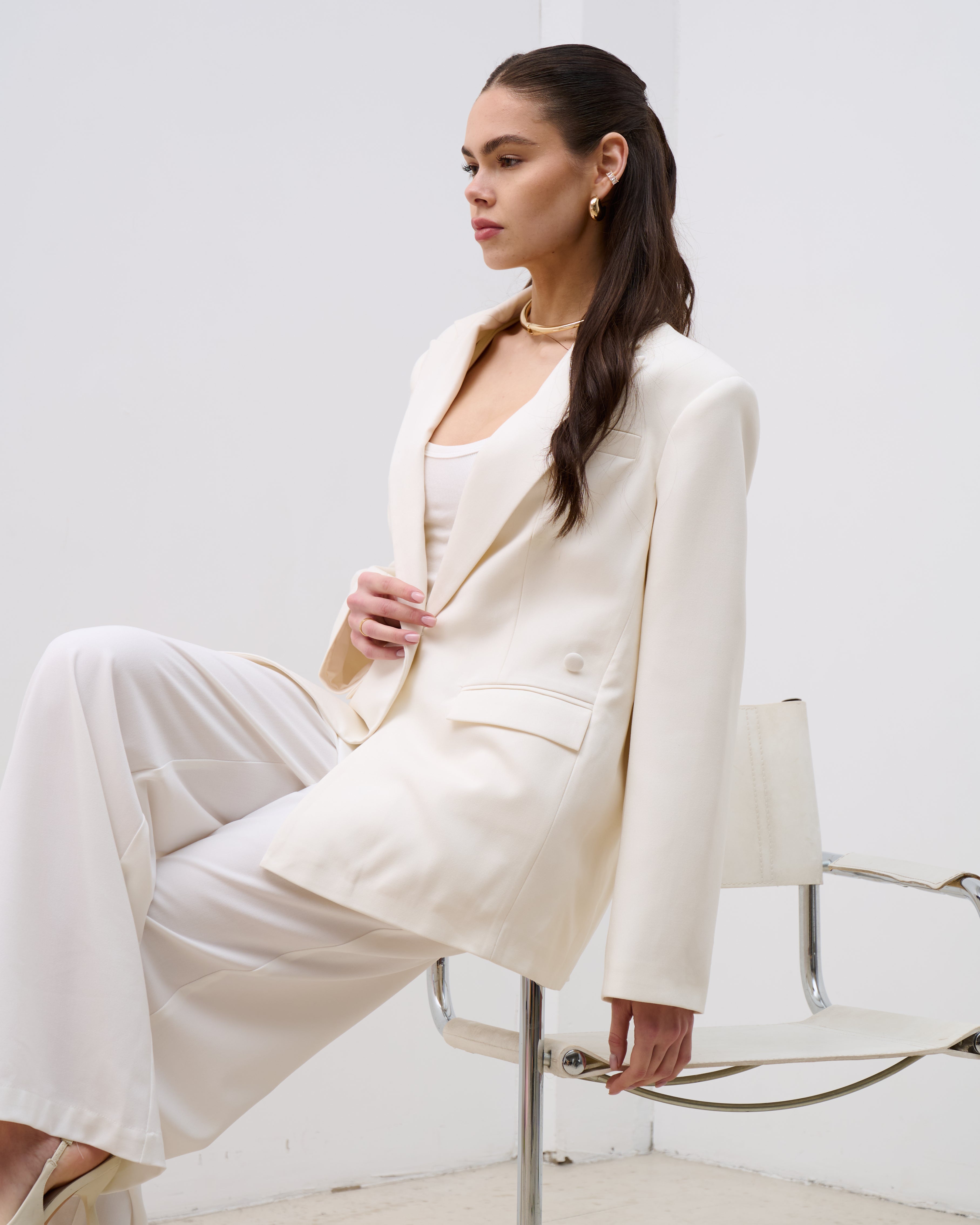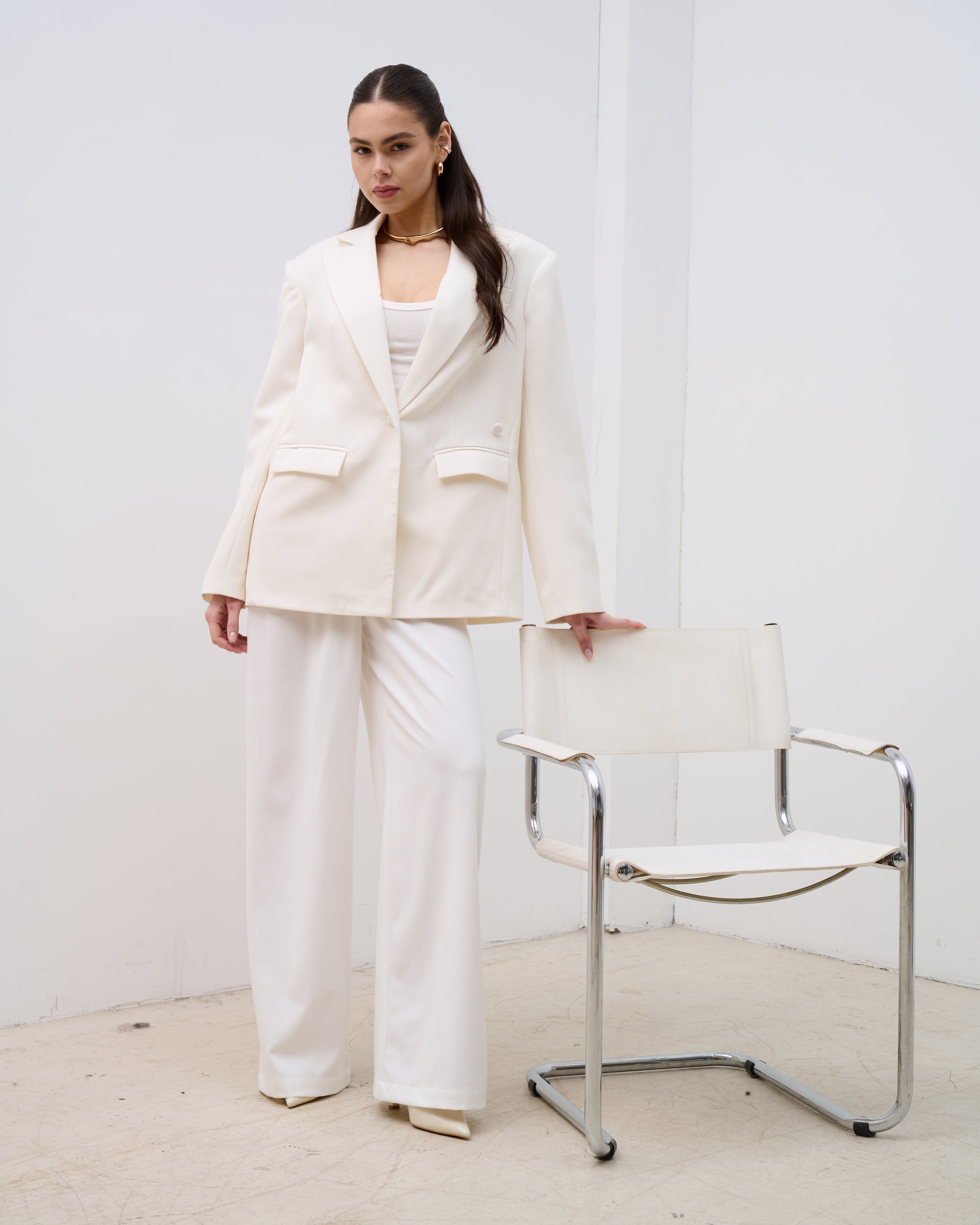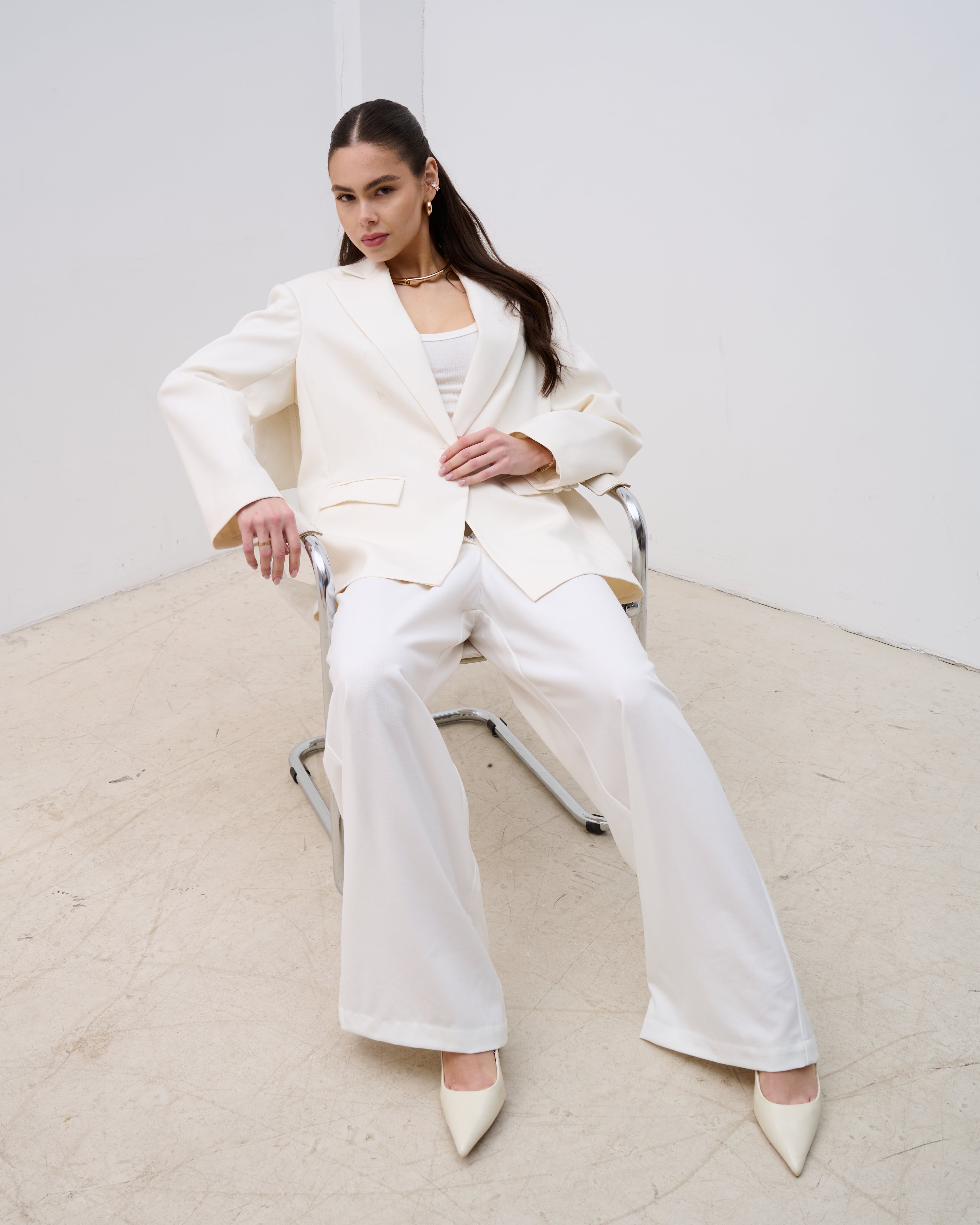 Iron palazzo trousers are an elegant wide-leg design that creates a refined, elongated silhouette. They adapt effortlessly to both minimal everyday looks and more statement combinations, adding confidence and lightness to your style.
