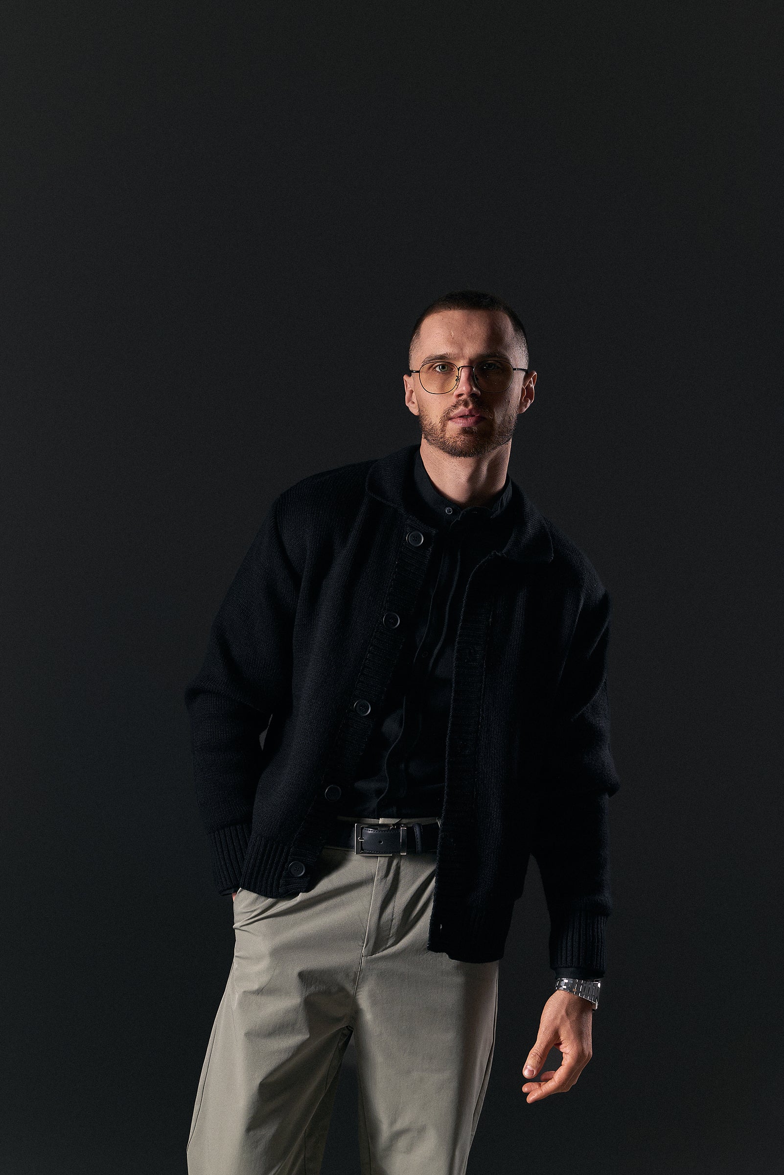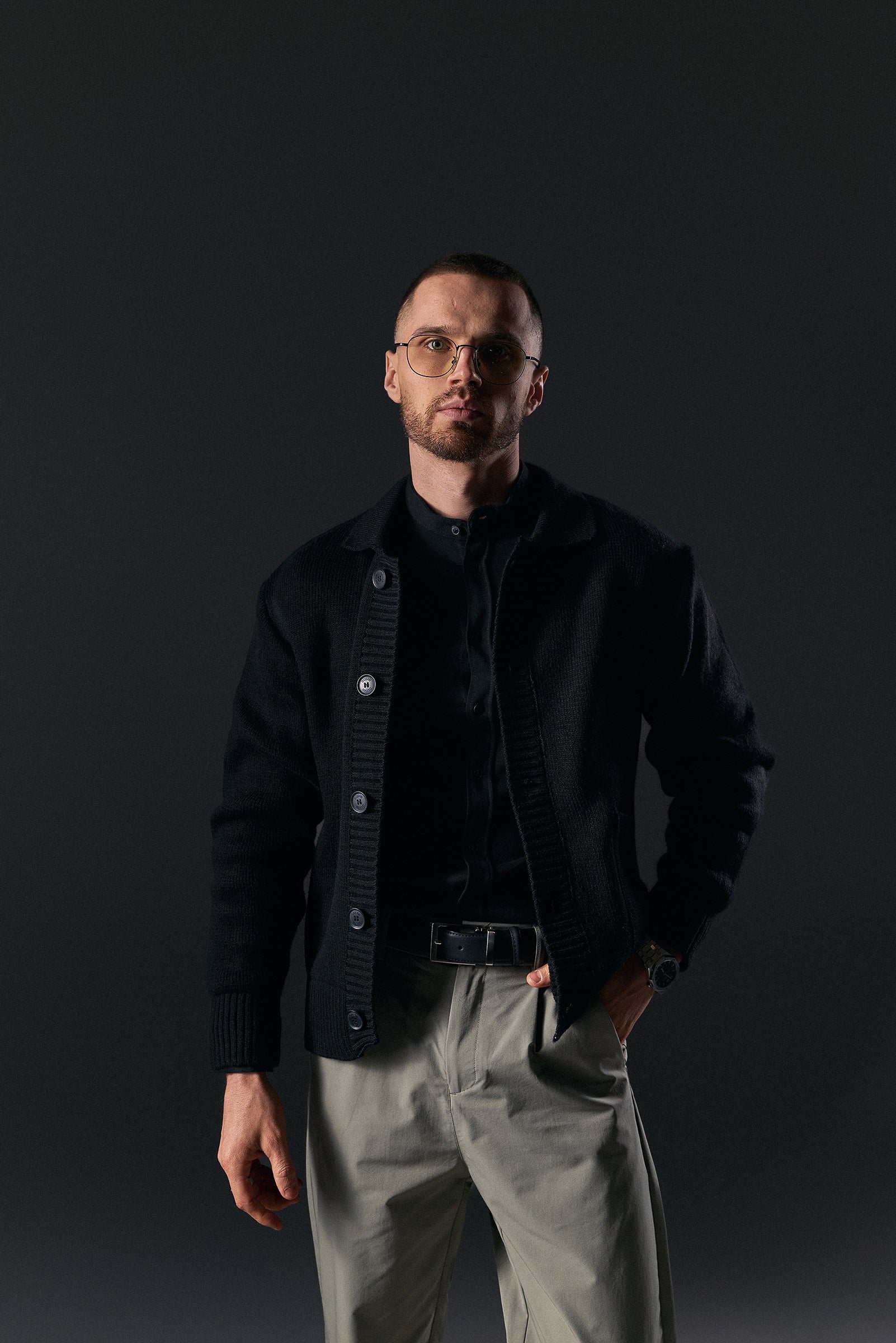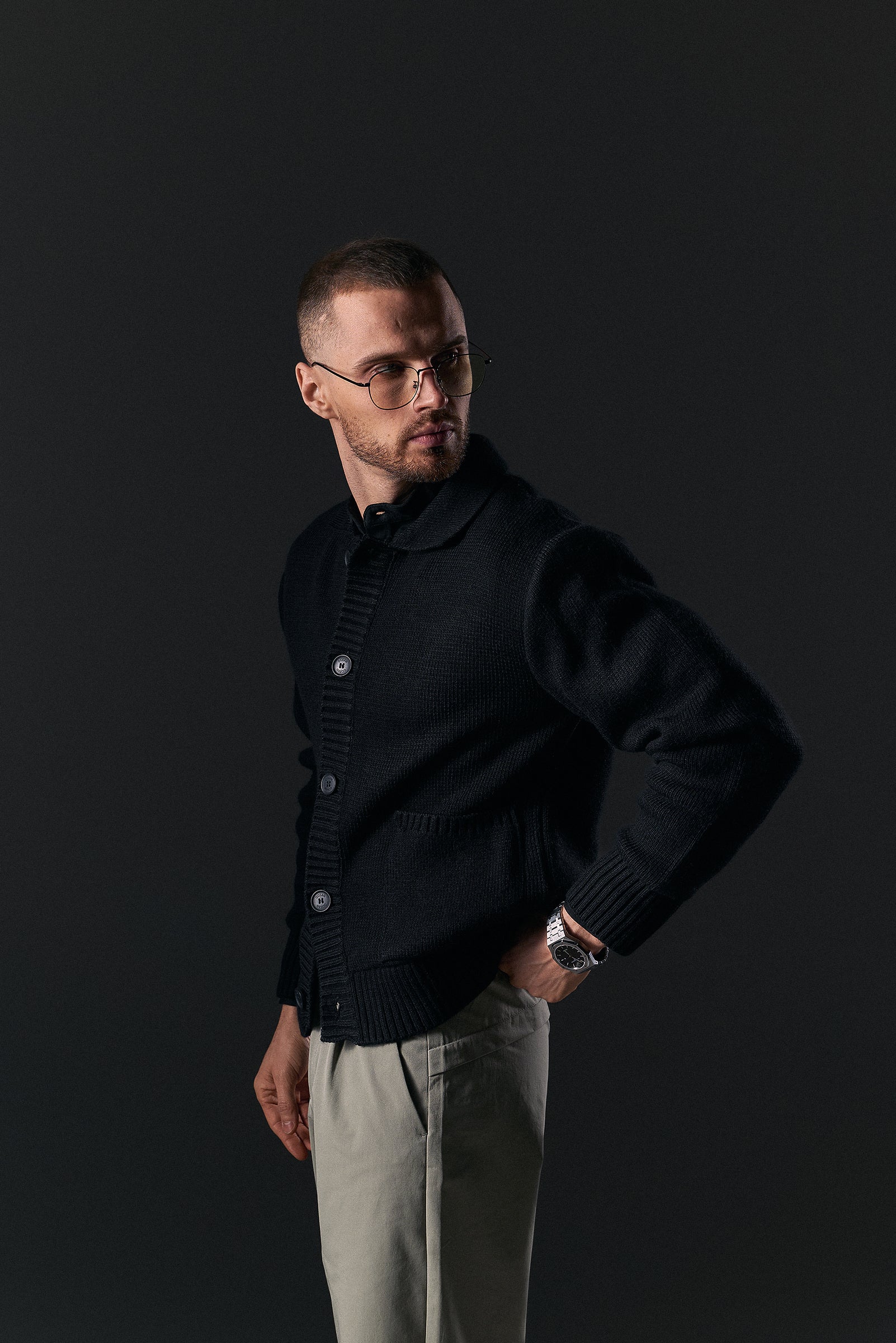 A practical cardigan that perfectly emphasizes masculinity and style. This versatile piece pairs easily with various outfits and becomes a staple in any man’s wardrobe.