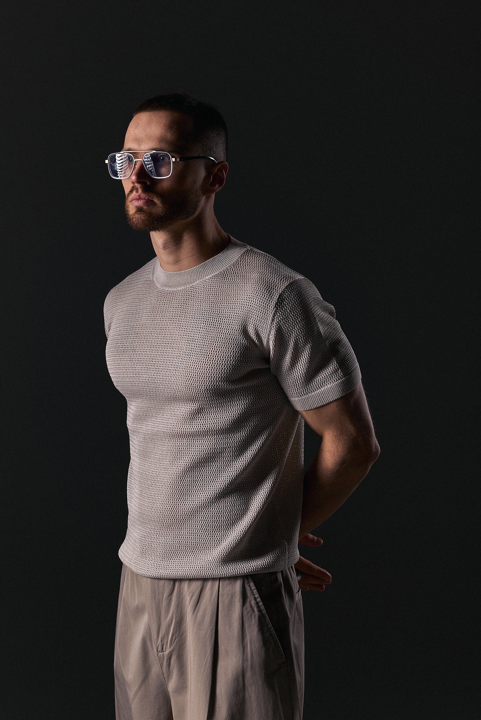 The Knitted Mesh T-Shirt is a lightweight and stylish piece designed for a modern, relaxed look. Made from breathable mesh knit fabric, it provides excellent airflow and comfort, making it perfect for warm weather or layered outfits. The textured structure adds a distinctive touch to any casual wardrobe.