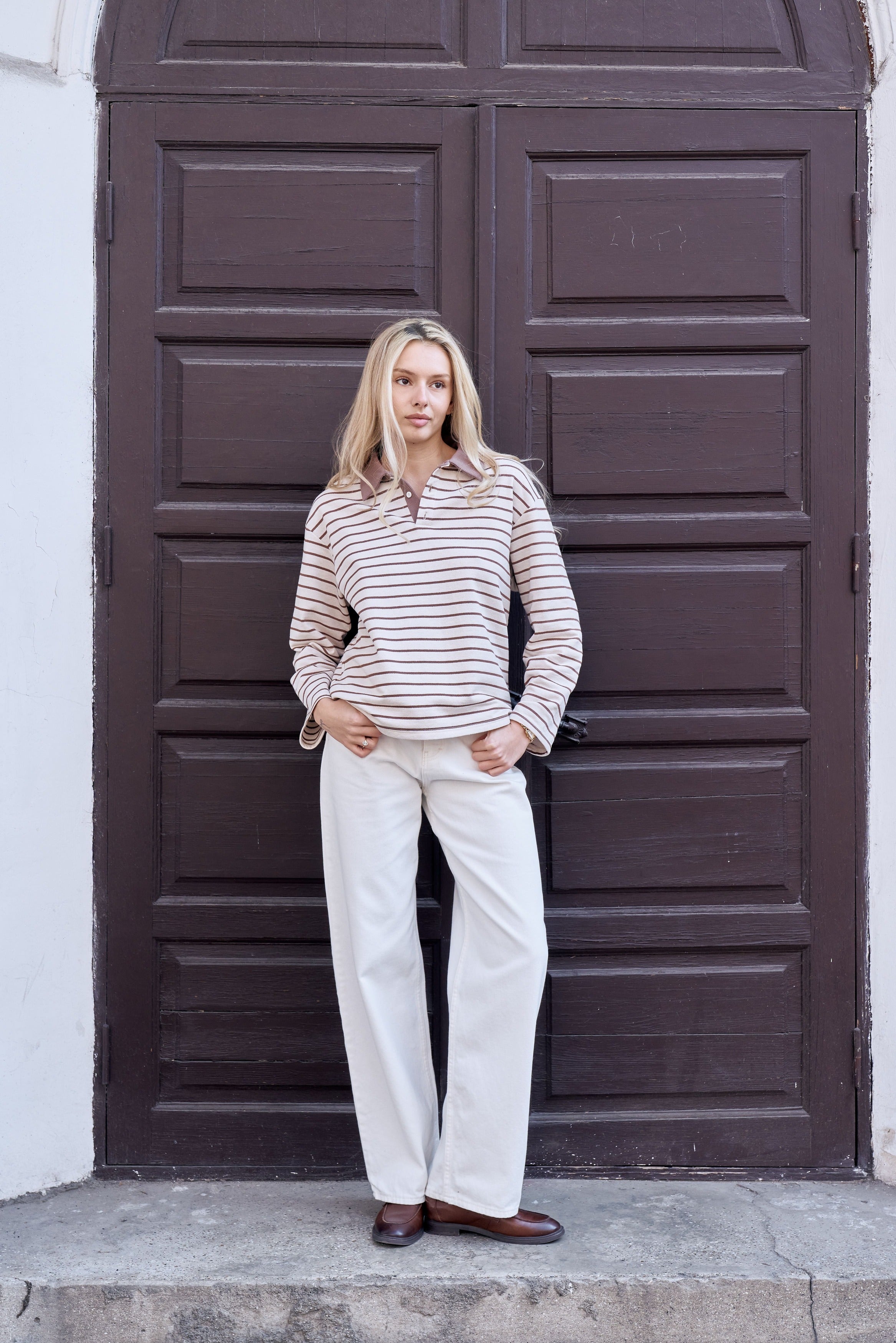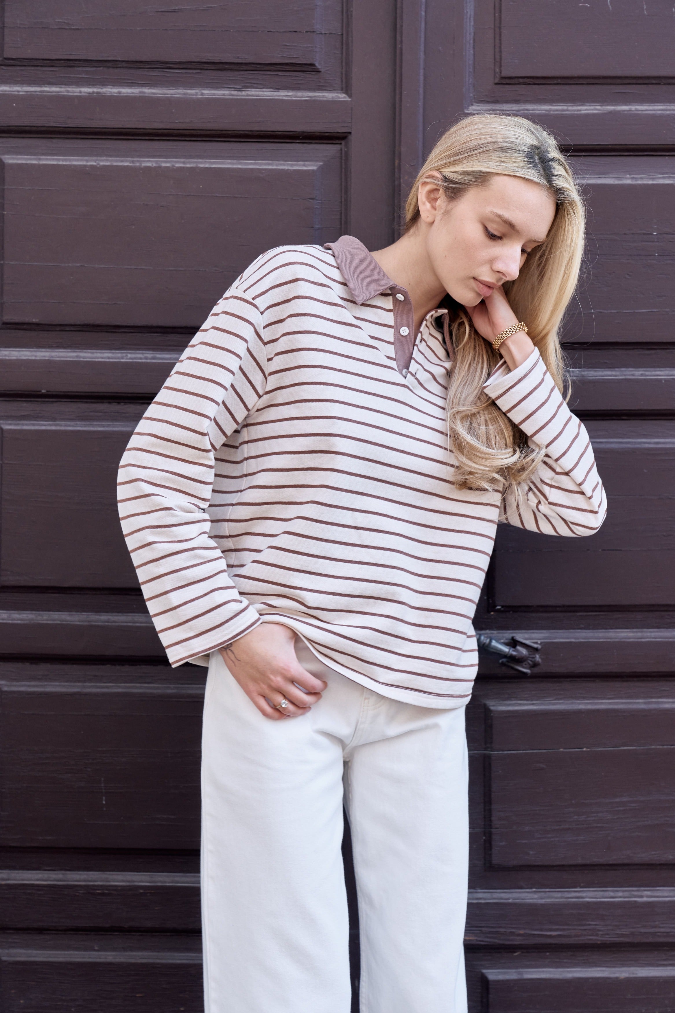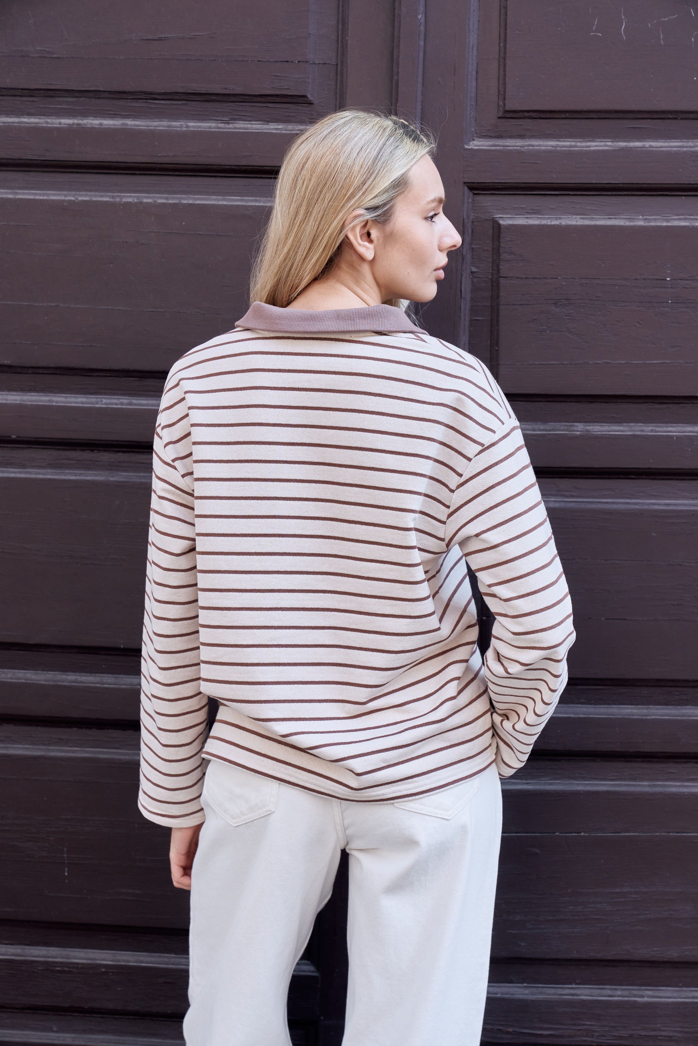 Striped polo longsleeve — a blend of classic style and everyday comfort .The neat polo collar adds a polished touch, while the stripes make the look more expressive and modern.