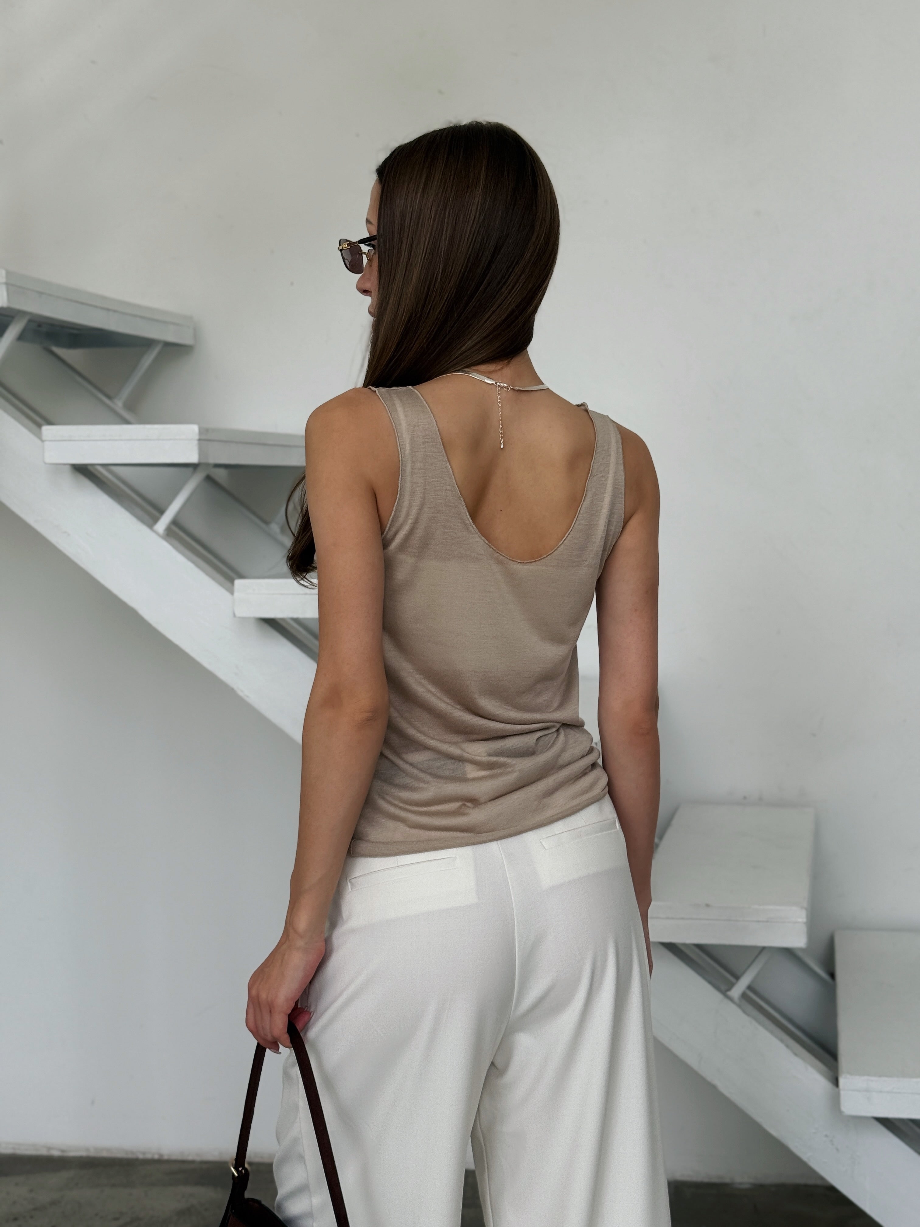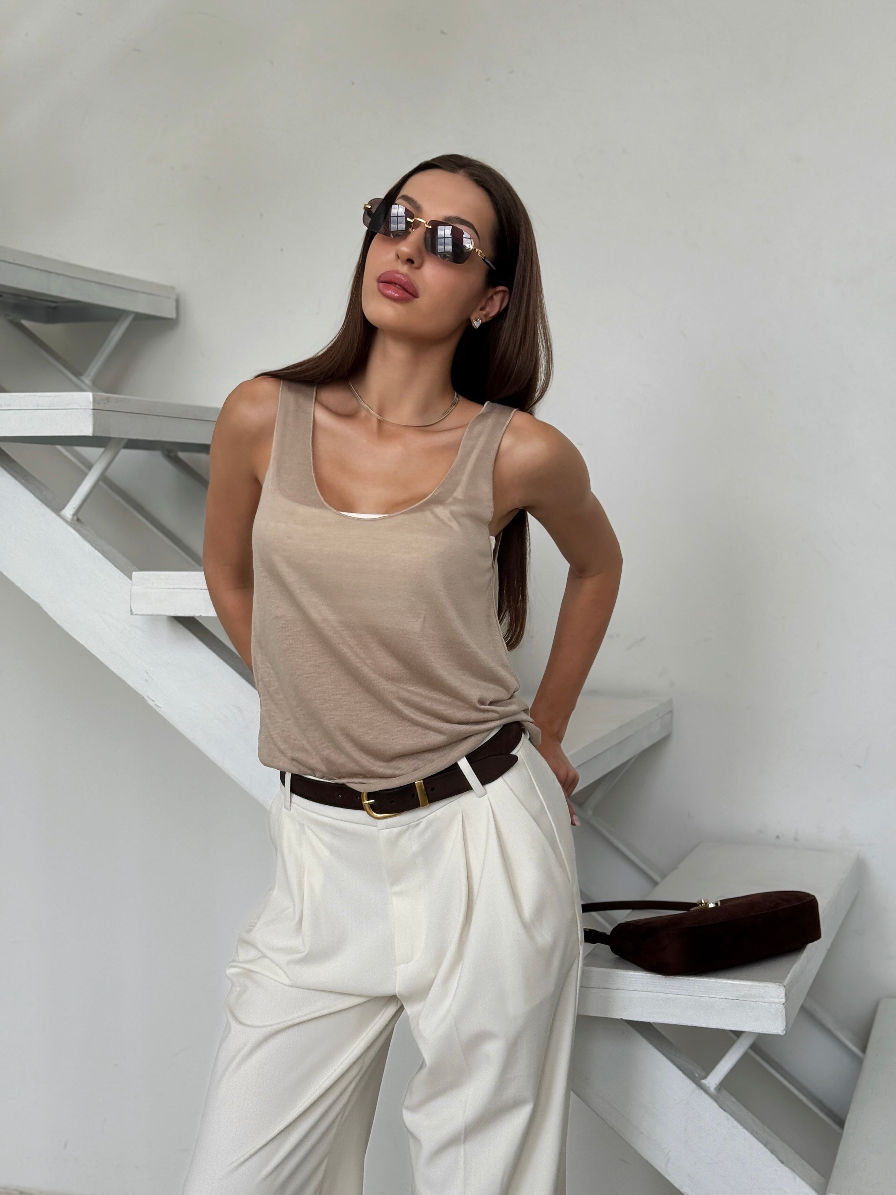 The “Margarita” tank top is a basic piece with a minimalist cut and soft elastic fabric. It comfortably highlights the figure and serves as the perfect foundation for both everyday looks and layered outfits.