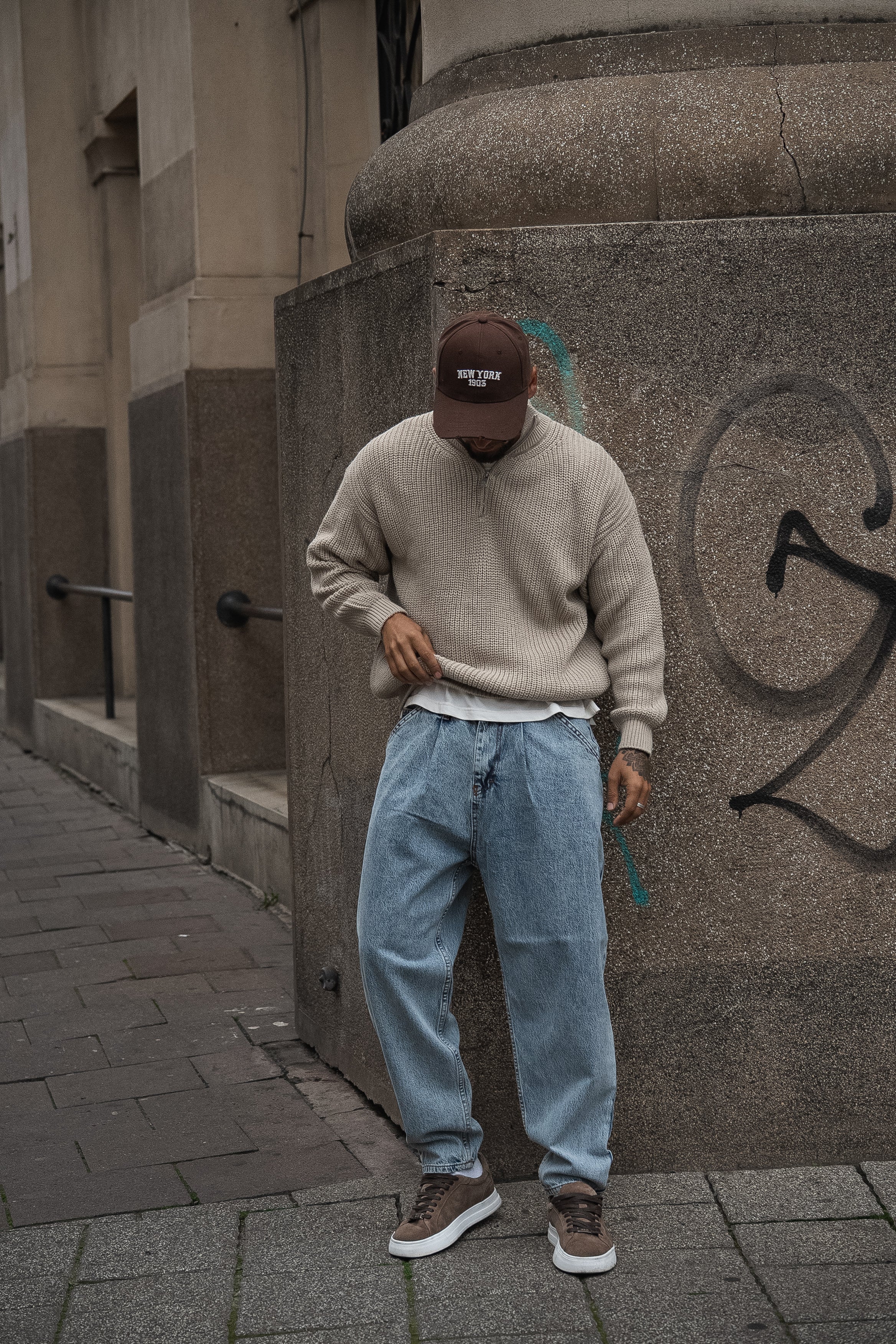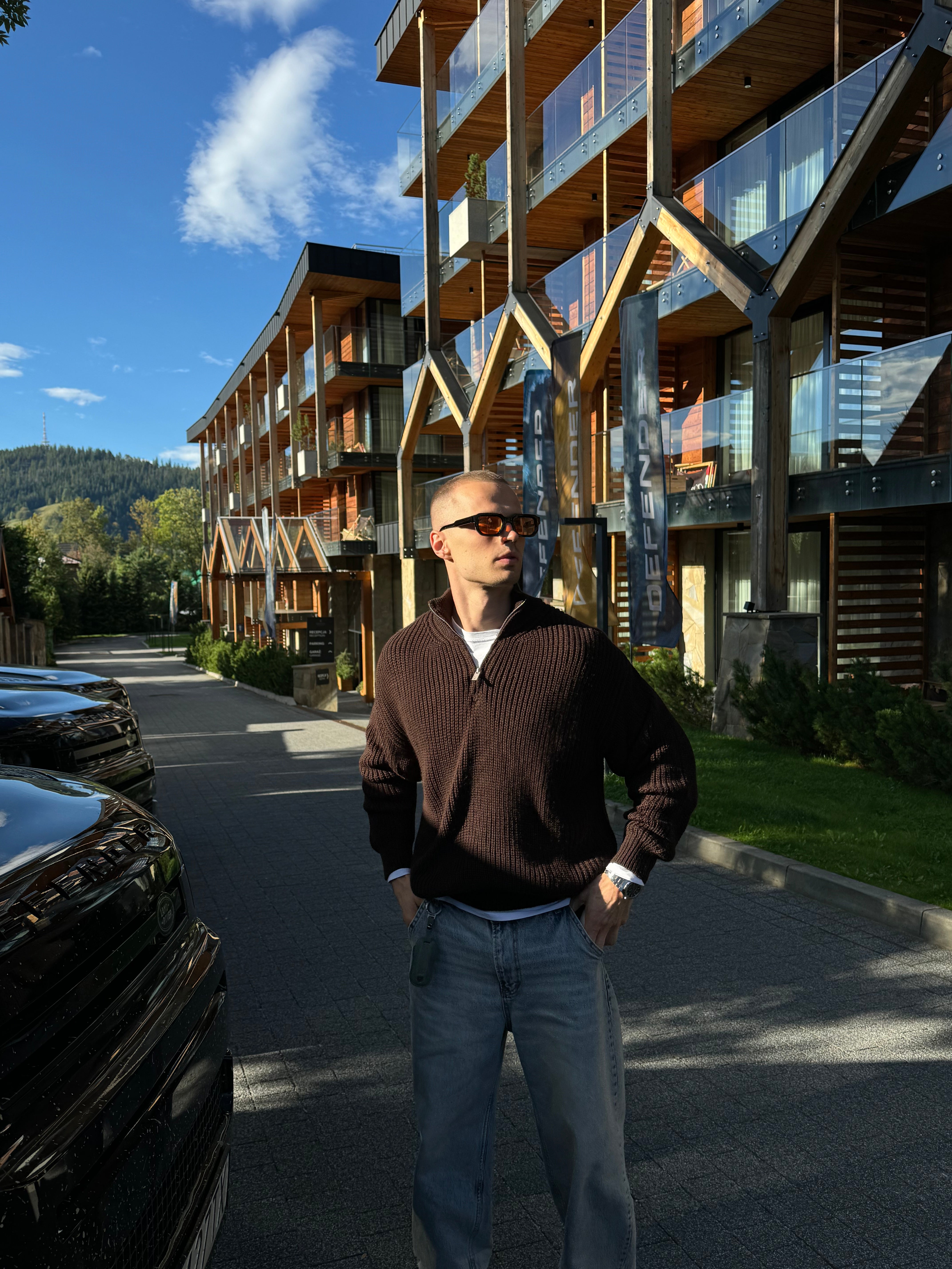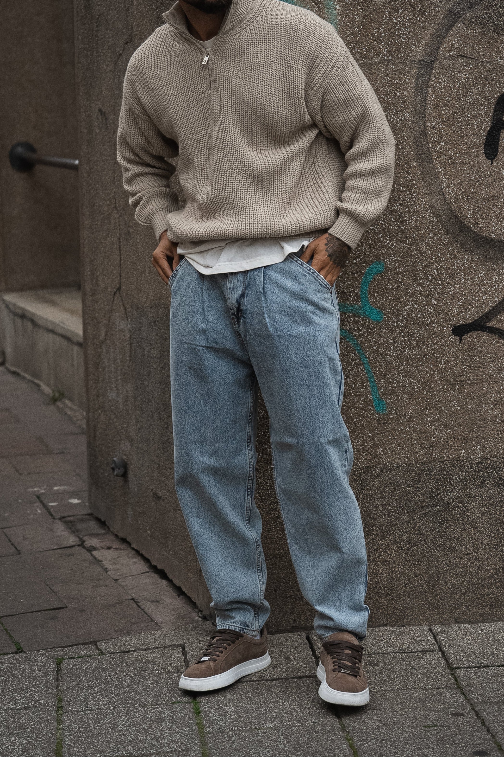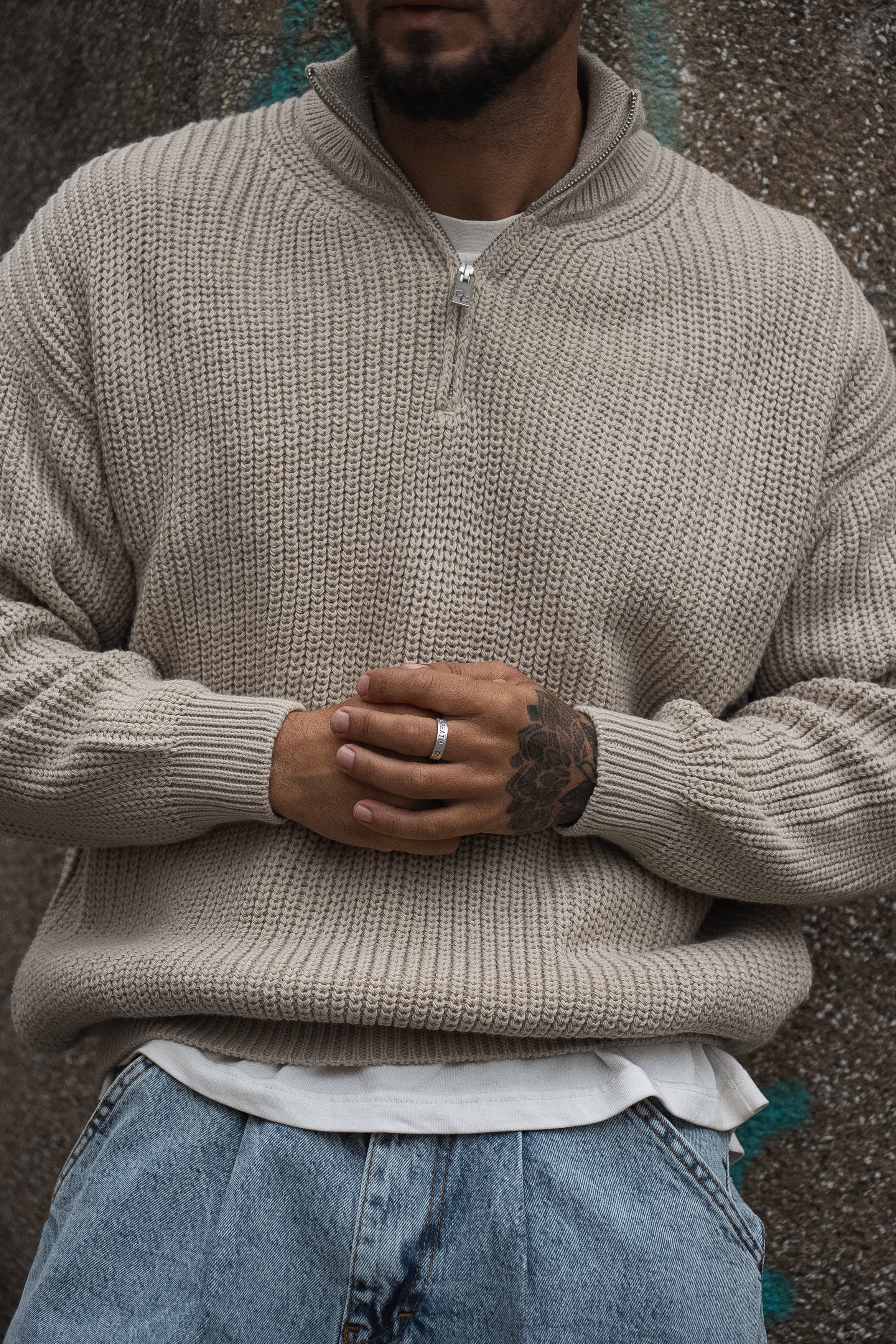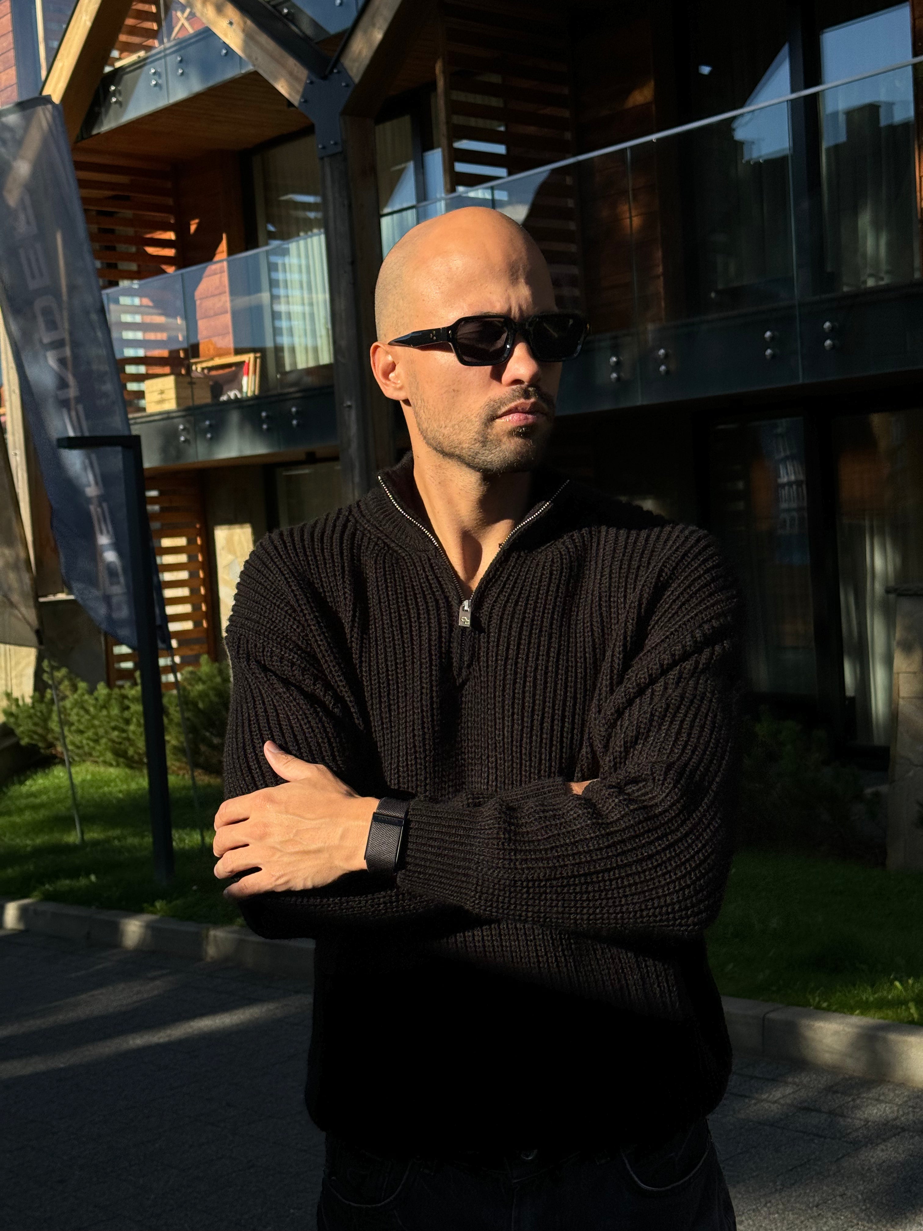 Практичний в'язаний джемпер з високим коміром та блискавкою, що ідеально підкреслює мужність та стиль.