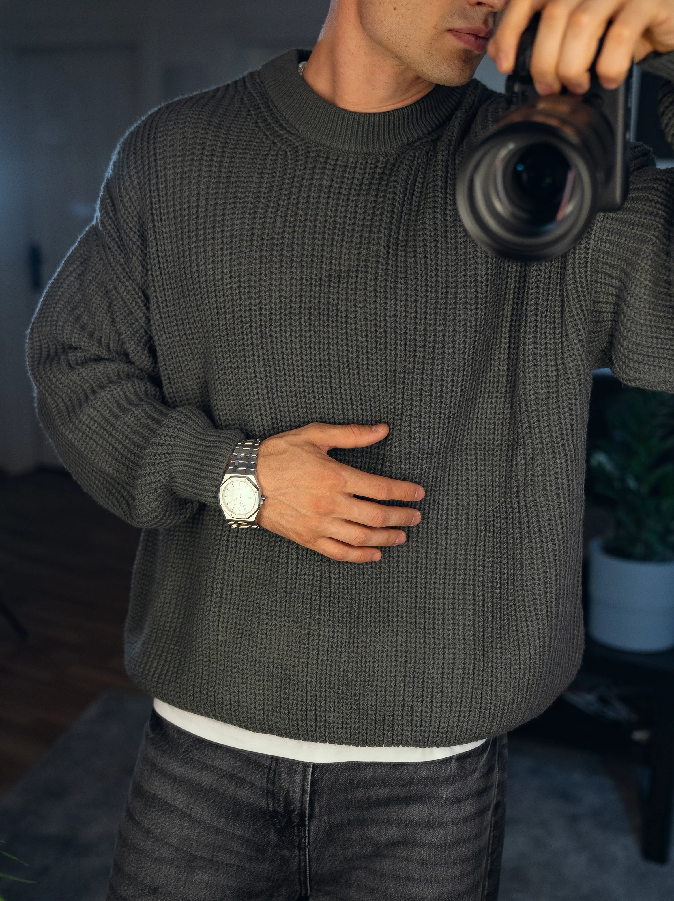 Практичний в'язаний светр, який підкреслює мужність та стиль.