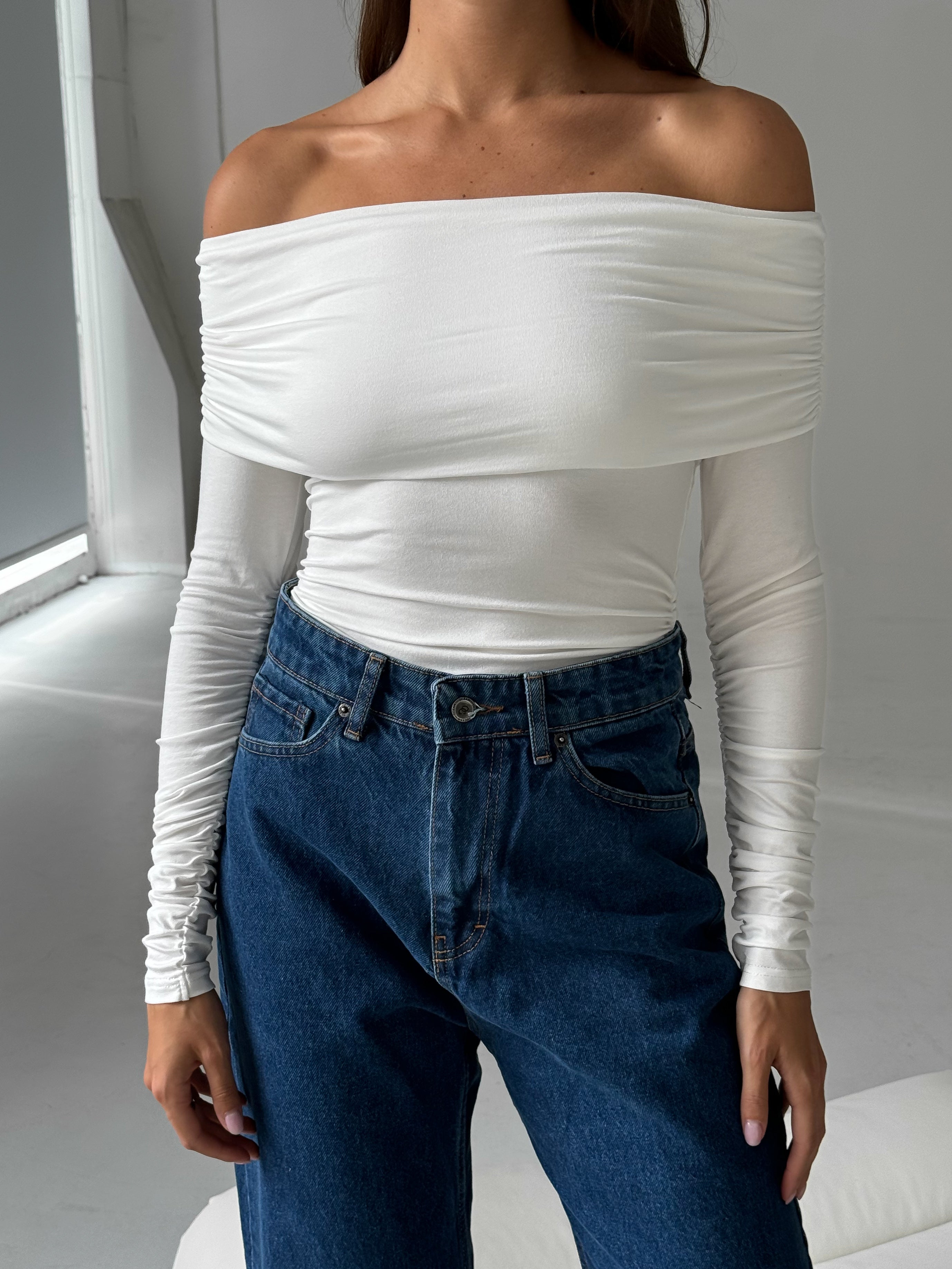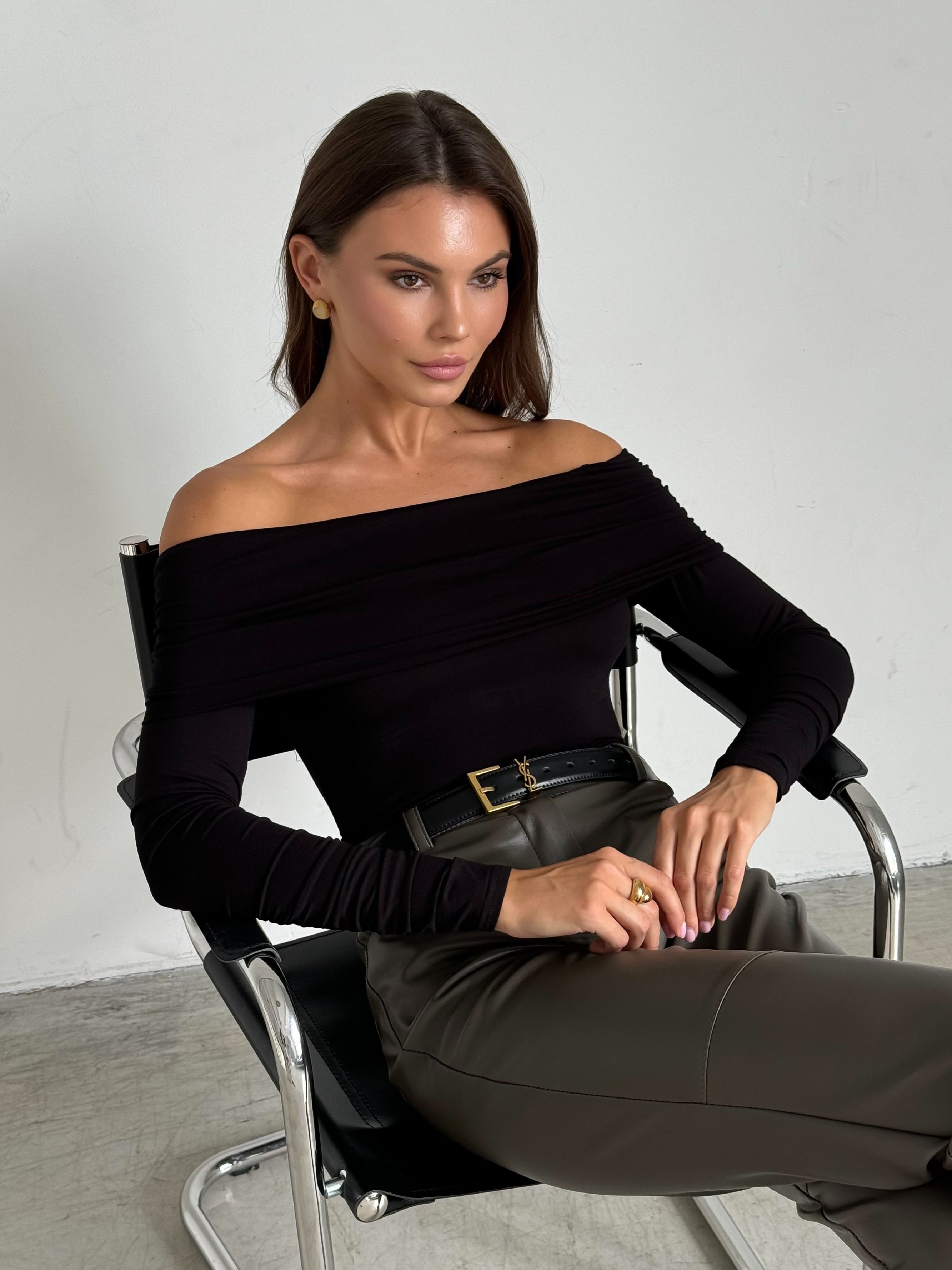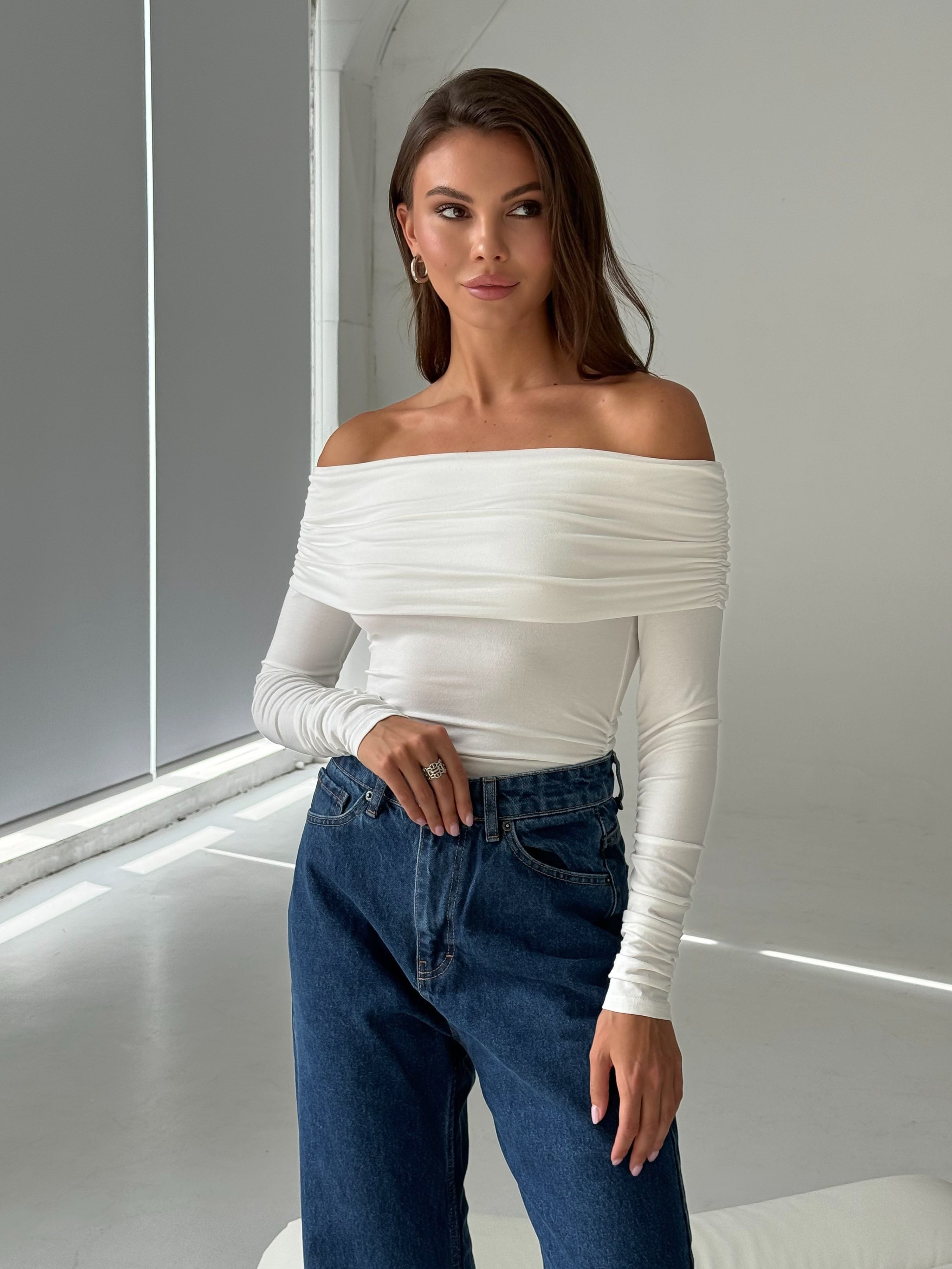 Лонгслів з відкритими плечима — стильний та жіночний виріб, що поєднує в собі комфорт та елегантність.