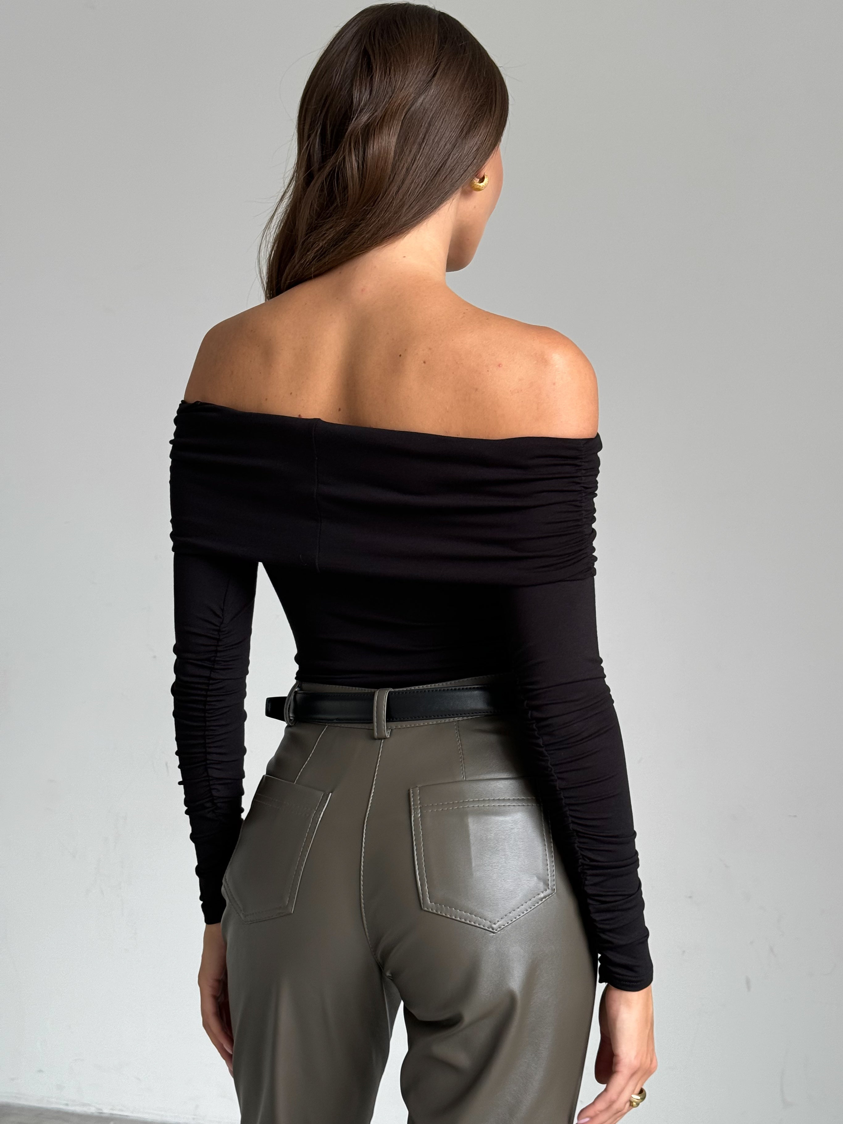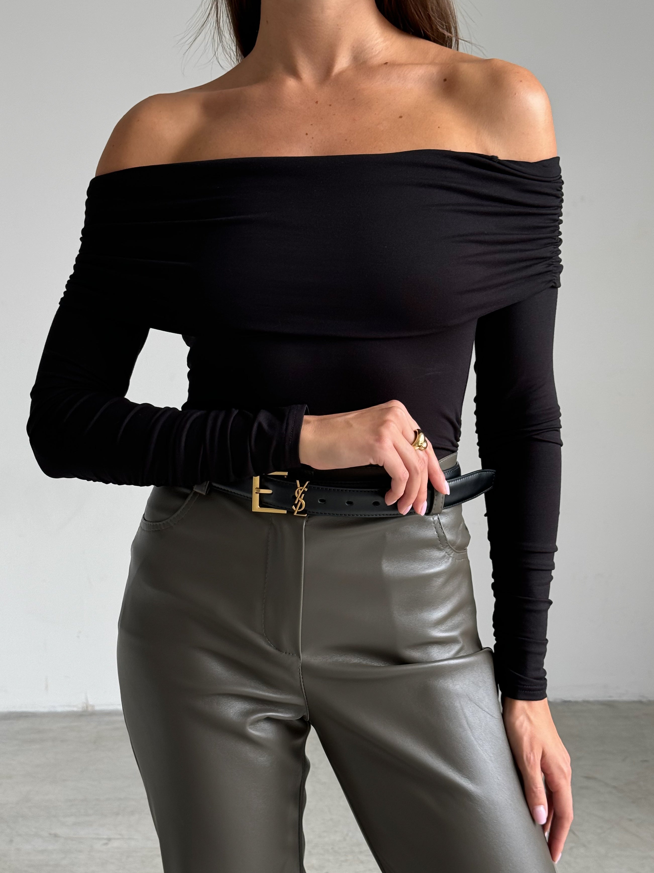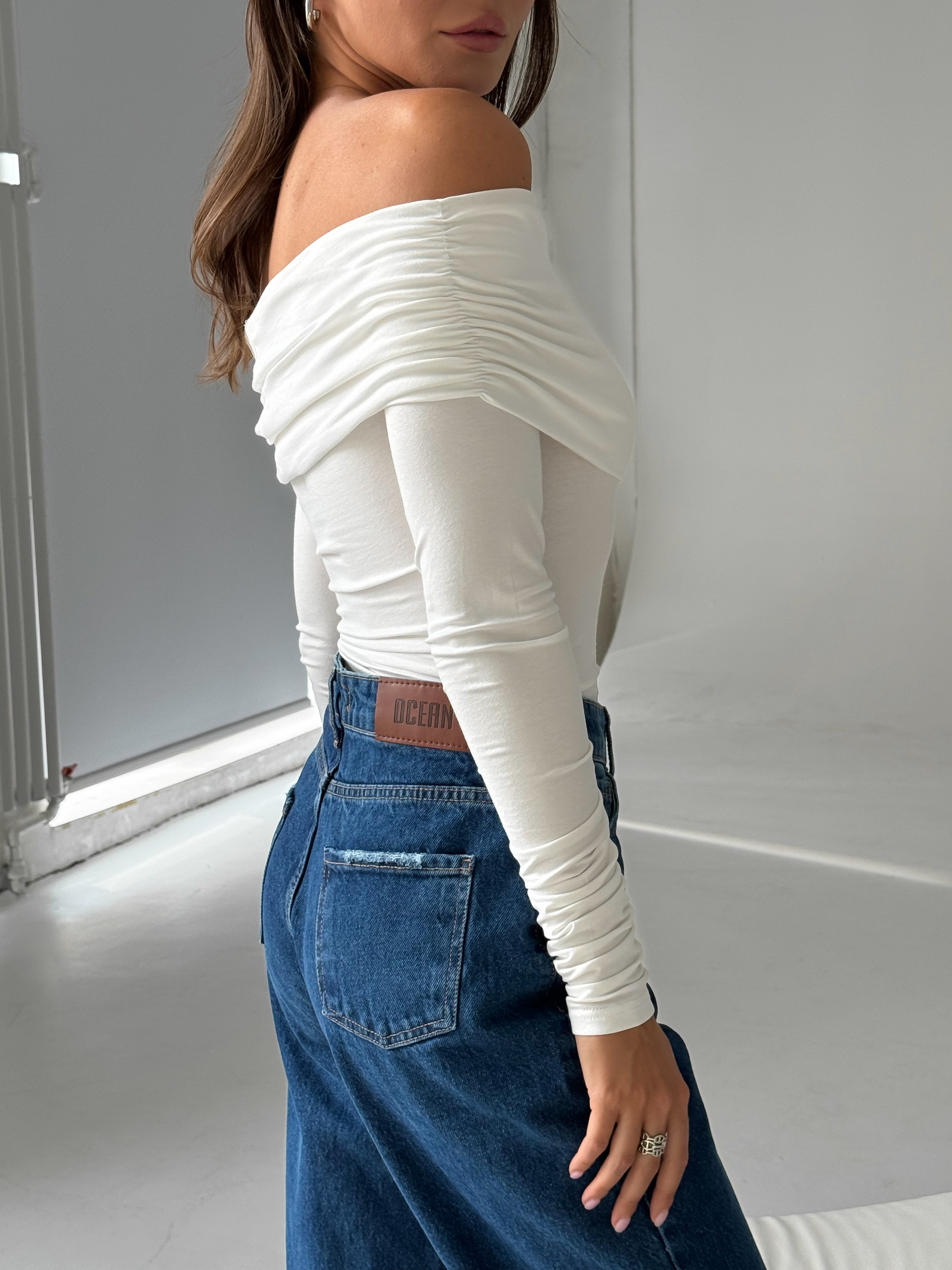 Лонгслів з відкритими плечима — стильний та жіночний виріб, що поєднує в собі комфорт та елегантність.