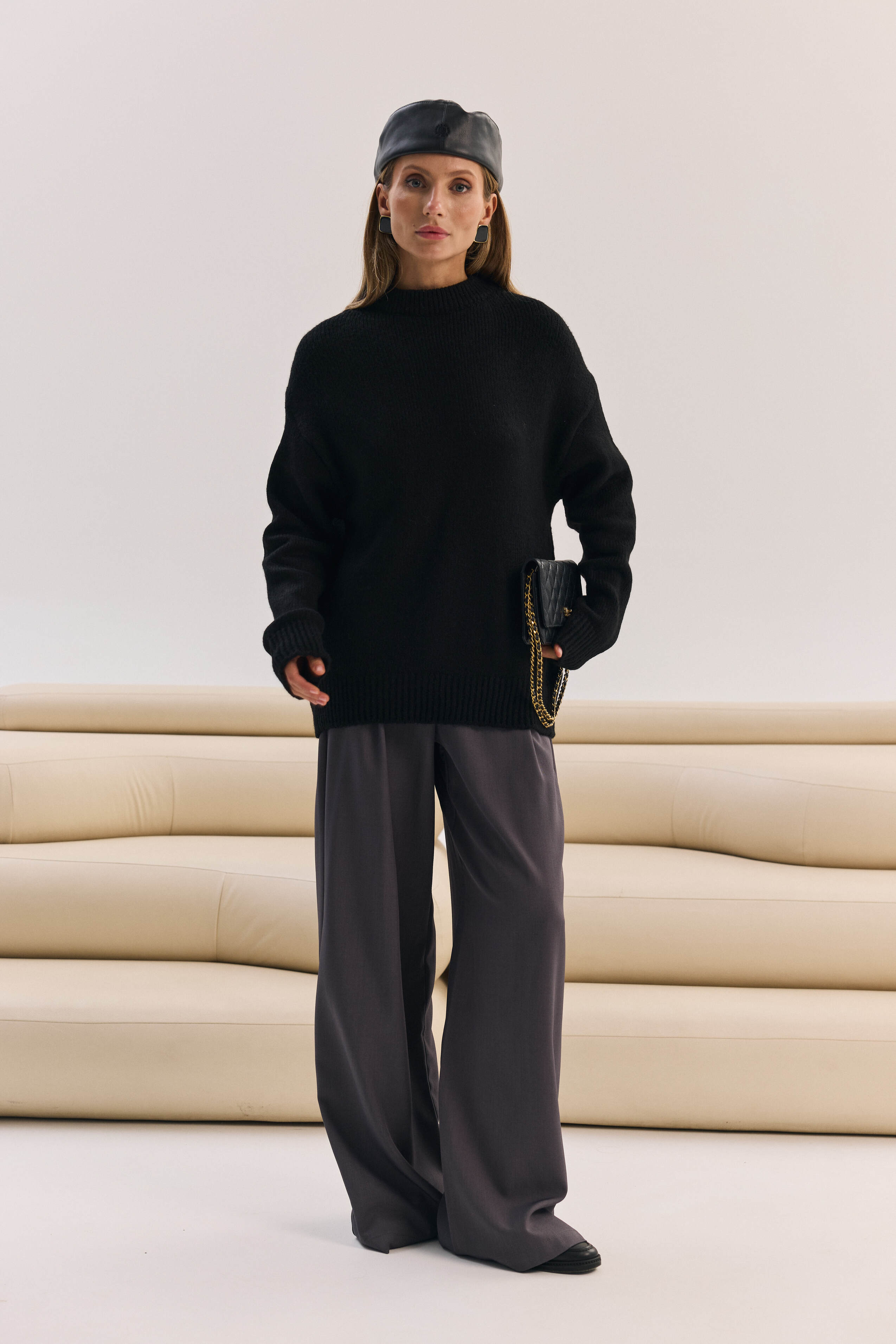 Базовий светр — універсальний та практичний предмет гардеробу. Його нейтральні кольори дозволяють легко поєднувати його з будь-яким одягом чи аксесуарами, а зручний крій робить його ідеальним для роботи та щоденного носіння.