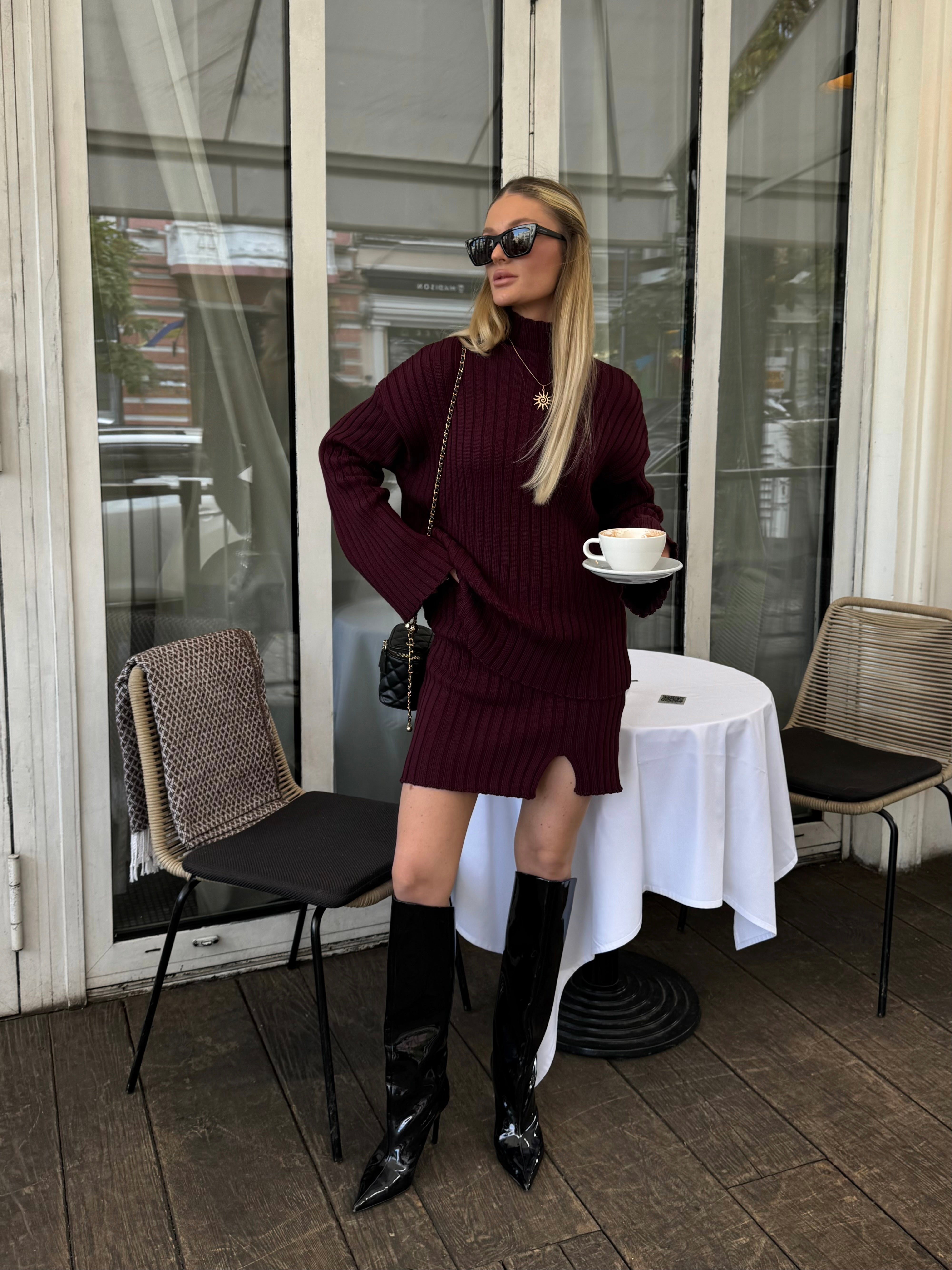 - Поєднання светра та спідниці створює стильний та жіночний образ