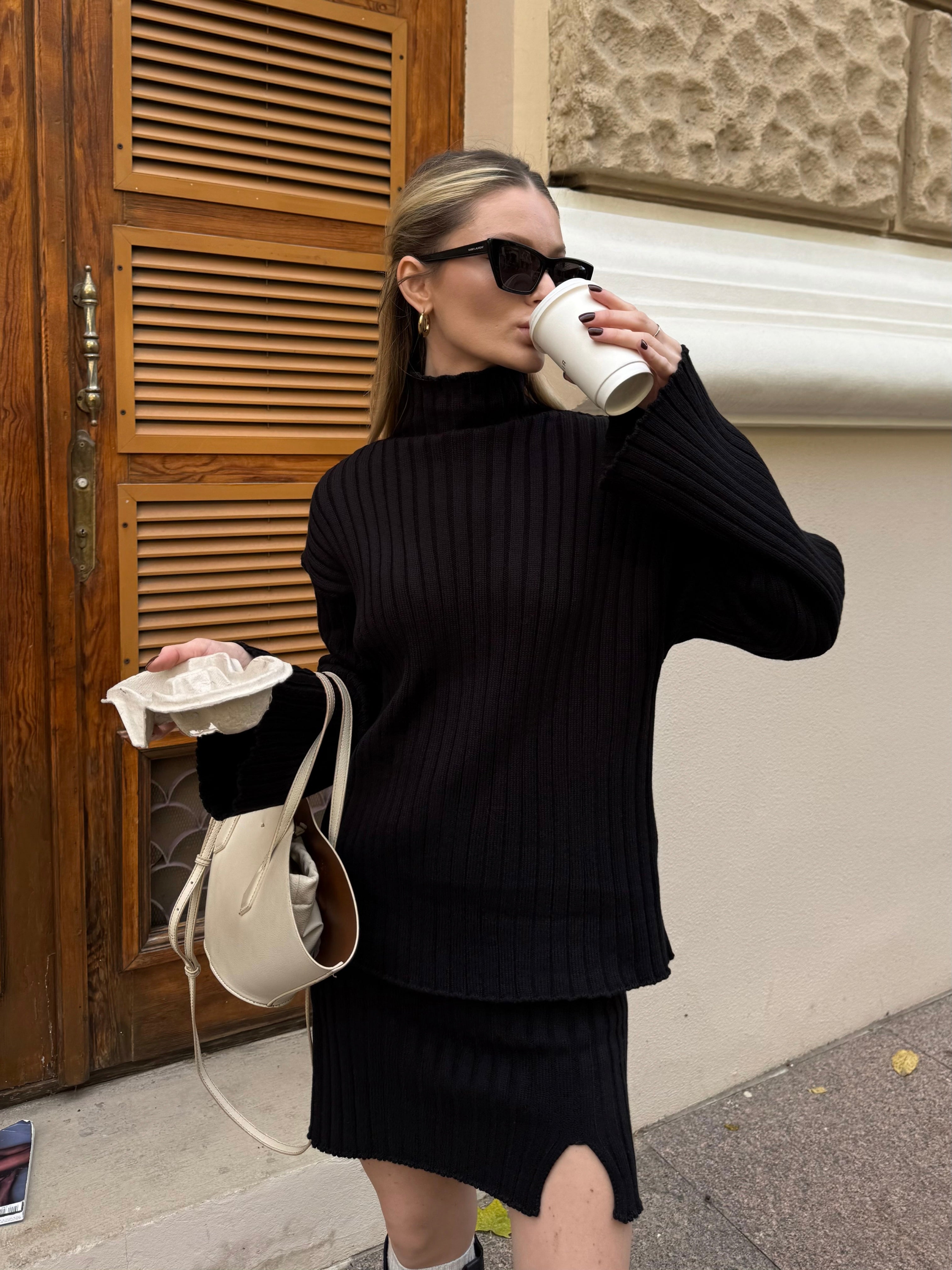 Комплект светра та спідниці з м’якого трикотажу – ідеальний вибір для прохолодної погоди. Поєднання деталей створює модний та жіночний образ, додаючи глибини та текстури стилю.